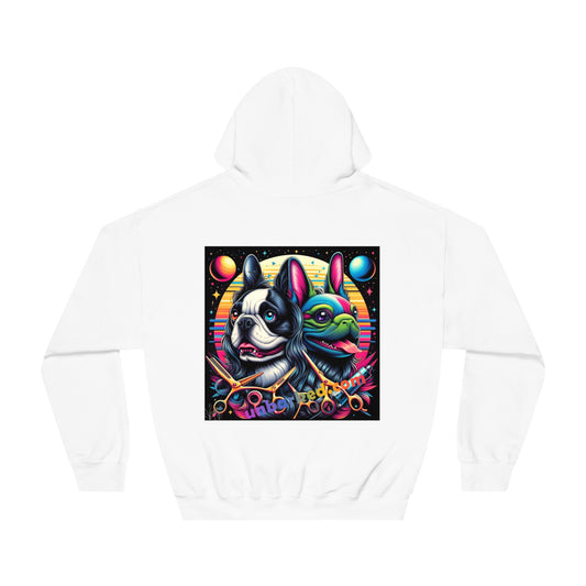 Hooded Sweatshirt UNBARKED! Halloween Collection - Boston Terrier Dog Vibrant Día de Muertos Tattoo Hoodie Unisex Heavy Blend™
