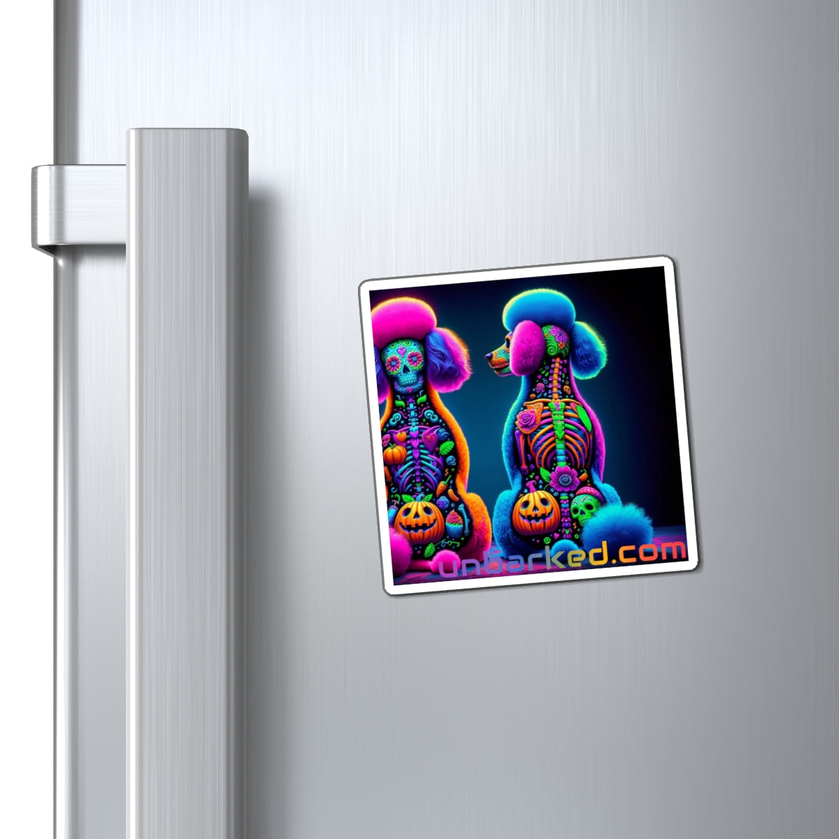 3" Square Magnet - UNBARKED! Halloween Collection - Poodle Dog Vibrant Día de Muertos Tattoo