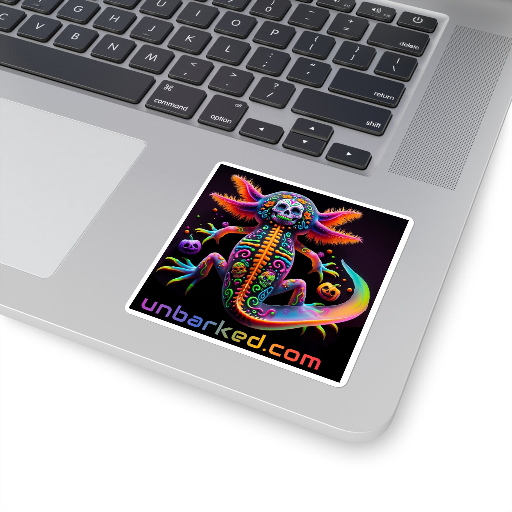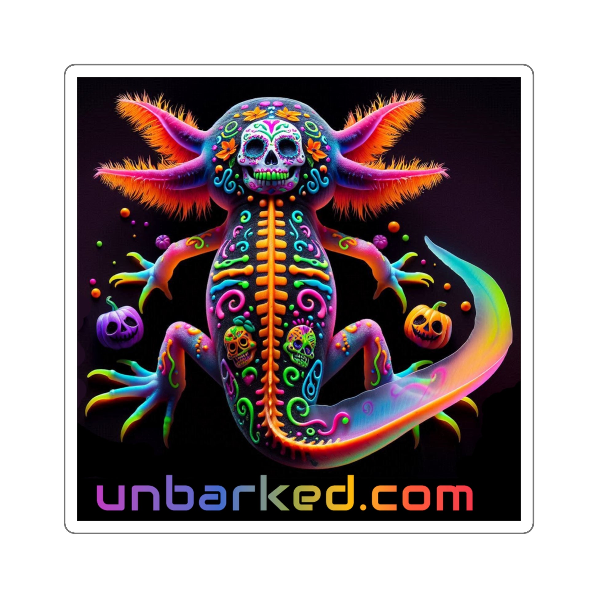 3x3" Square Sticker UNBARKED! Halloween Collection - Axolotl Vibrant Día de Muertos Tattoo
