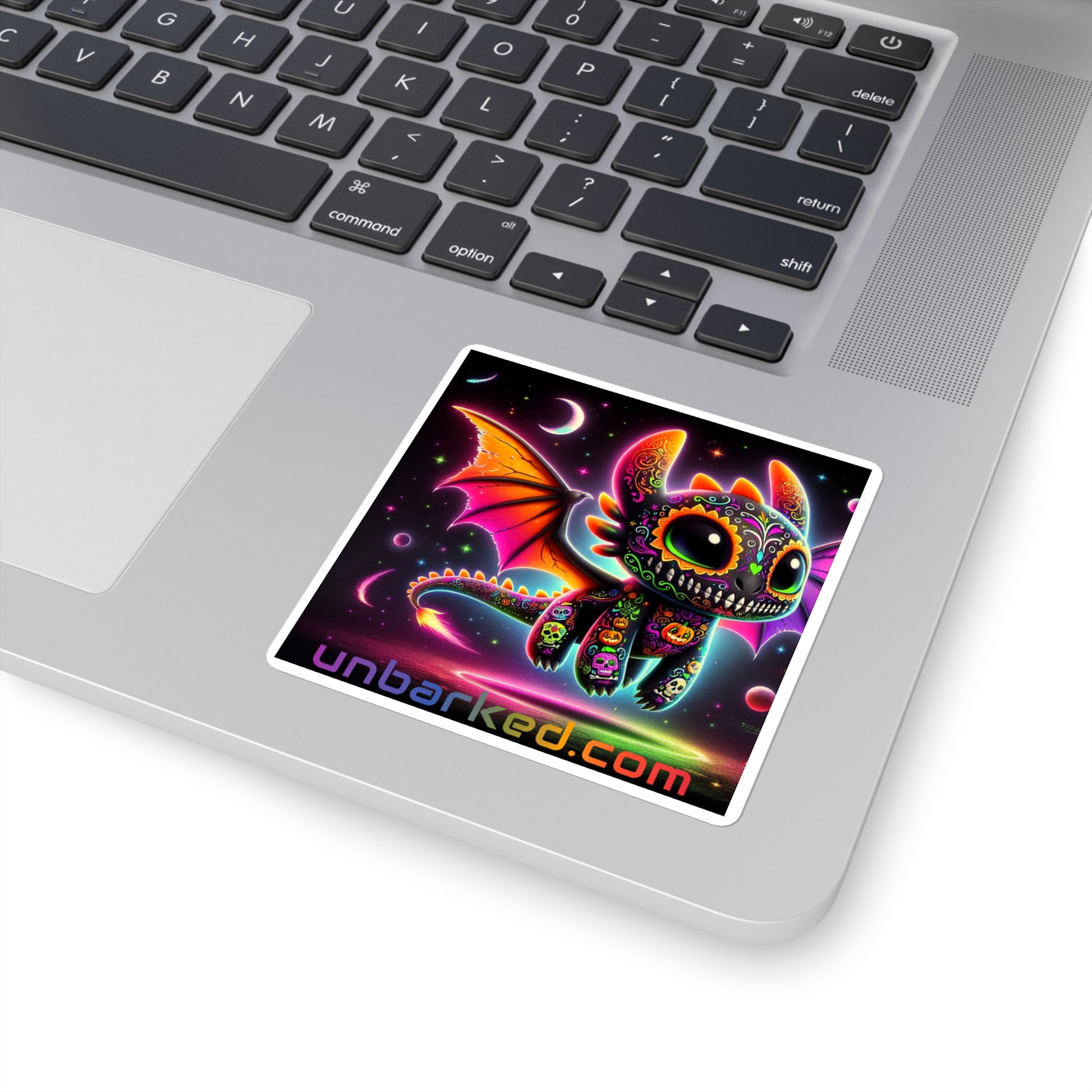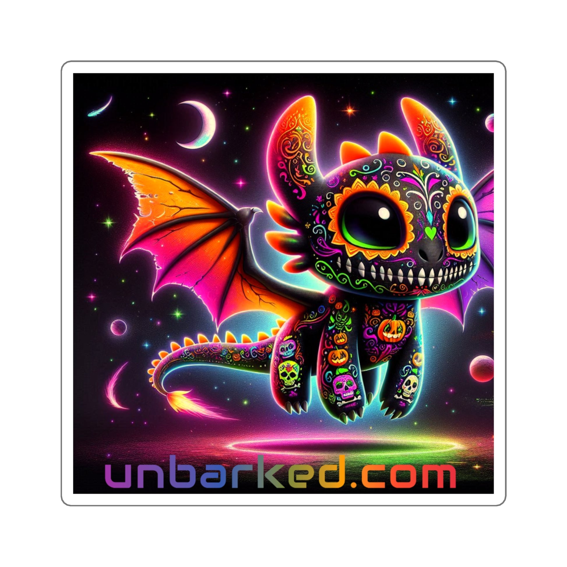 3x3" Square Sticker UNBARKED! Halloween Collection - Dragon Vibrant Día de Muertos Tattoo