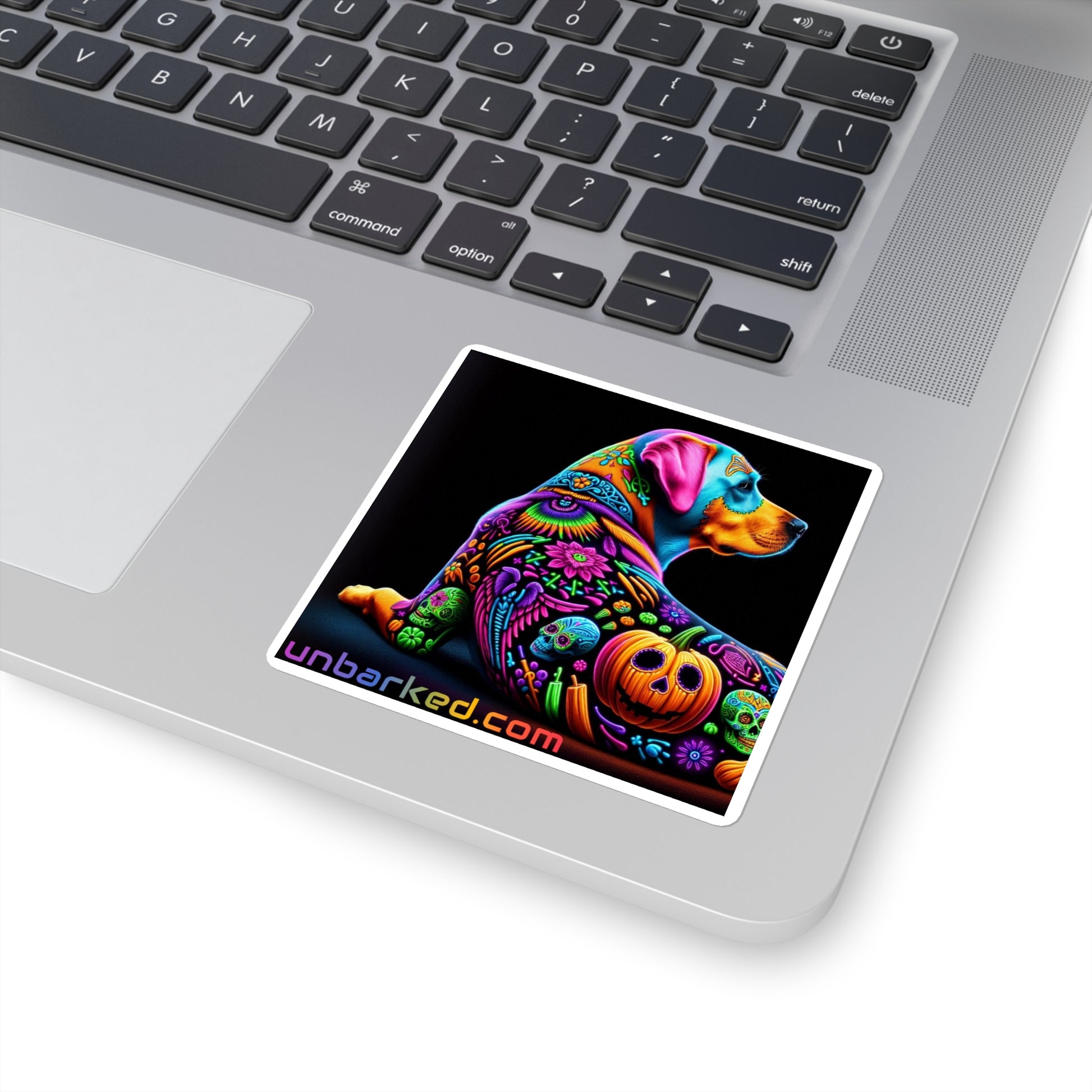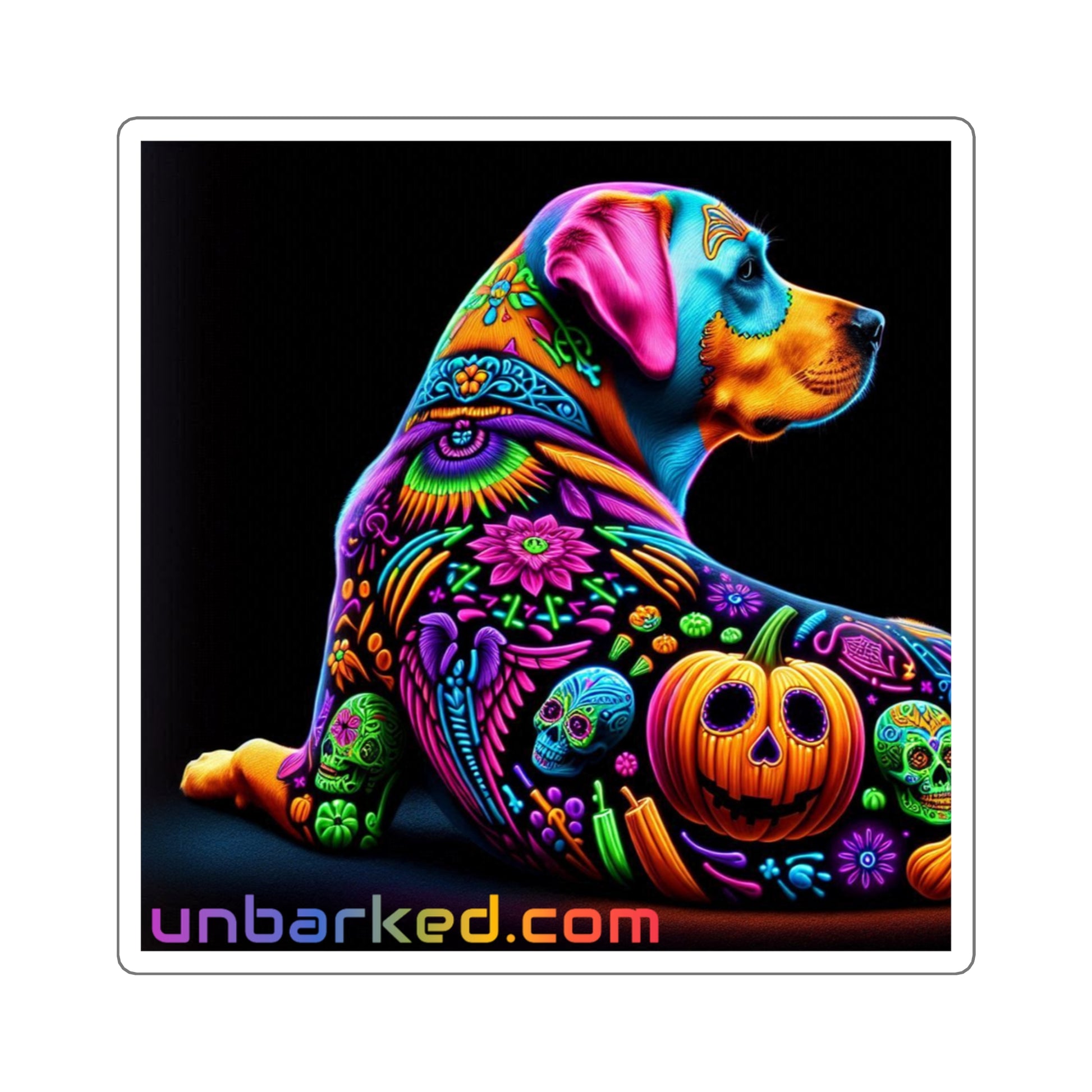 3x3" Square Sticker UNBARKED! Halloween Collection - Labrador Retreiver Vibrant Día de Muertos Tattoo