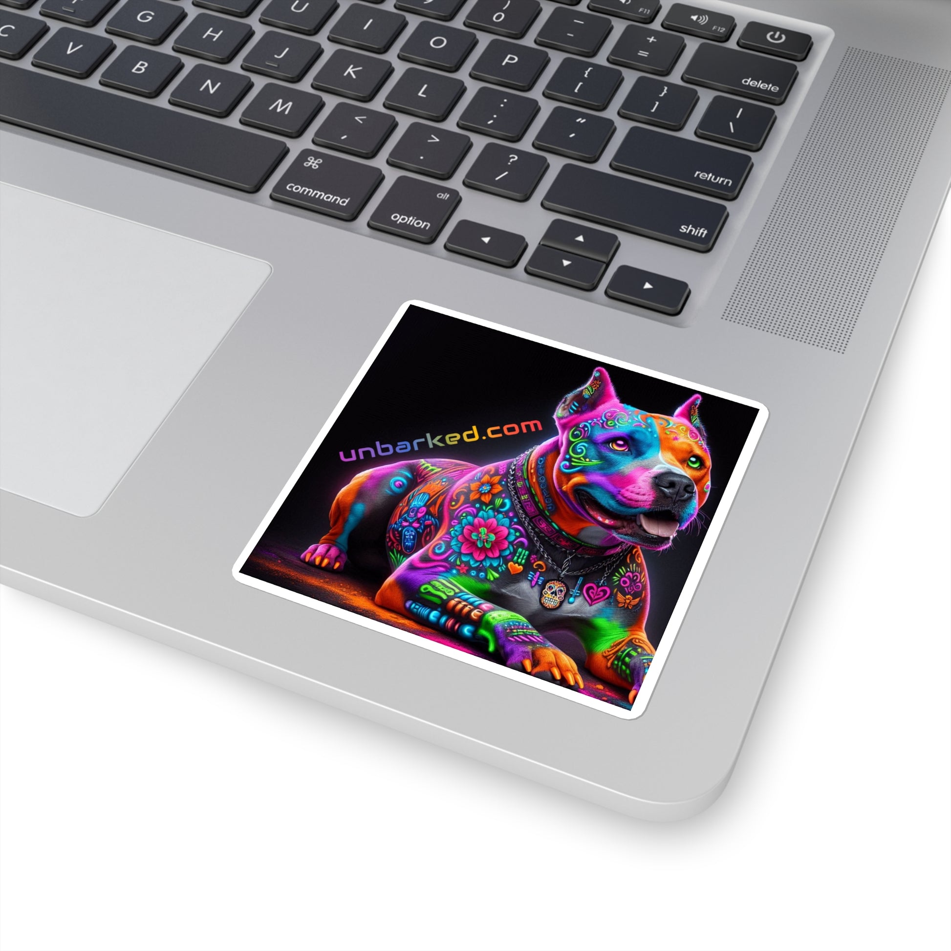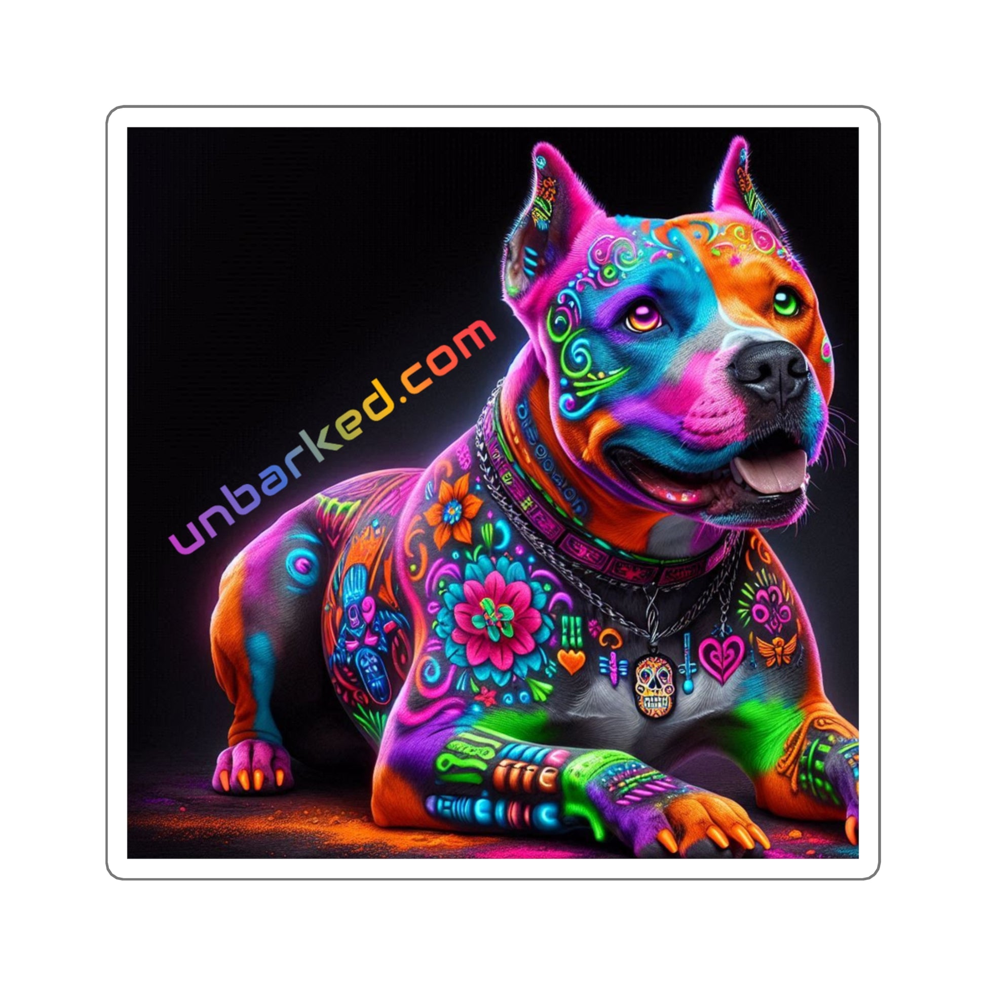 3x3" Square Sticker UNBARKED! Halloween Collection - Pitbull Dog Pittie Vibrant Día de Muertos Tattoo