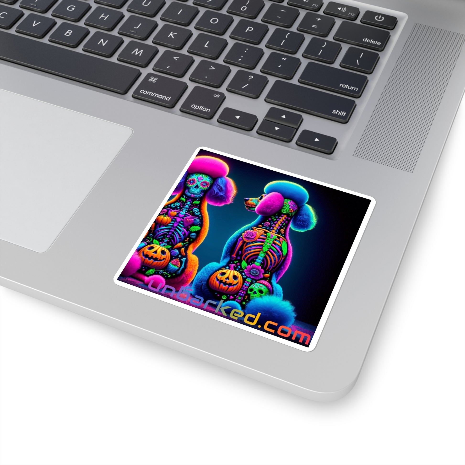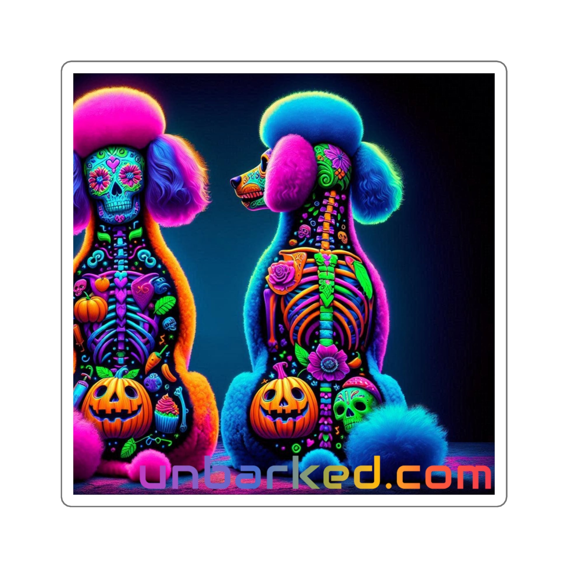 3x3" Square Sticker UNBARKED! Halloween Collection - Poodle Dog Vibrant Día de Muertos Tattoo