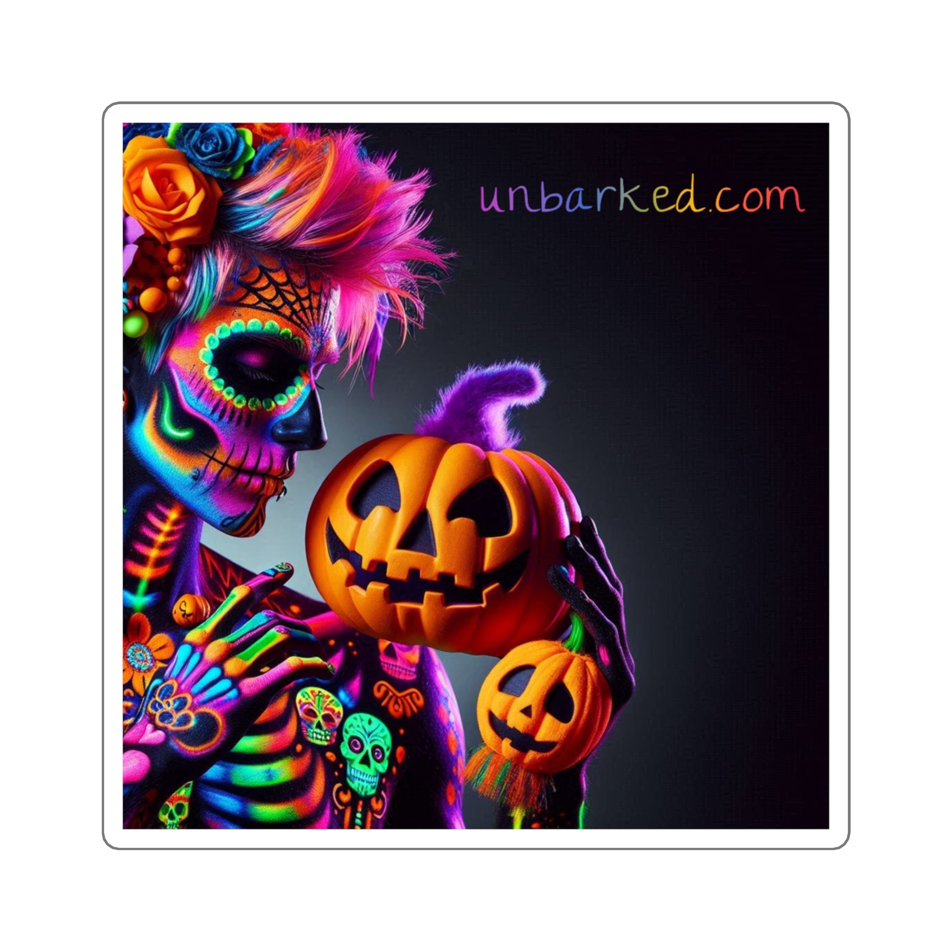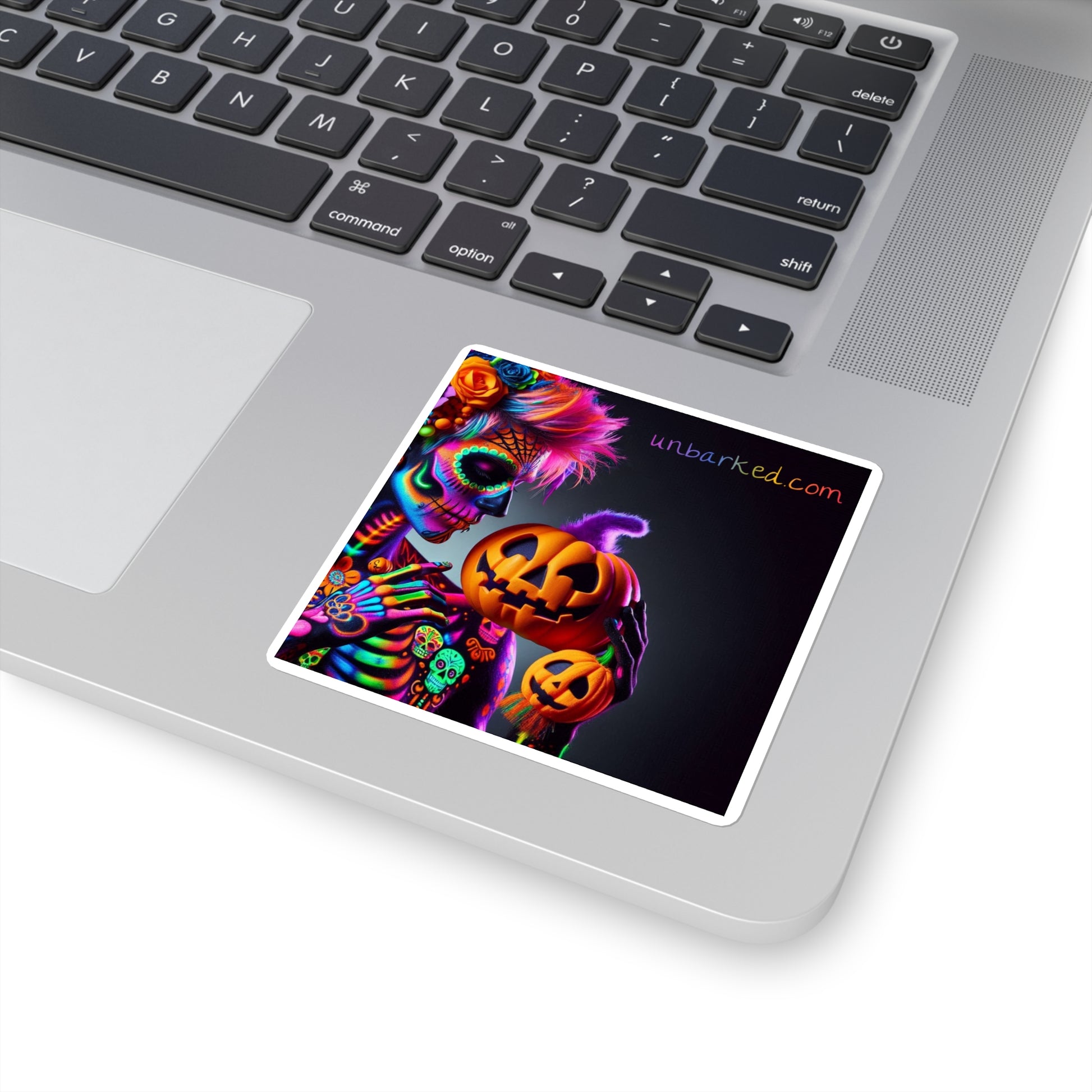 3x3" Square Sticker UNBARKED! Halloween Collection - Sexy II Vibrant Día de Muertos Tattoo