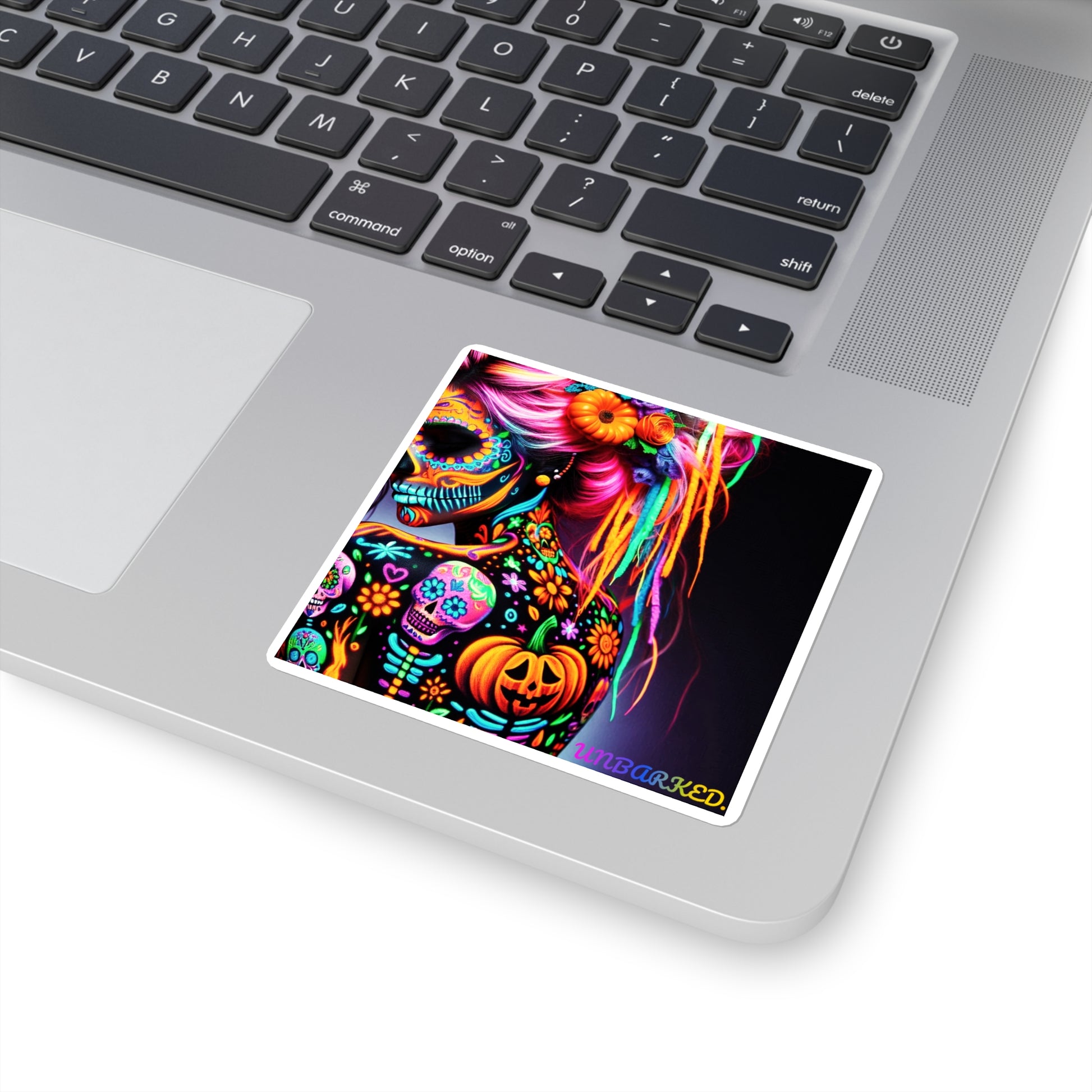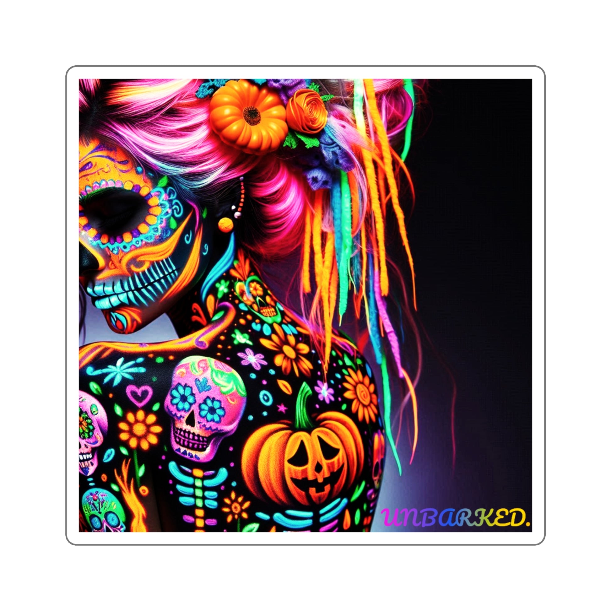 3x3" Square Sticker UNBARKED! Halloween Collection - Sexy Vibrant Día de Muertos Tattoo