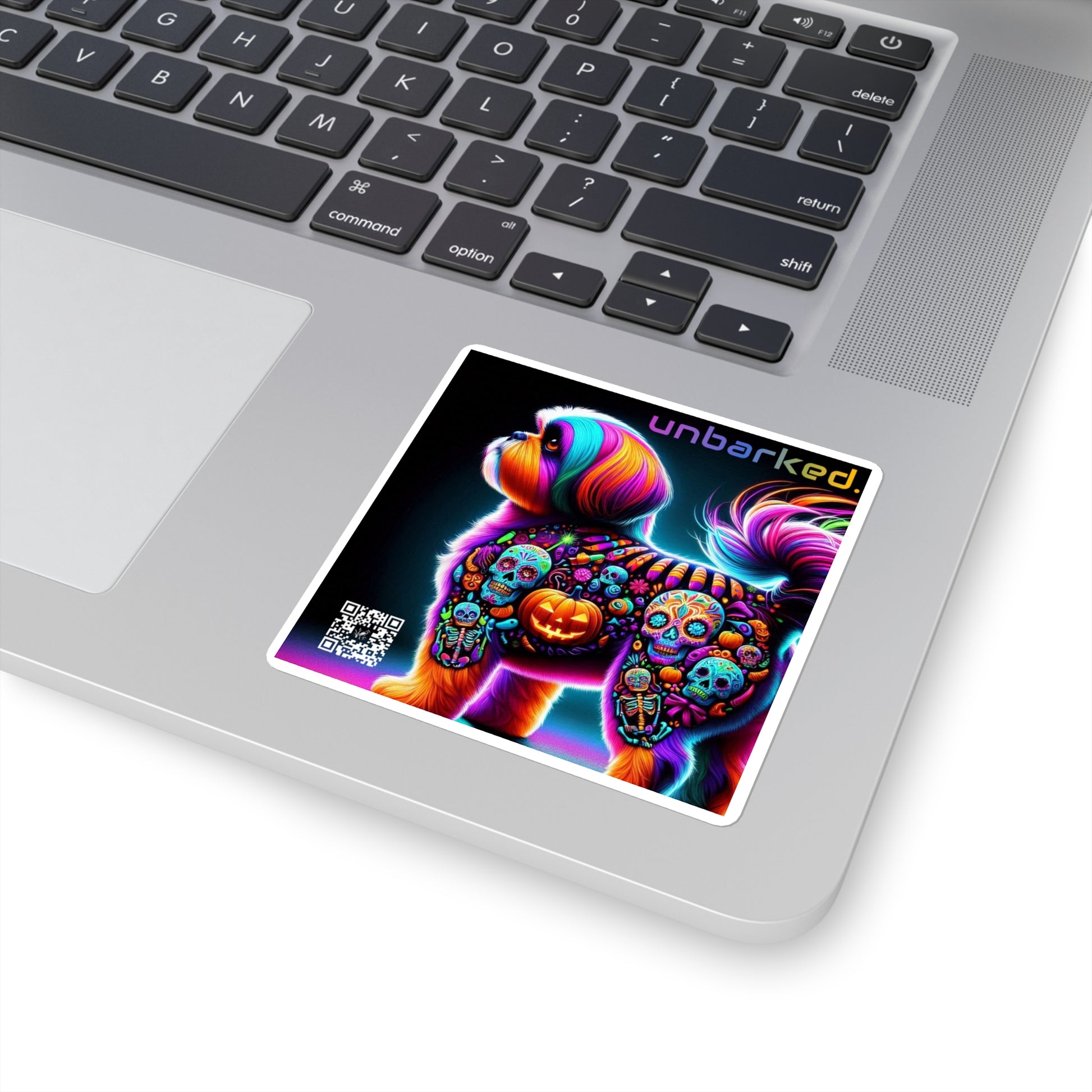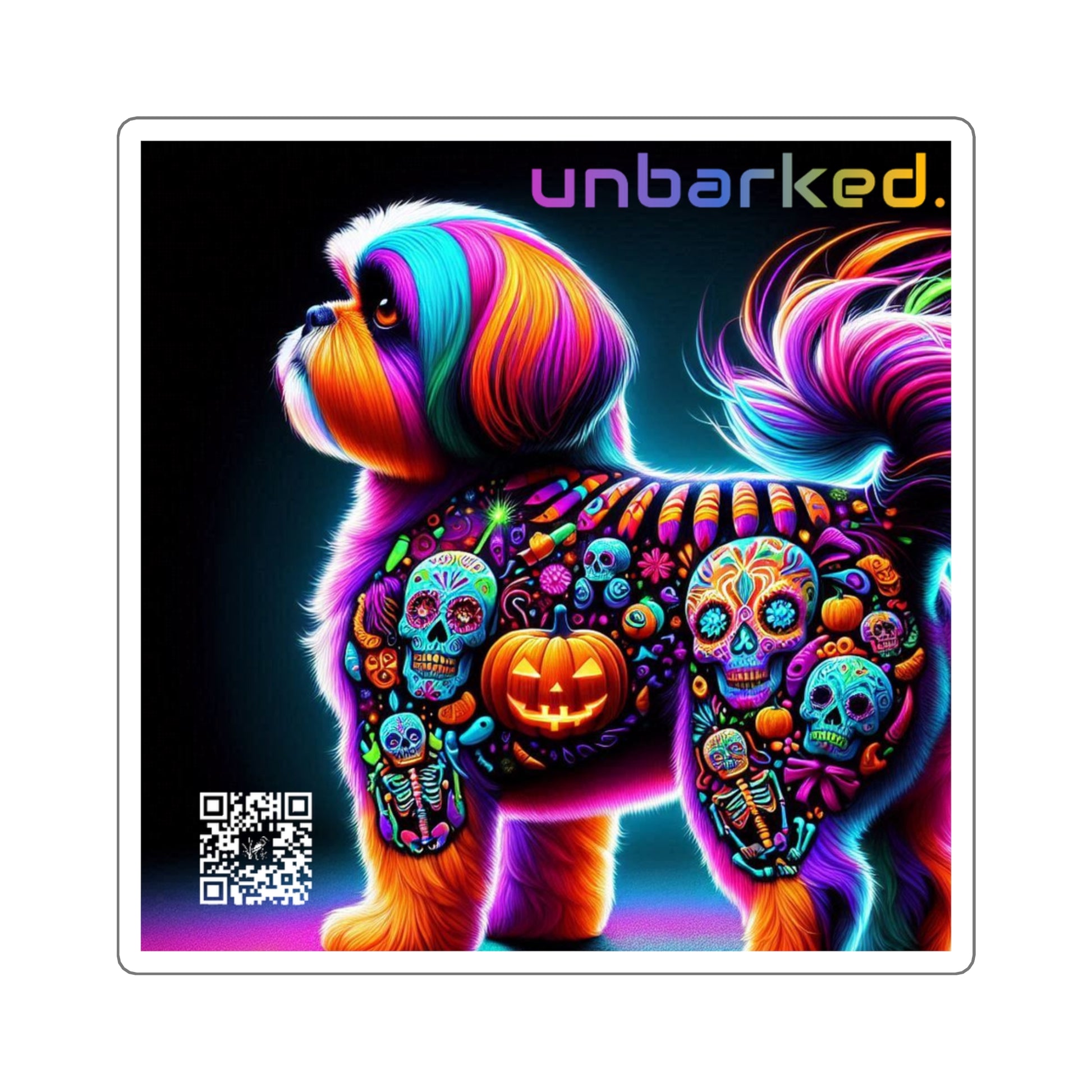 3x3" Square Sticker UNBARKED! Halloween Collection - Shihtzu Dog Vibrant Día de Muertos Tattoo