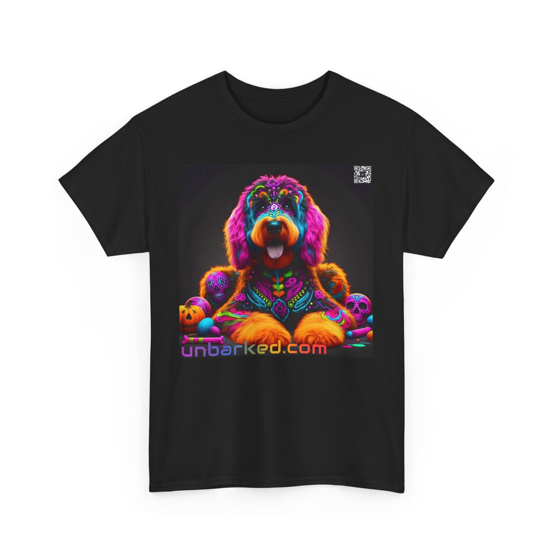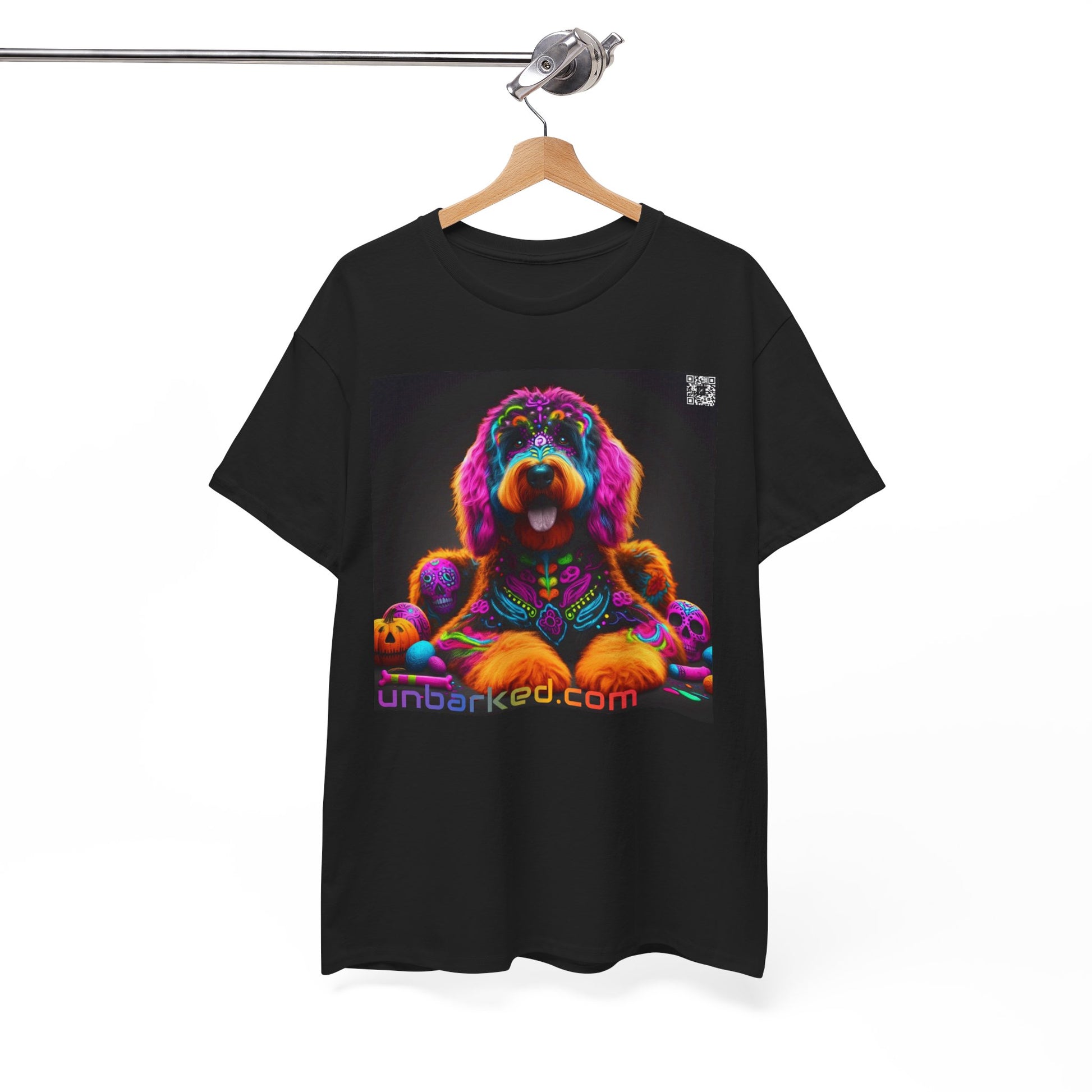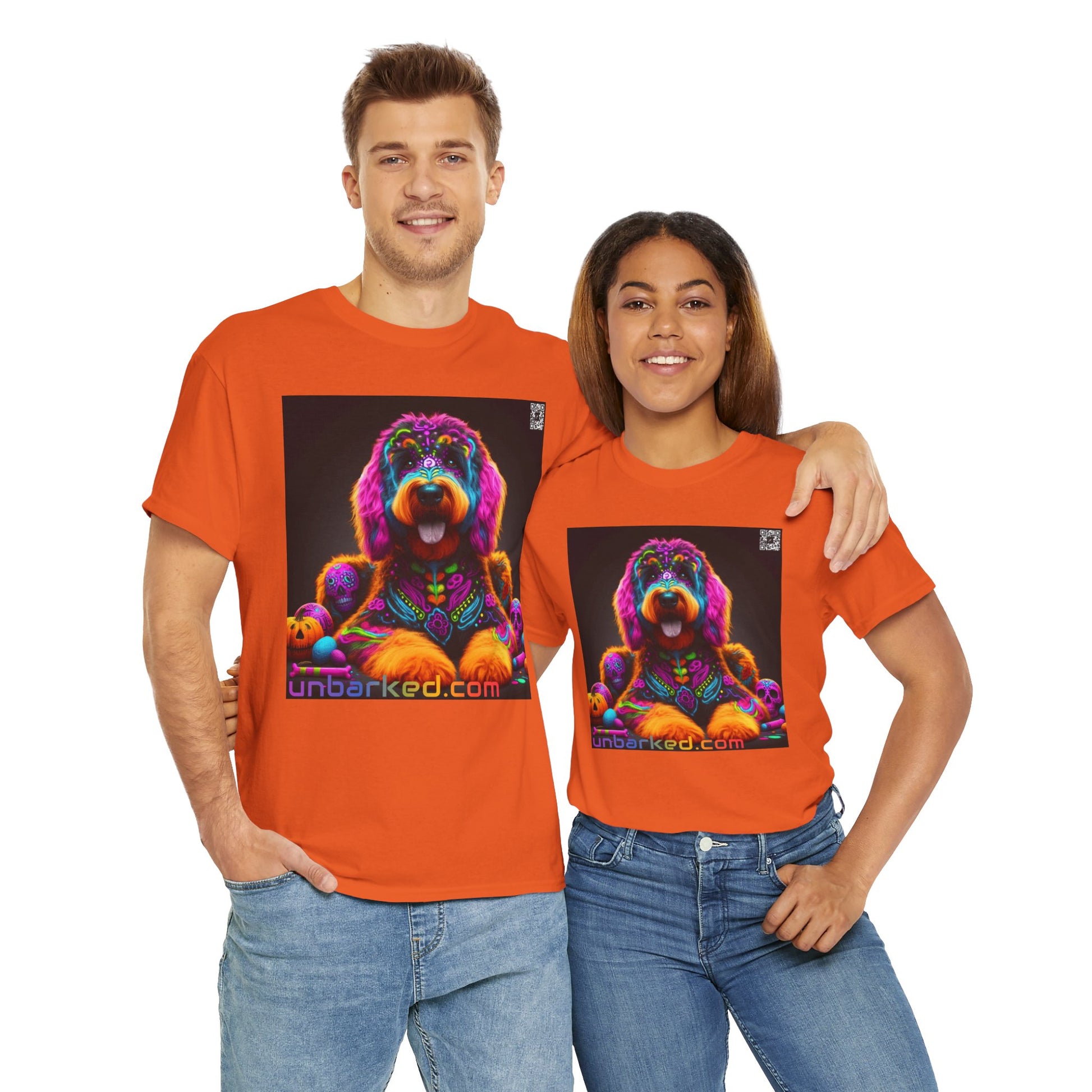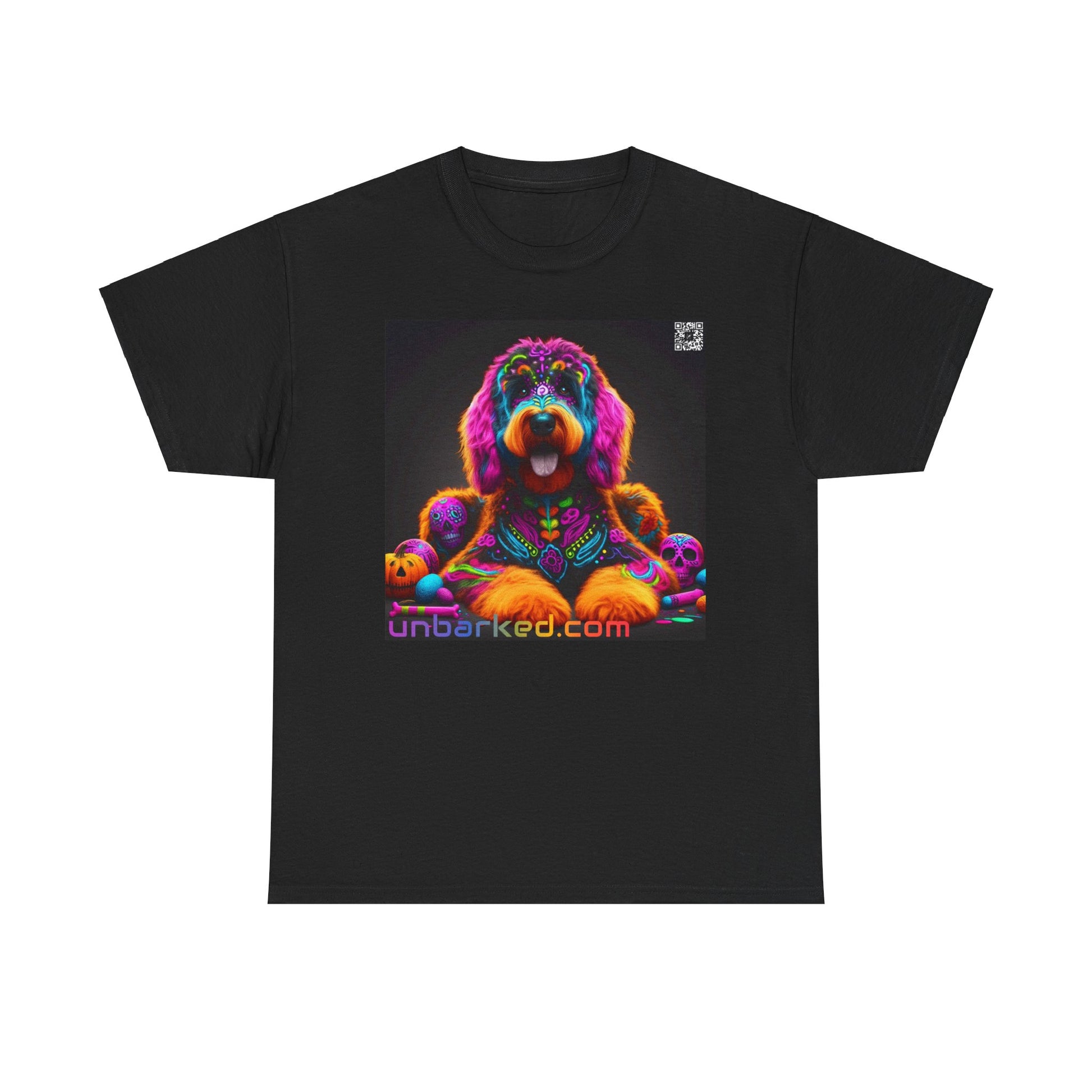UNBARKED! Halloween Collection - Bernadoodle Dog Vibrant Día de Muertos Tattoo Unisex Heavy Cotton Tee