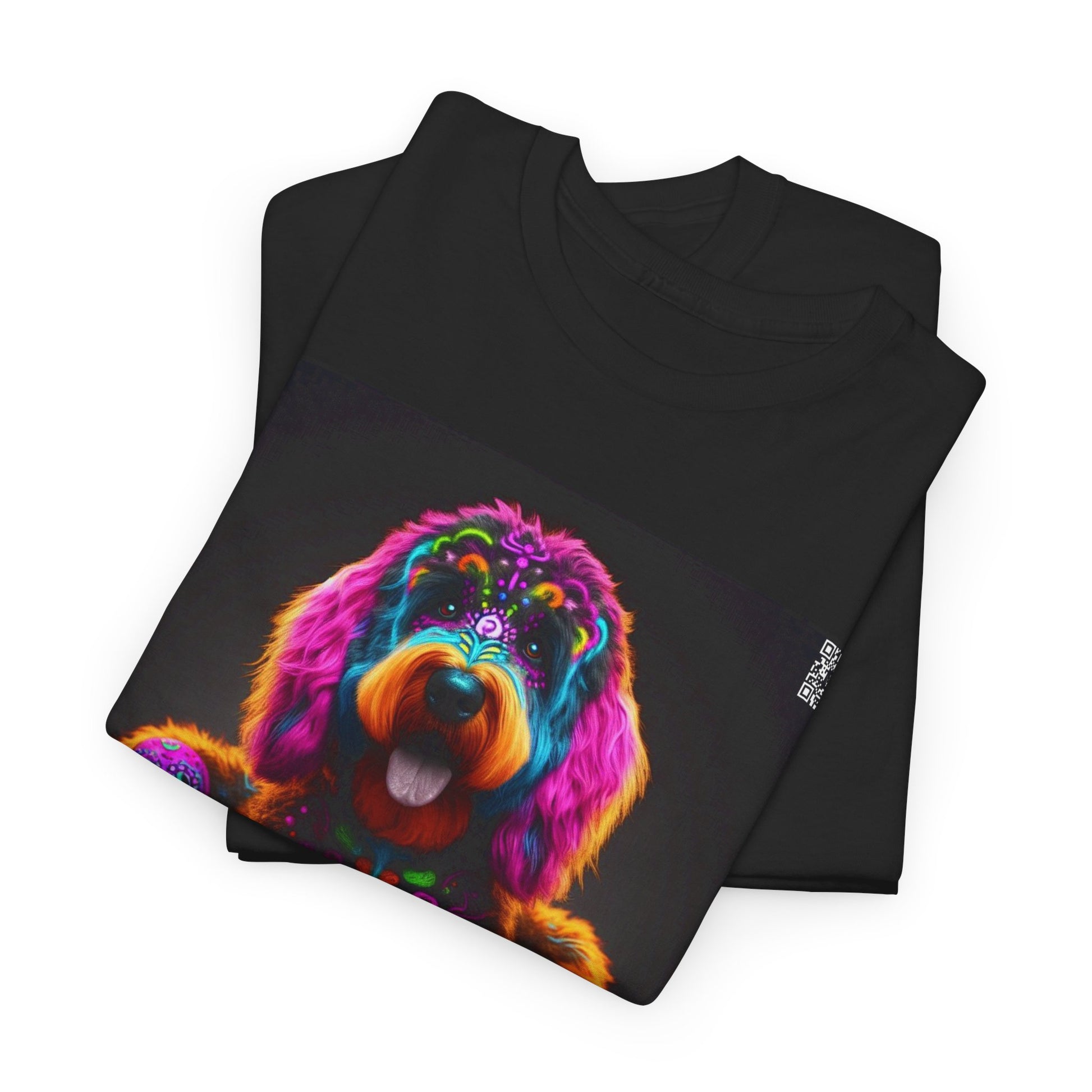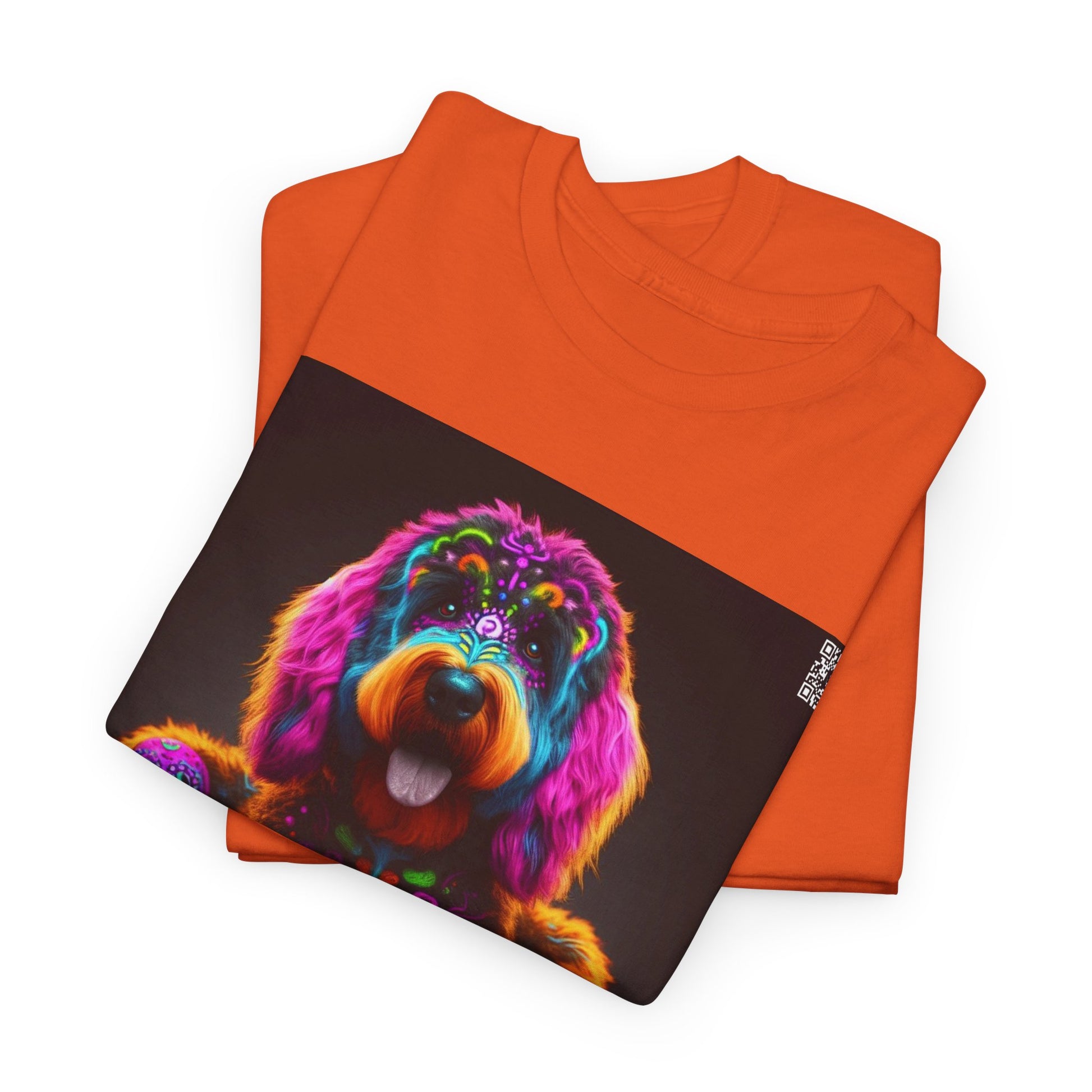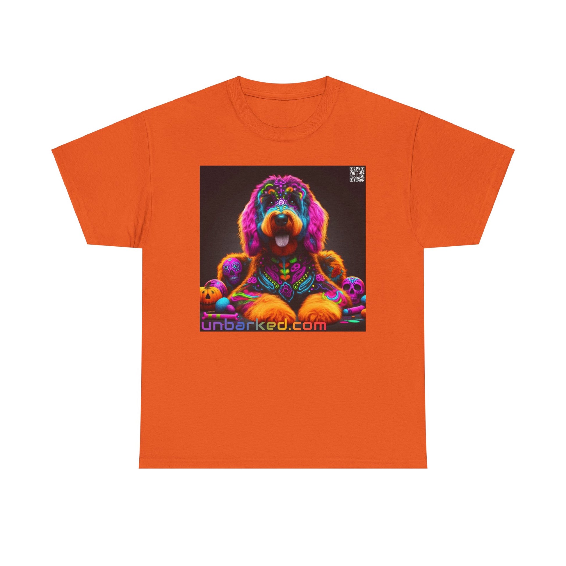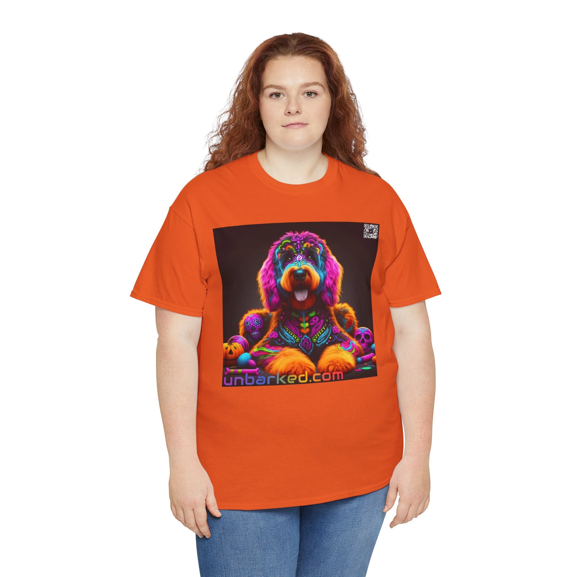 UNBARKED! Halloween Collection - Bernadoodle Dog Vibrant Día de Muertos Tattoo Unisex Heavy Cotton Tee