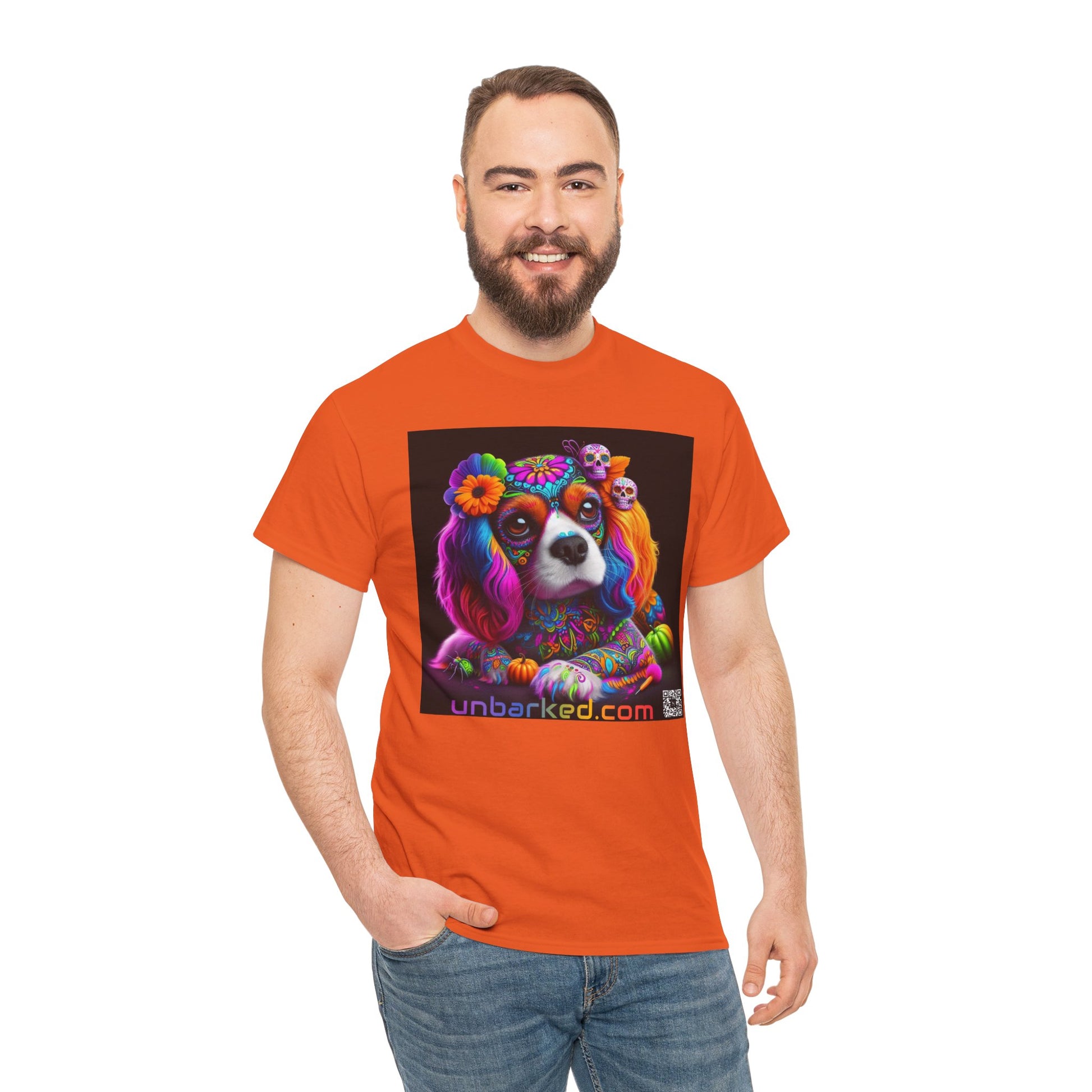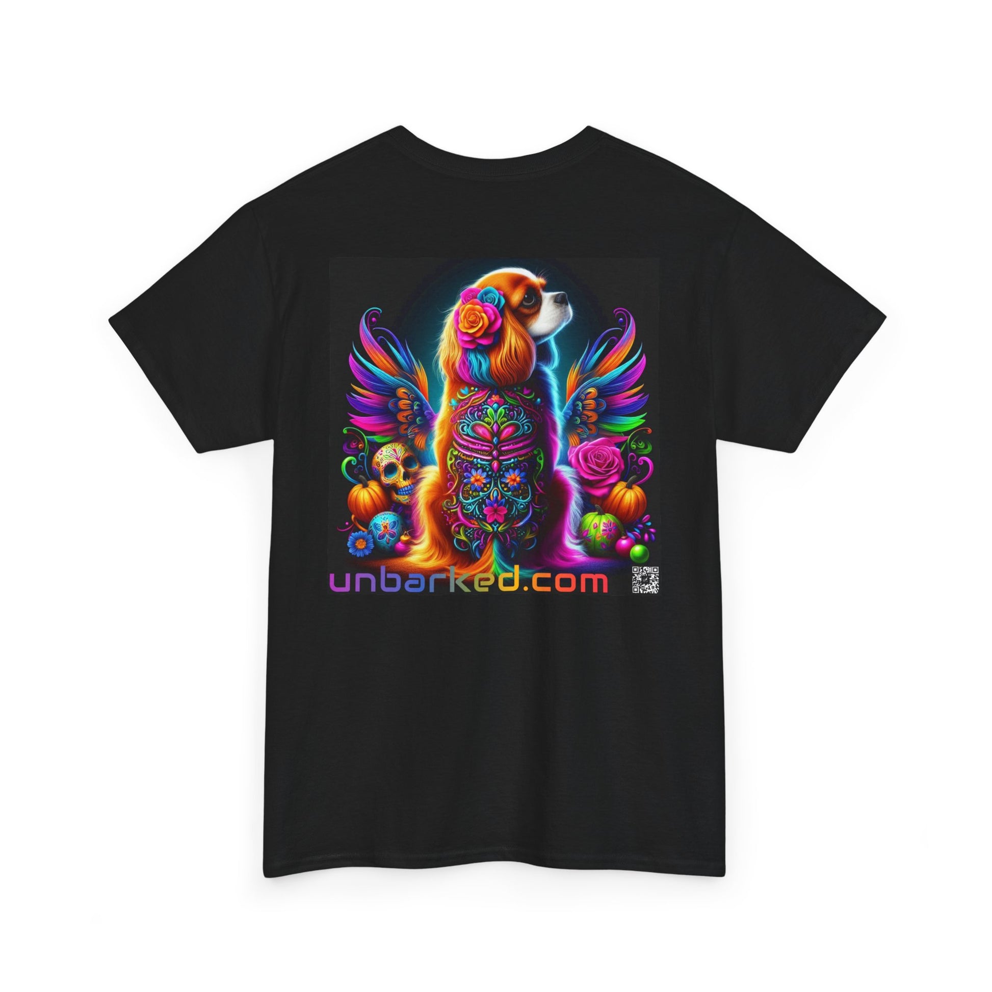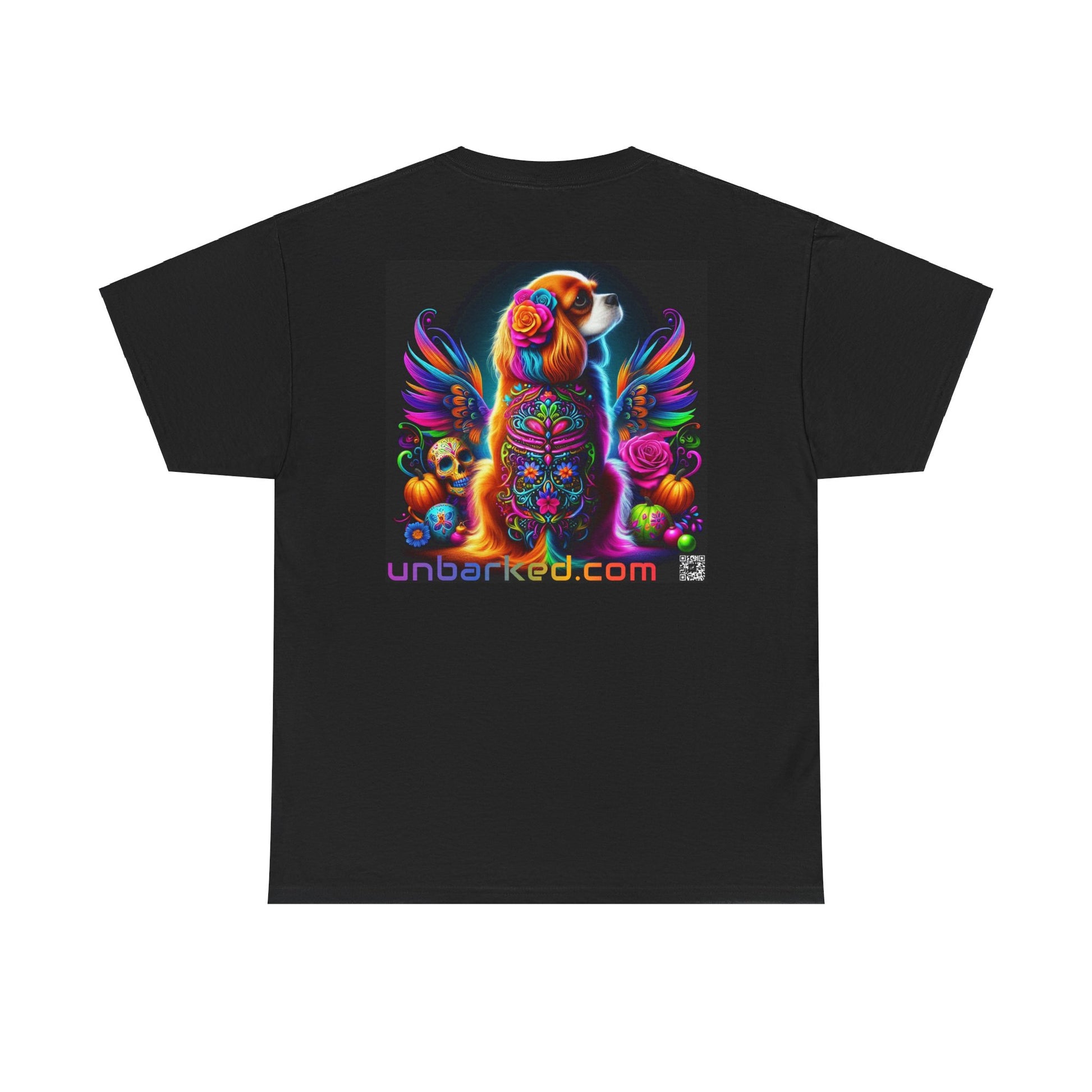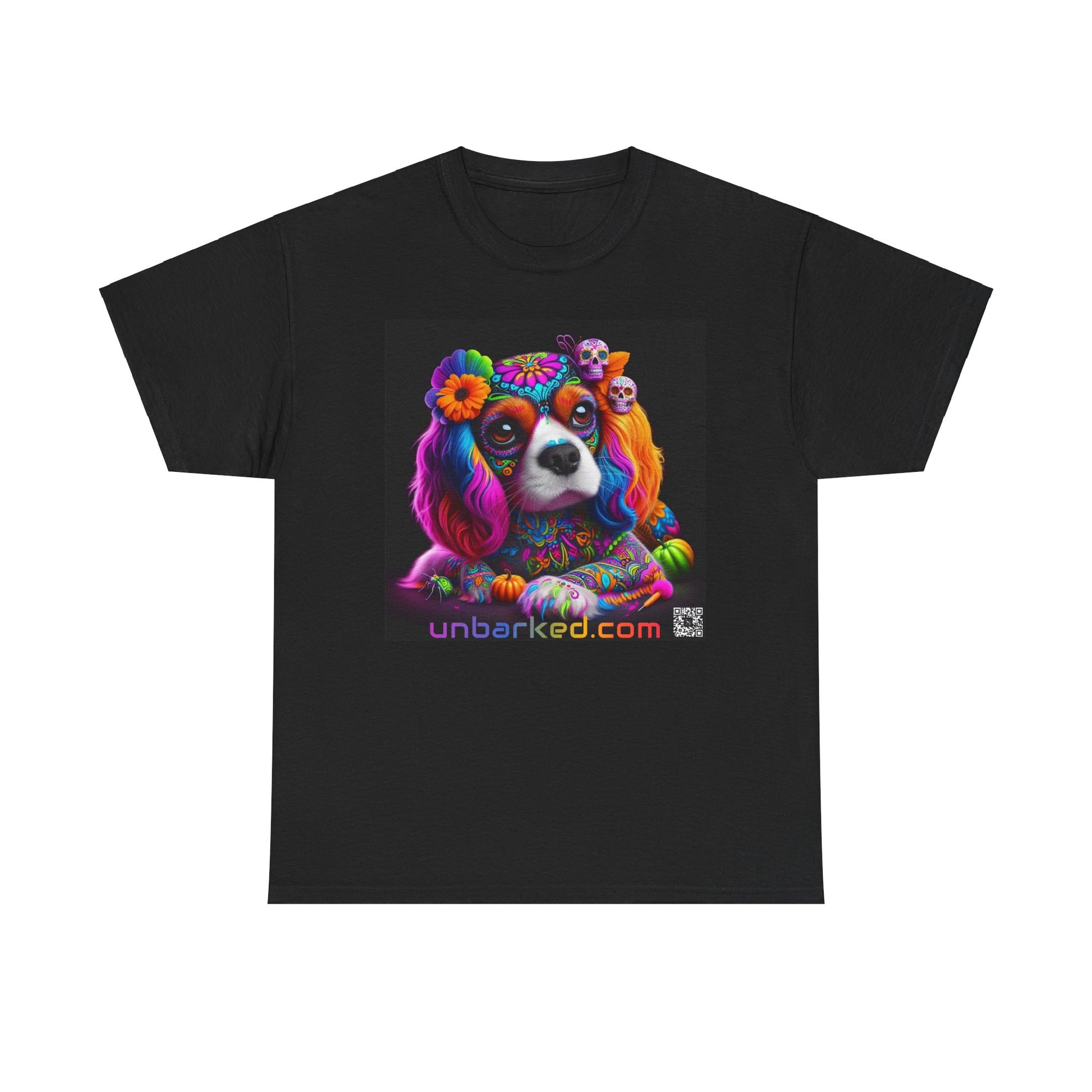 UNBARKED! Halloween Collection - Cavalier King Charles Spaniel Dog Vibrant Día de Muertos Tattoo Unisex Heavy Cotton Tee
