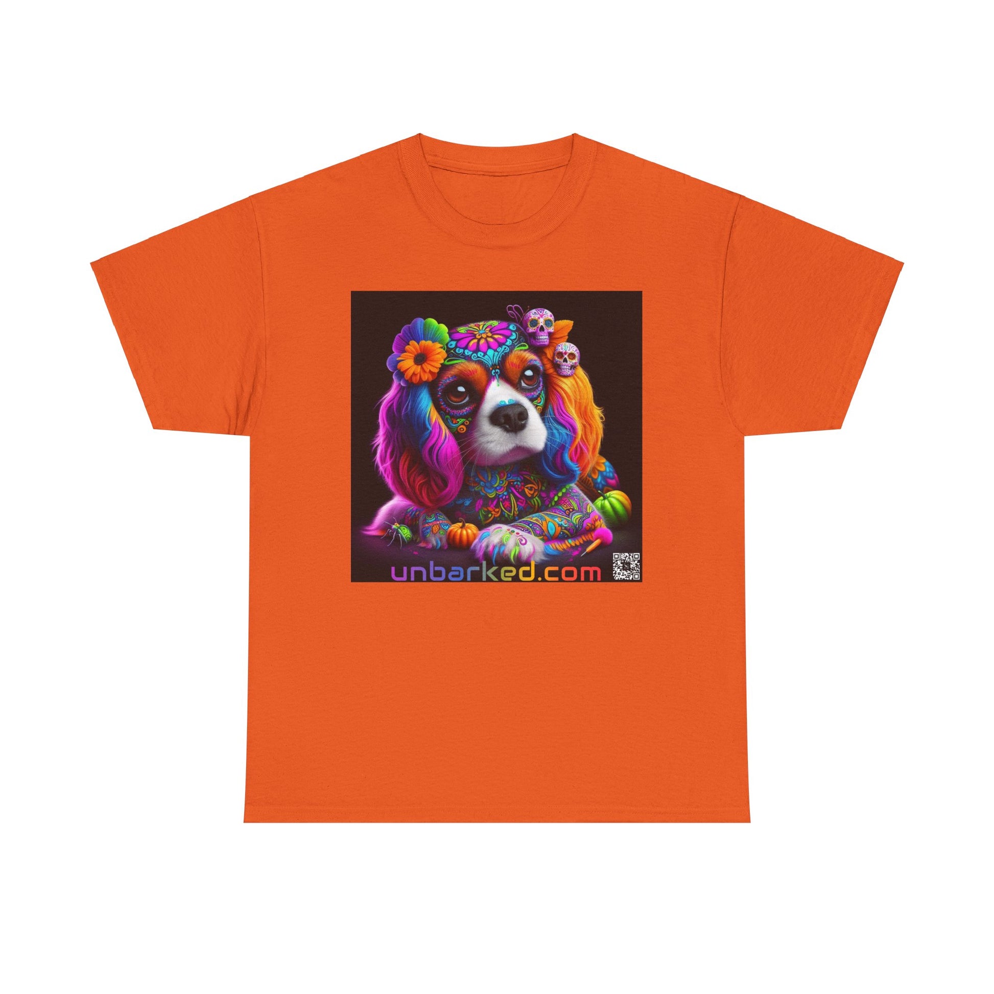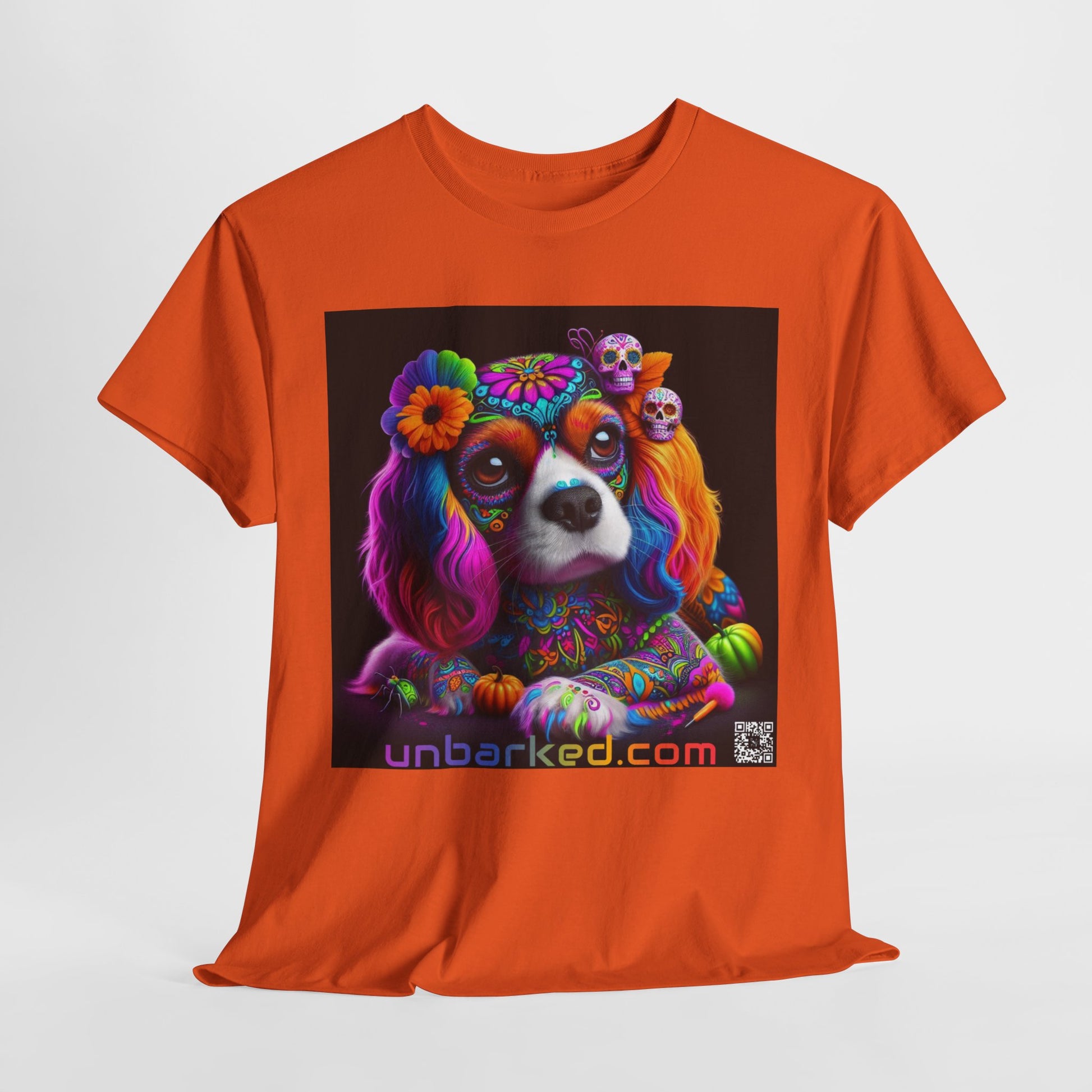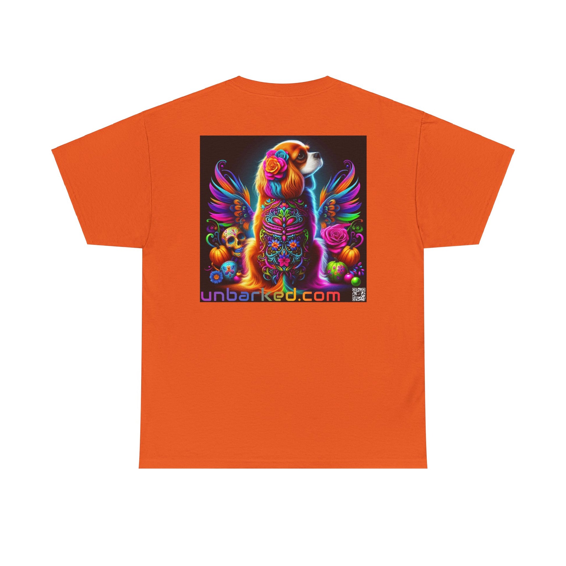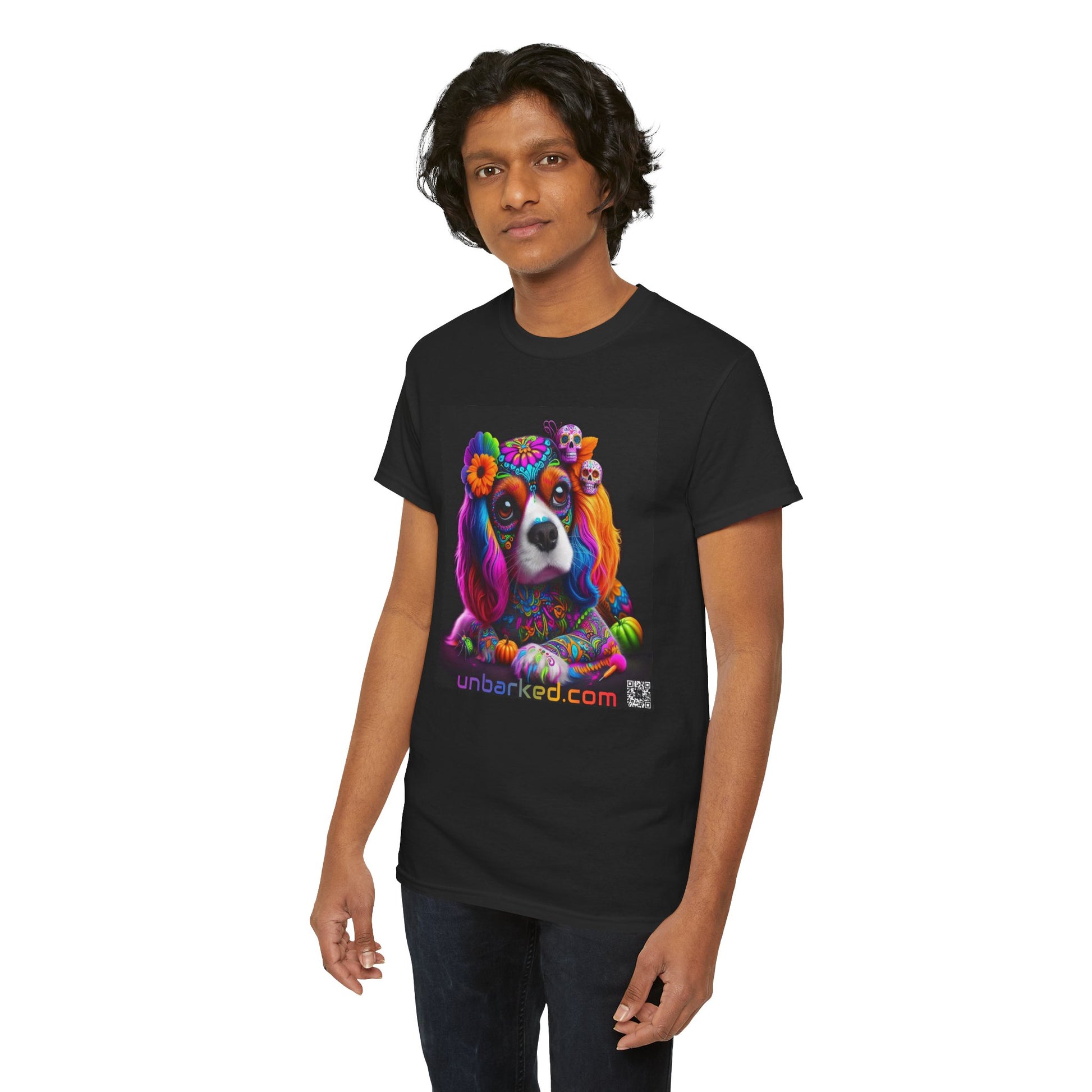 UNBARKED! Halloween Collection - Cavalier King Charles Spaniel Dog Vibrant Día de Muertos Tattoo Unisex Heavy Cotton Tee