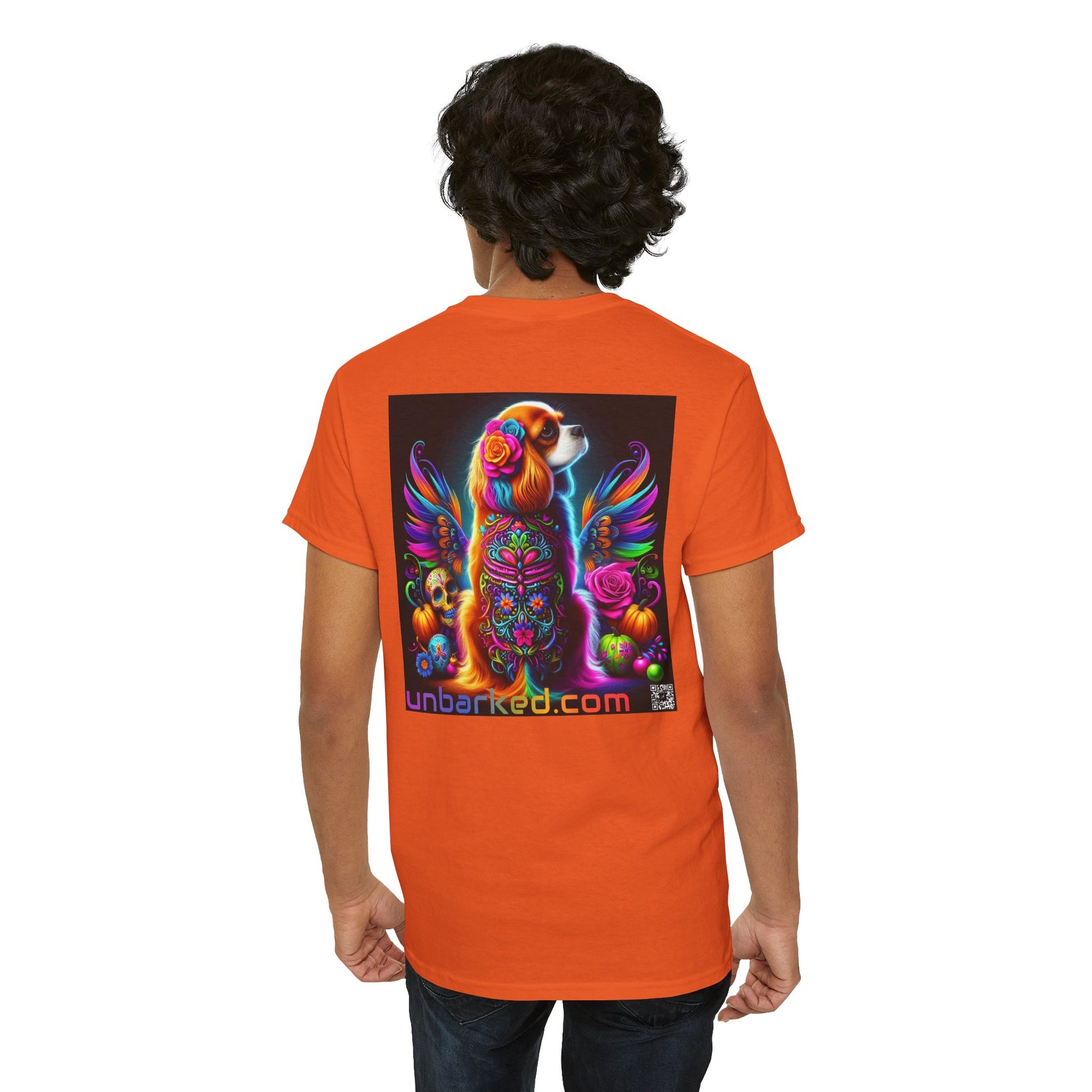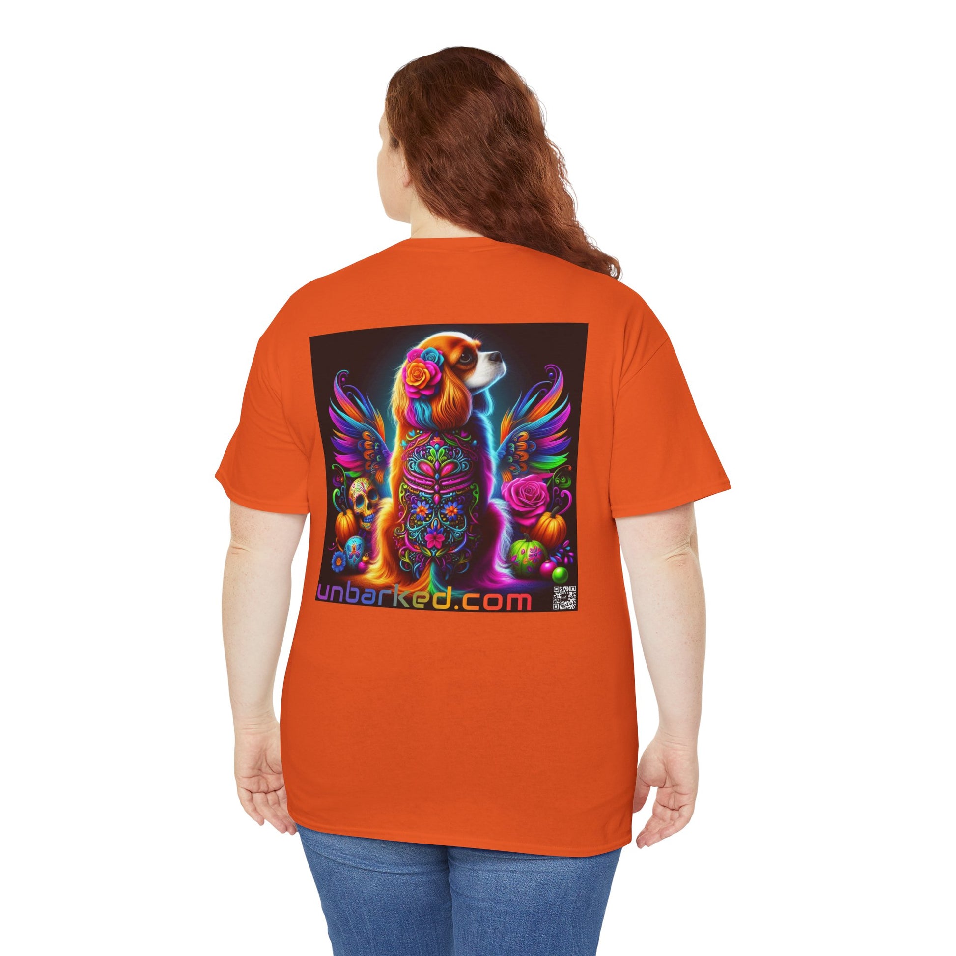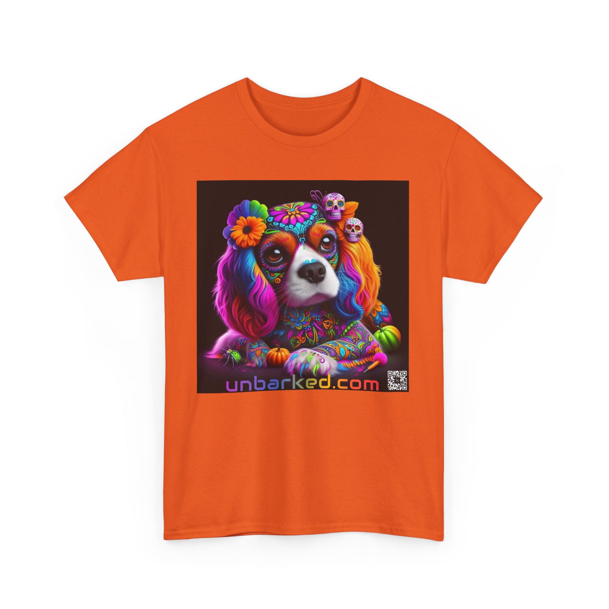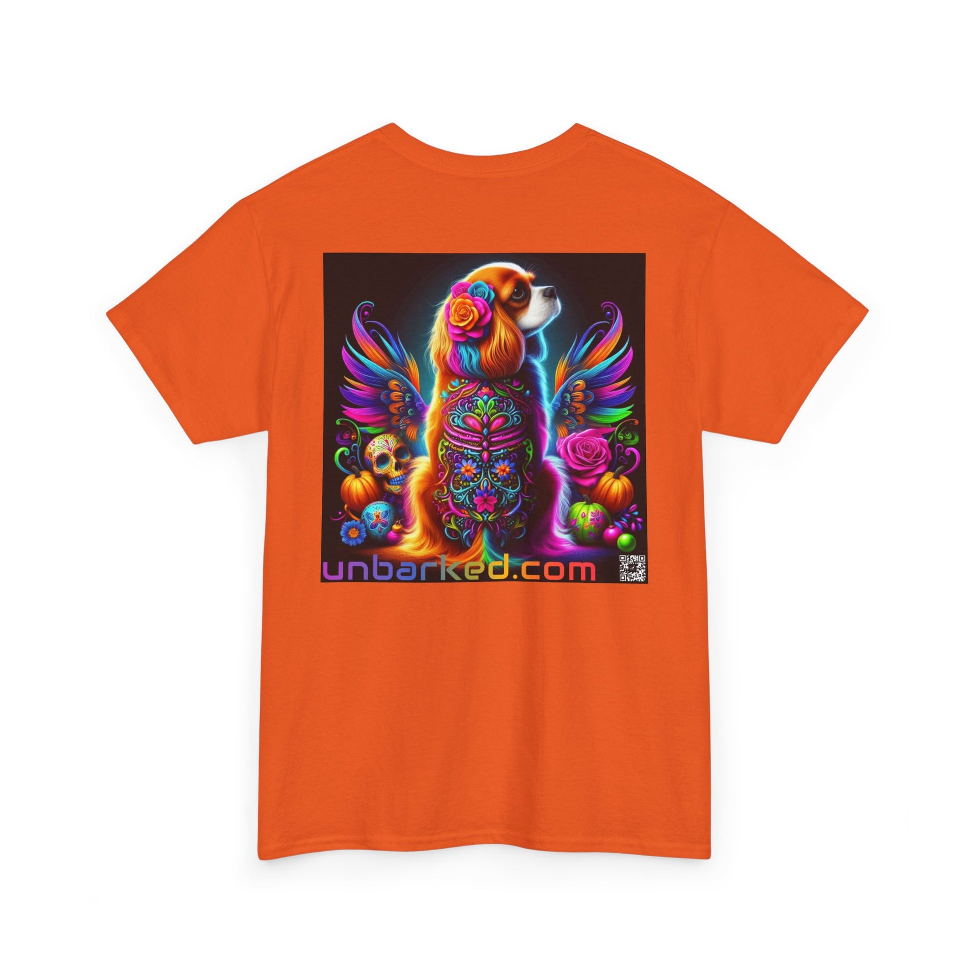 UNBARKED! Halloween Collection - Cavalier King Charles Spaniel Dog Vibrant Día de Muertos Tattoo Unisex Heavy Cotton Tee