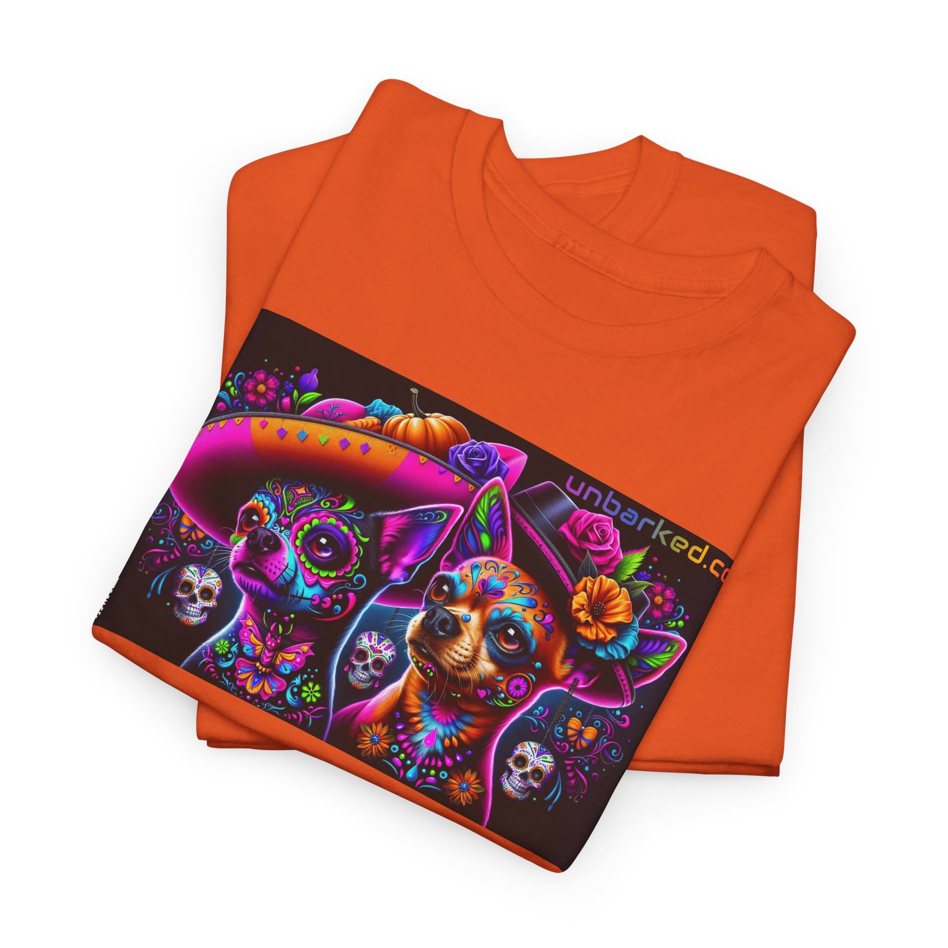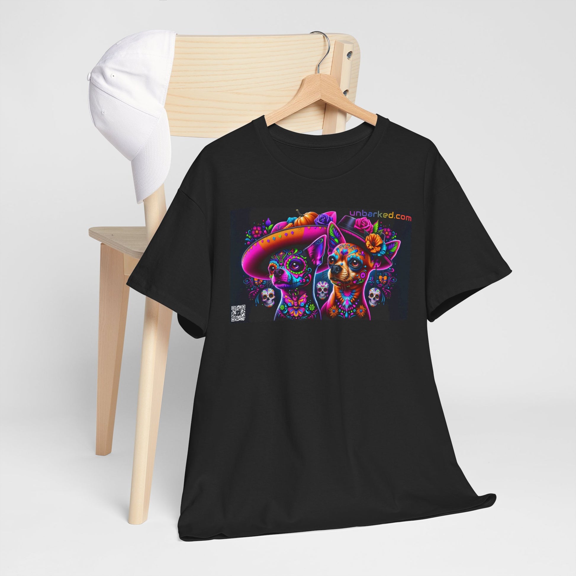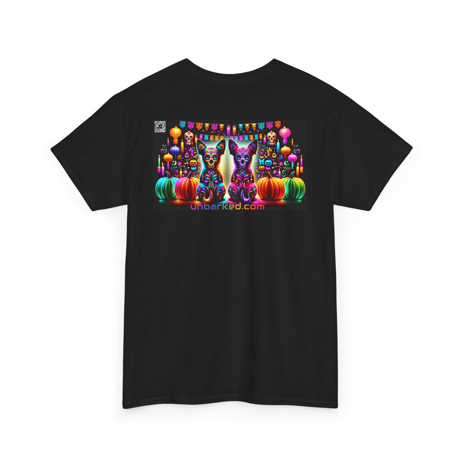 UNBARKED! Halloween Collection - Chihuahua Dog Vibrant Día de Muertos Tattoo Unisex Heavy Cotton Tee