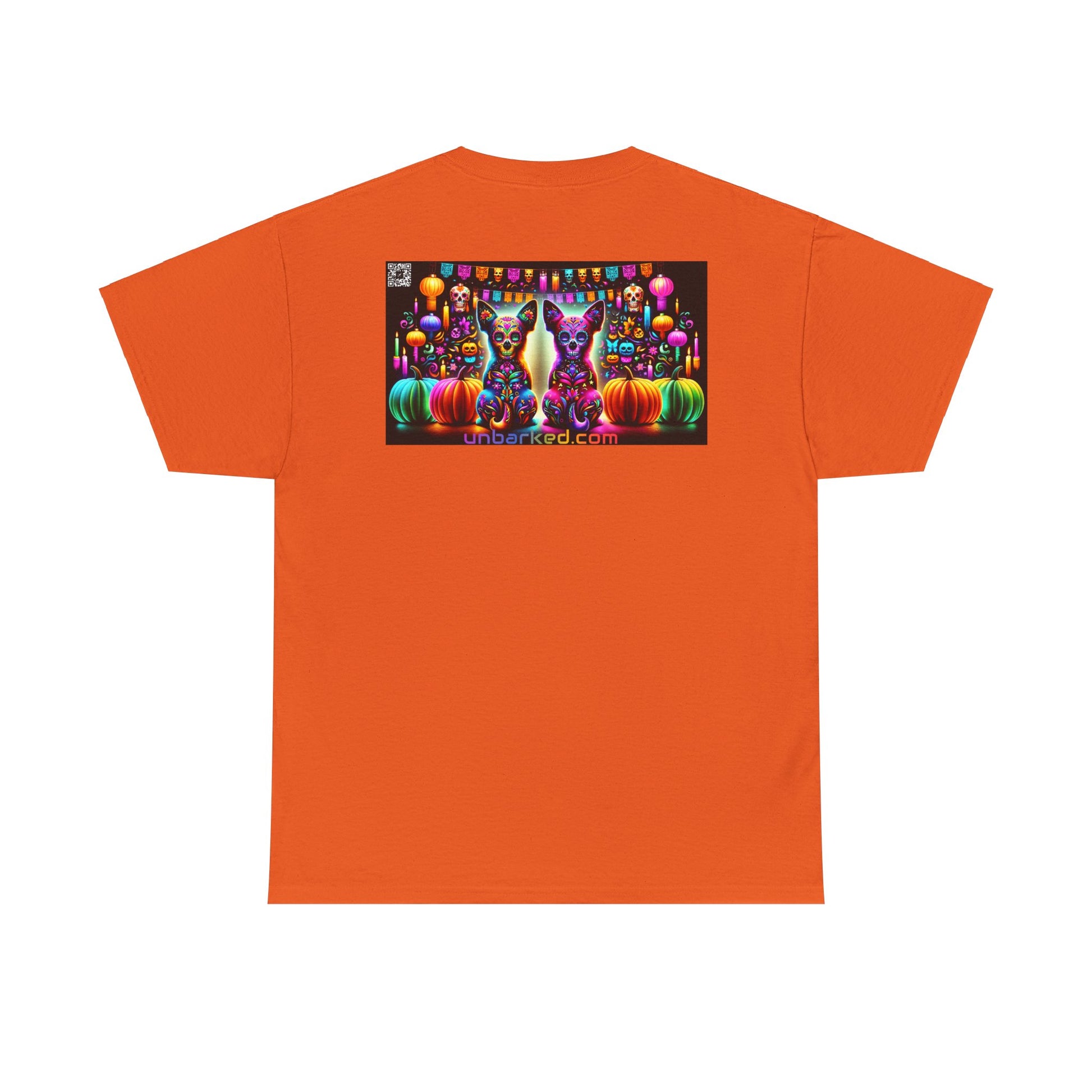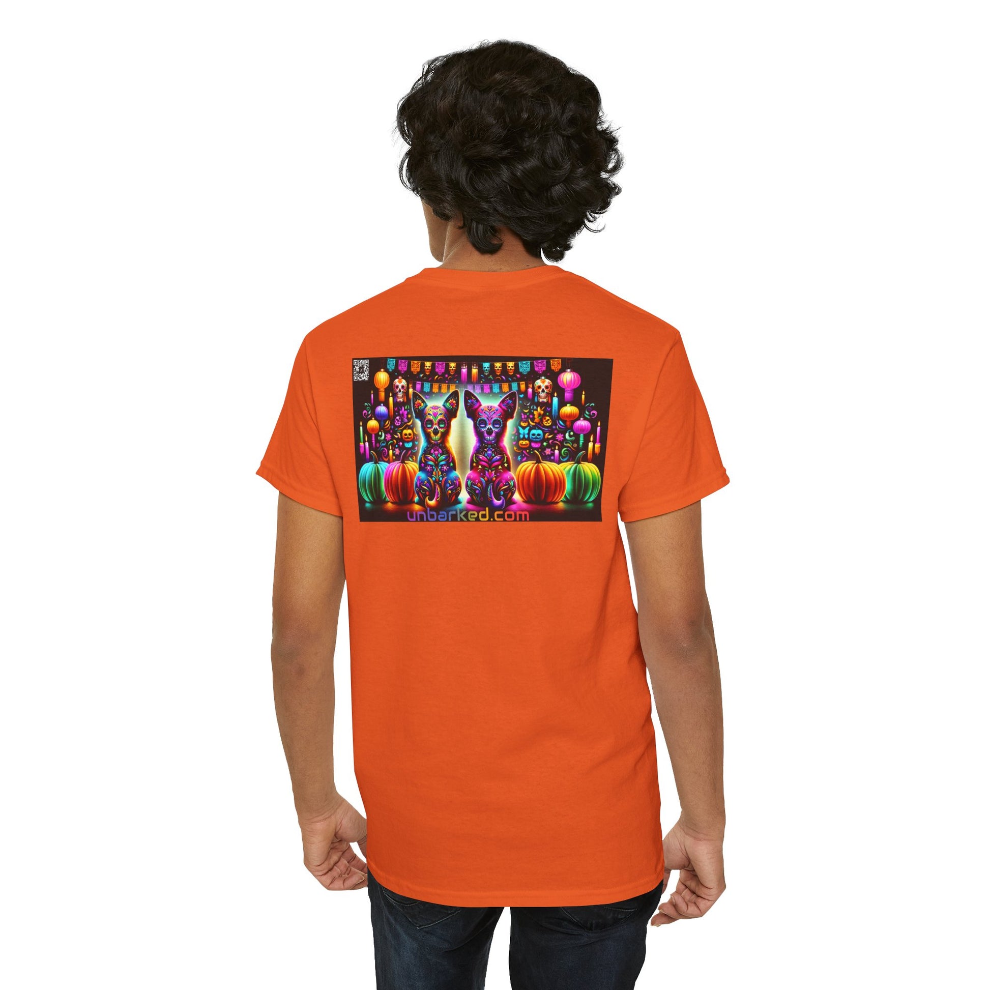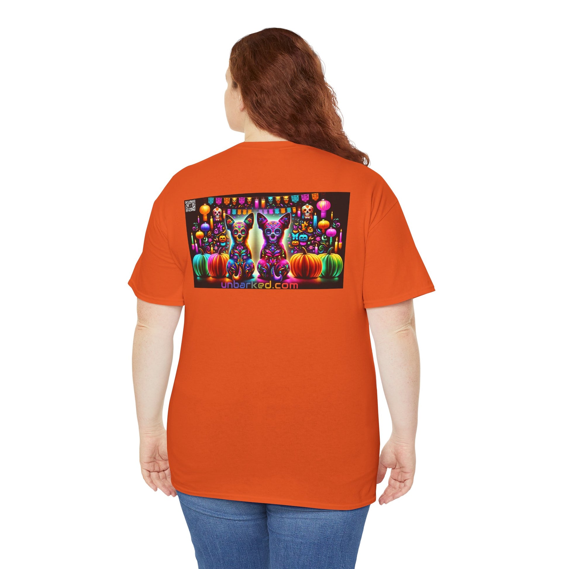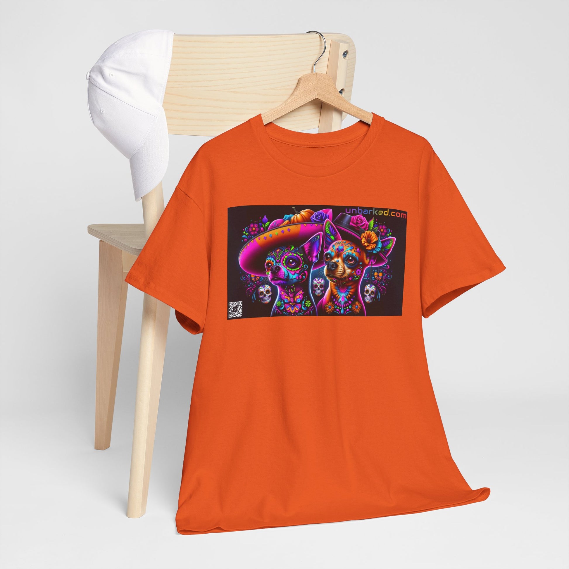 UNBARKED! Halloween Collection - Chihuahua Dog Vibrant Día de Muertos Tattoo Unisex Heavy Cotton Tee