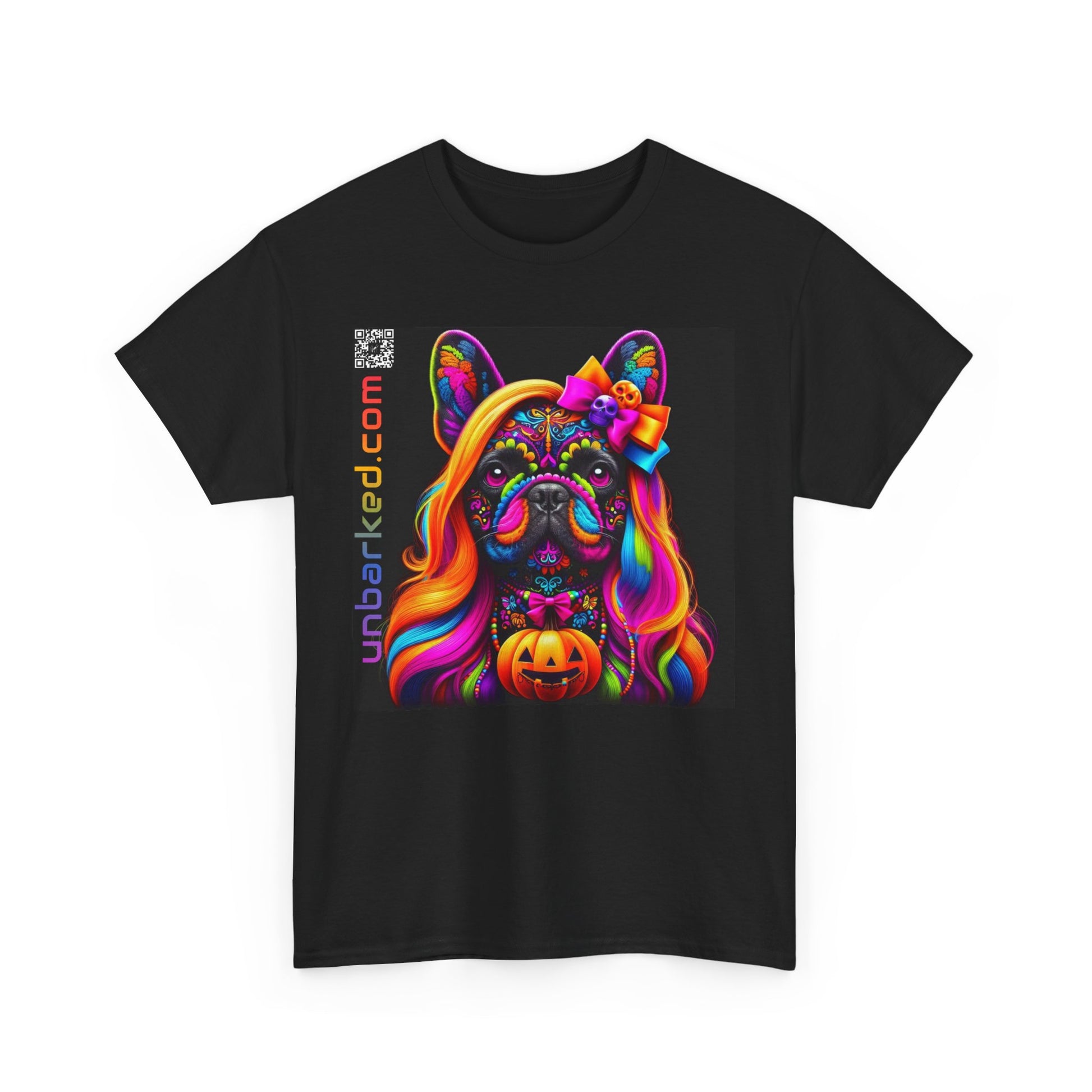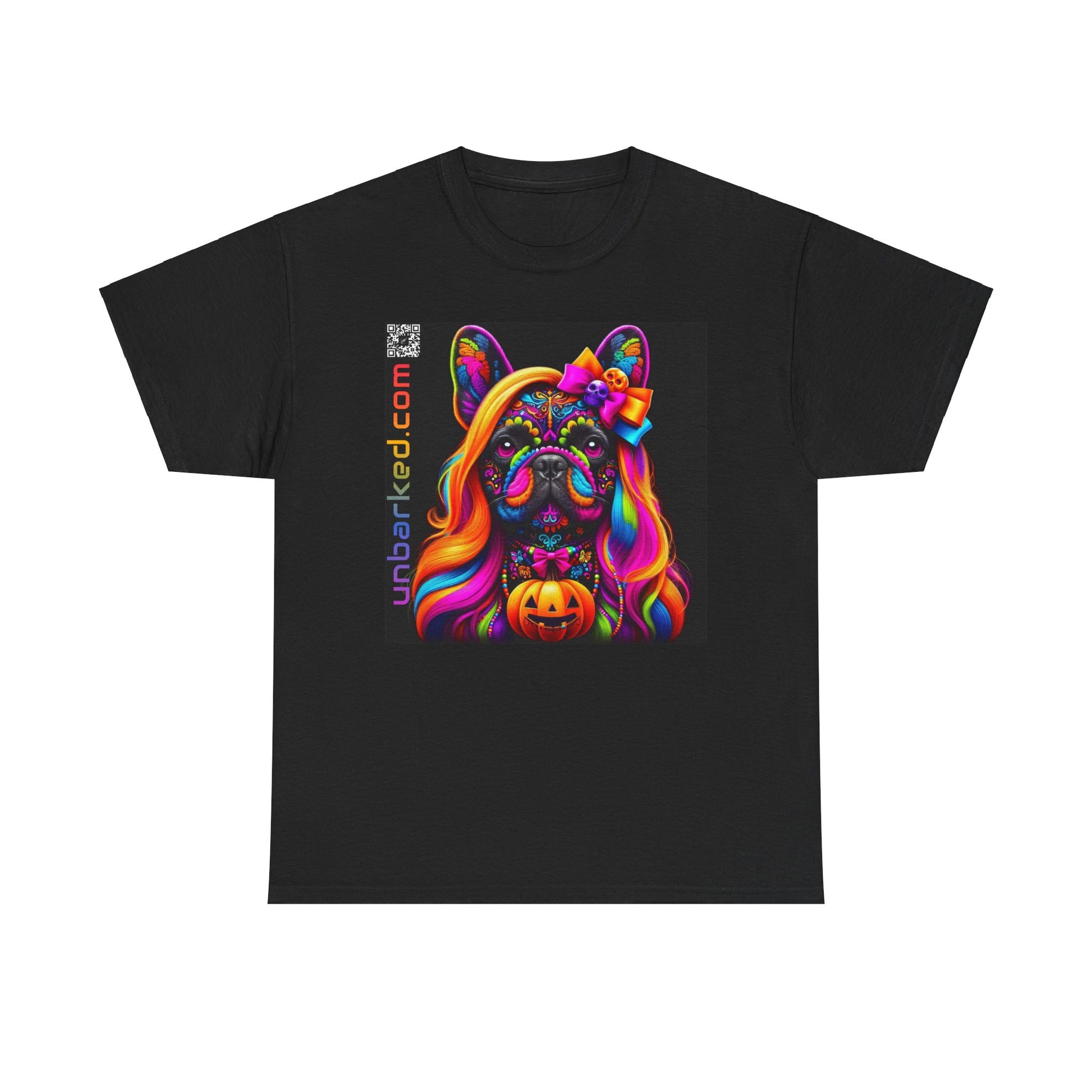 UNBARKED! Halloween Collection - Frenchie Dog Vibrant Día de Muertos Tattoo Unisex Heavy Cotton Tee