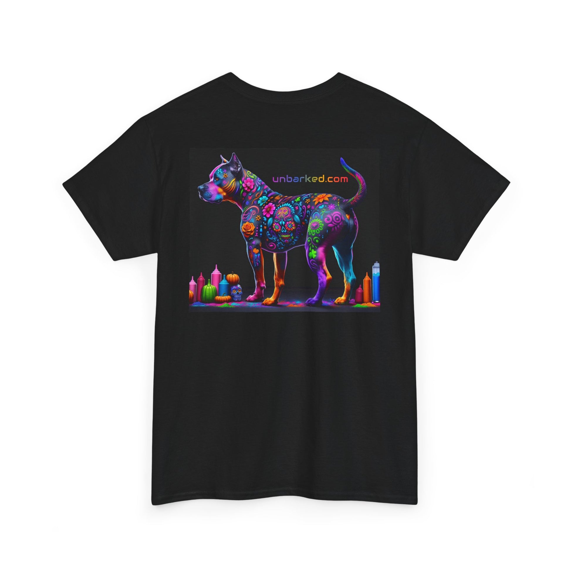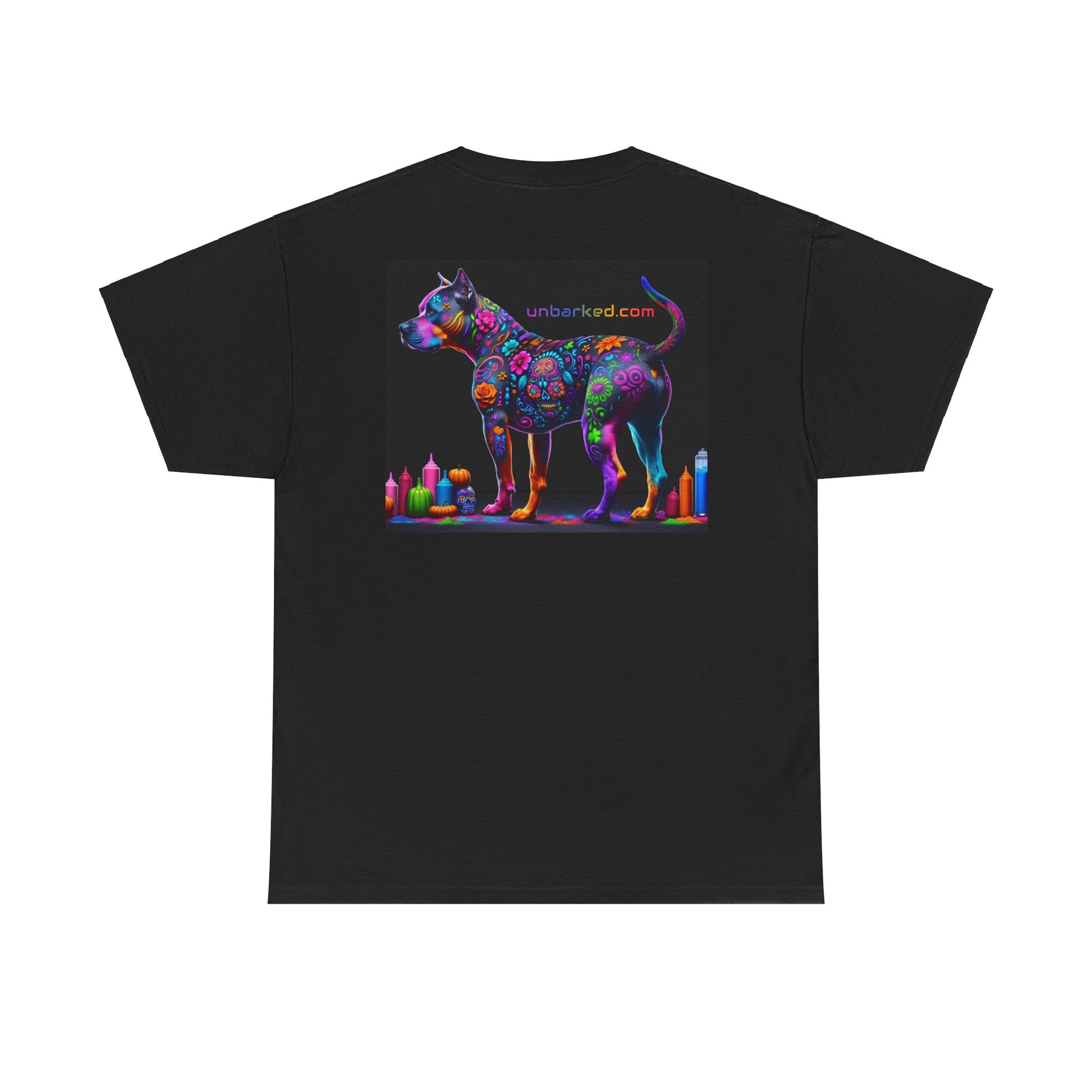 UNBARKED! Halloween Collection - Pitbull Dog Pittie Vibrant Día de Muertos Tattoo Unisex Heavy Cotton Tee