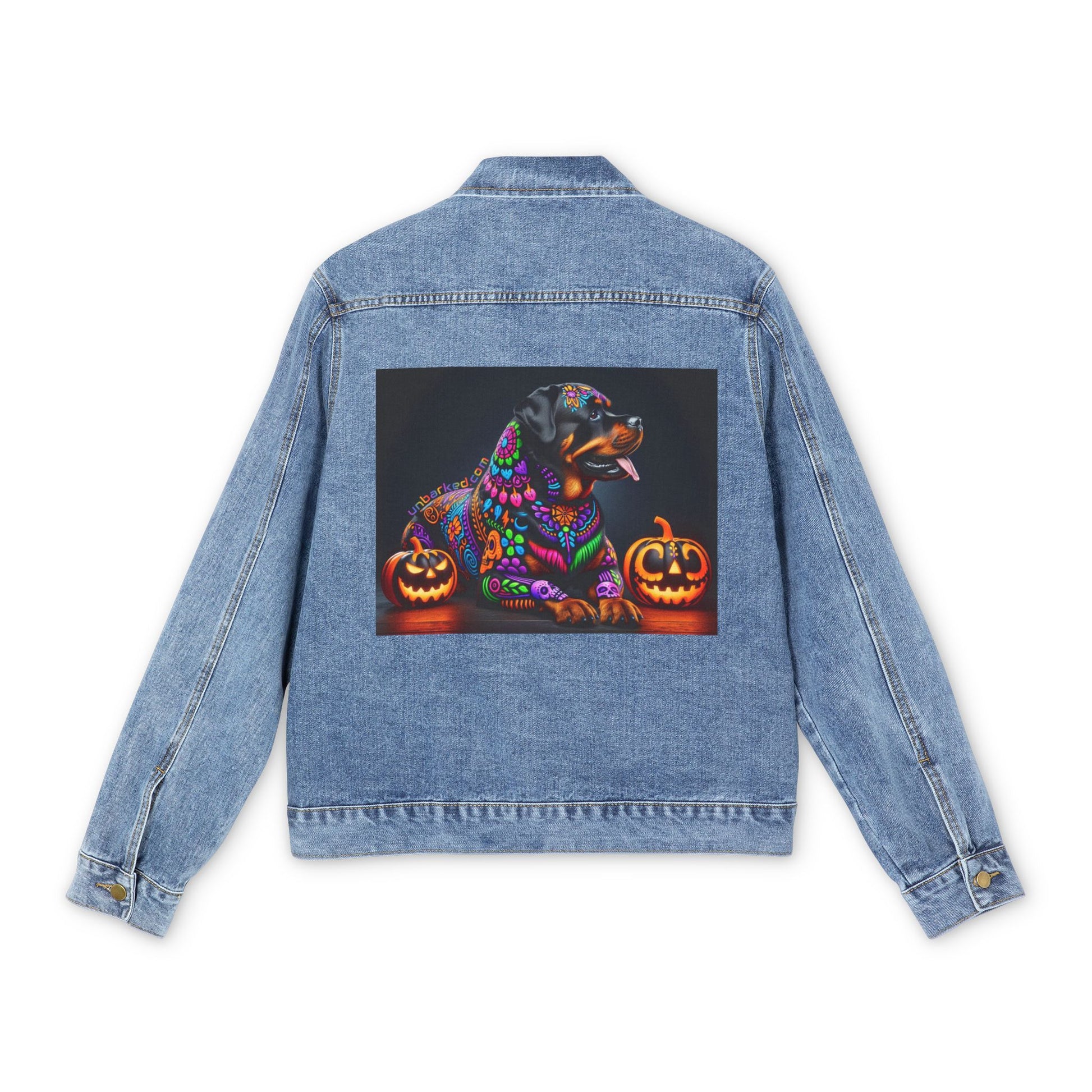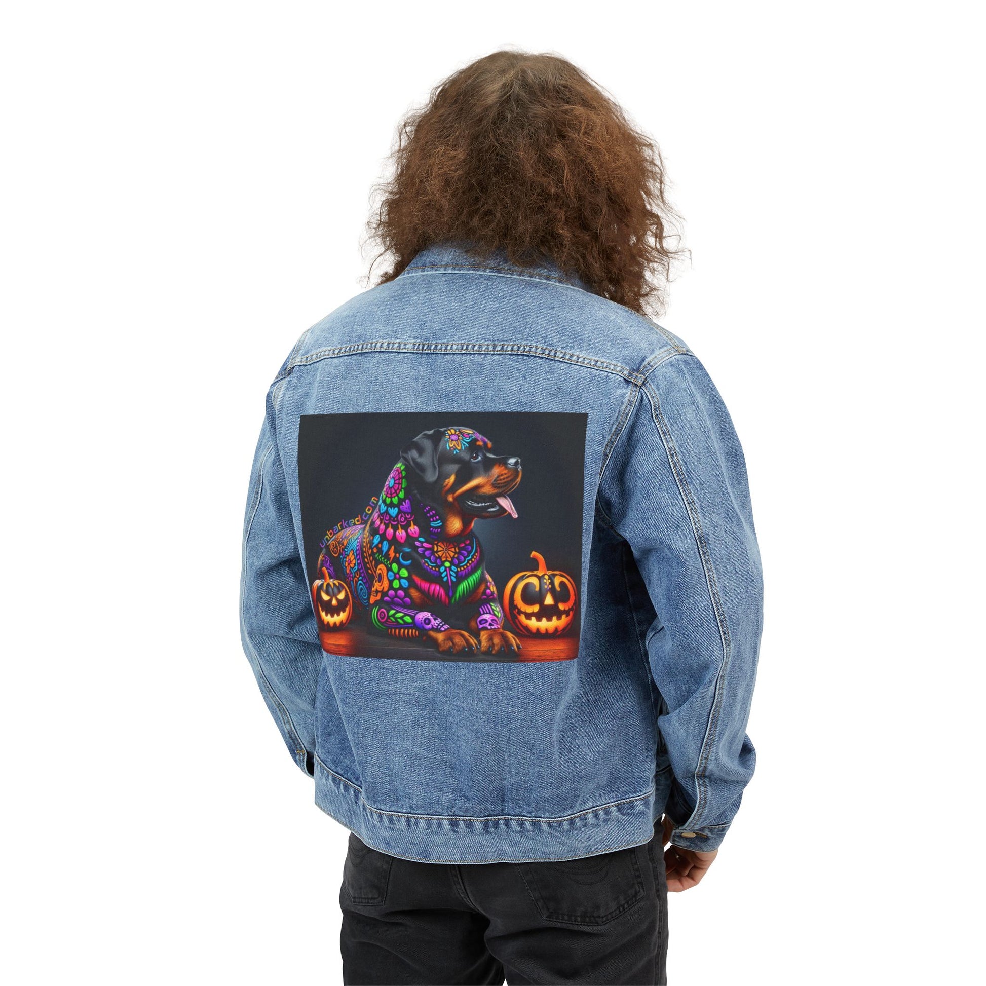 UNBARKED! Halloween Collection Rottweiler Dog Dia de Los Muertos Denim Jacket Throw Bak!