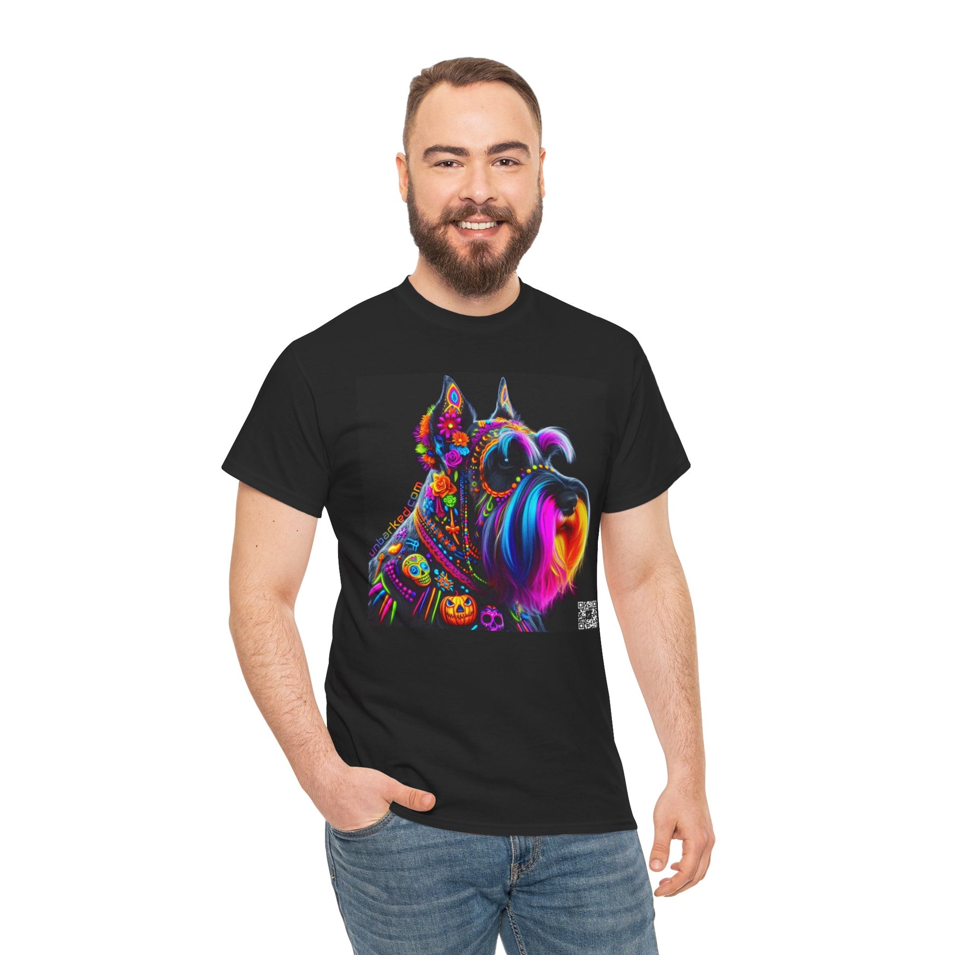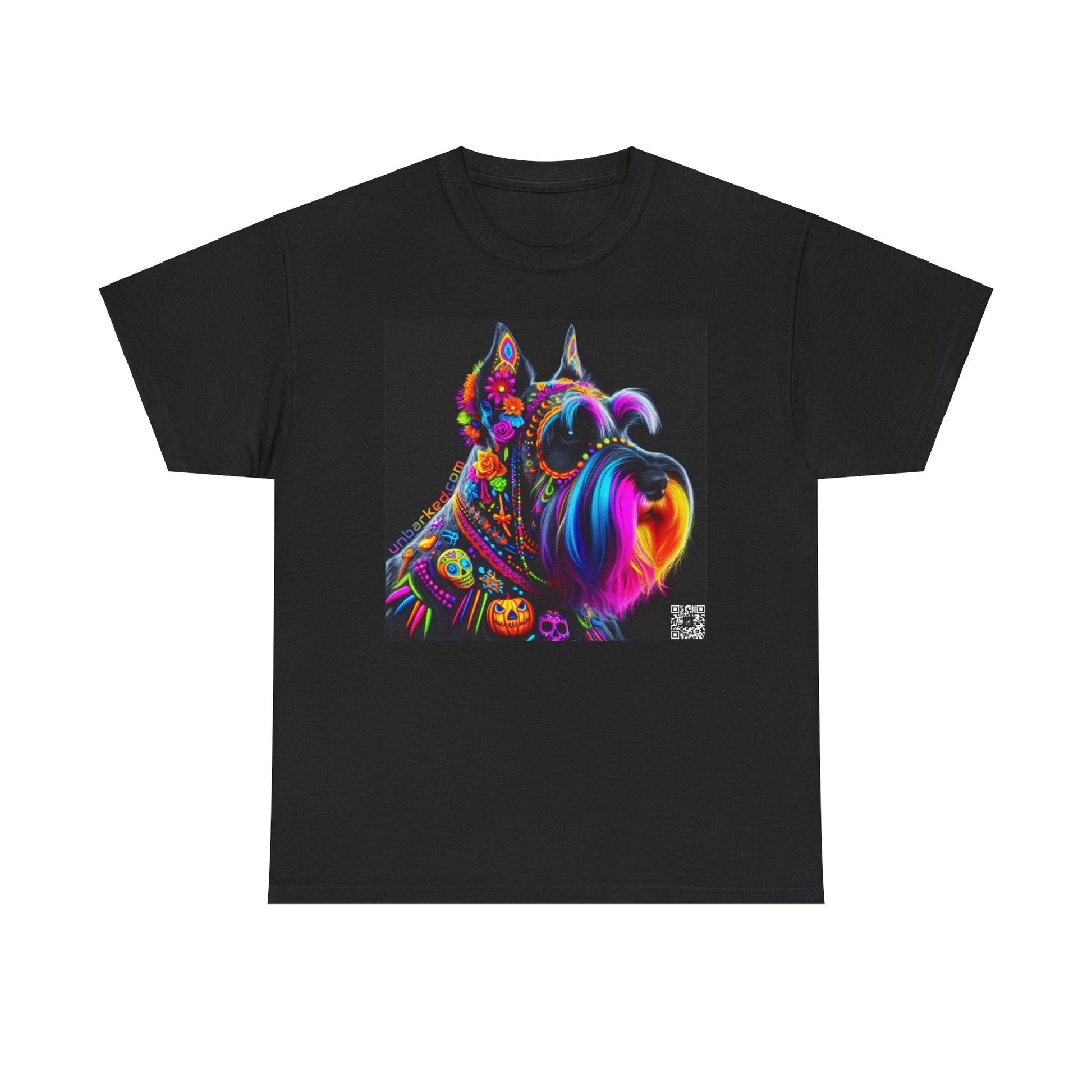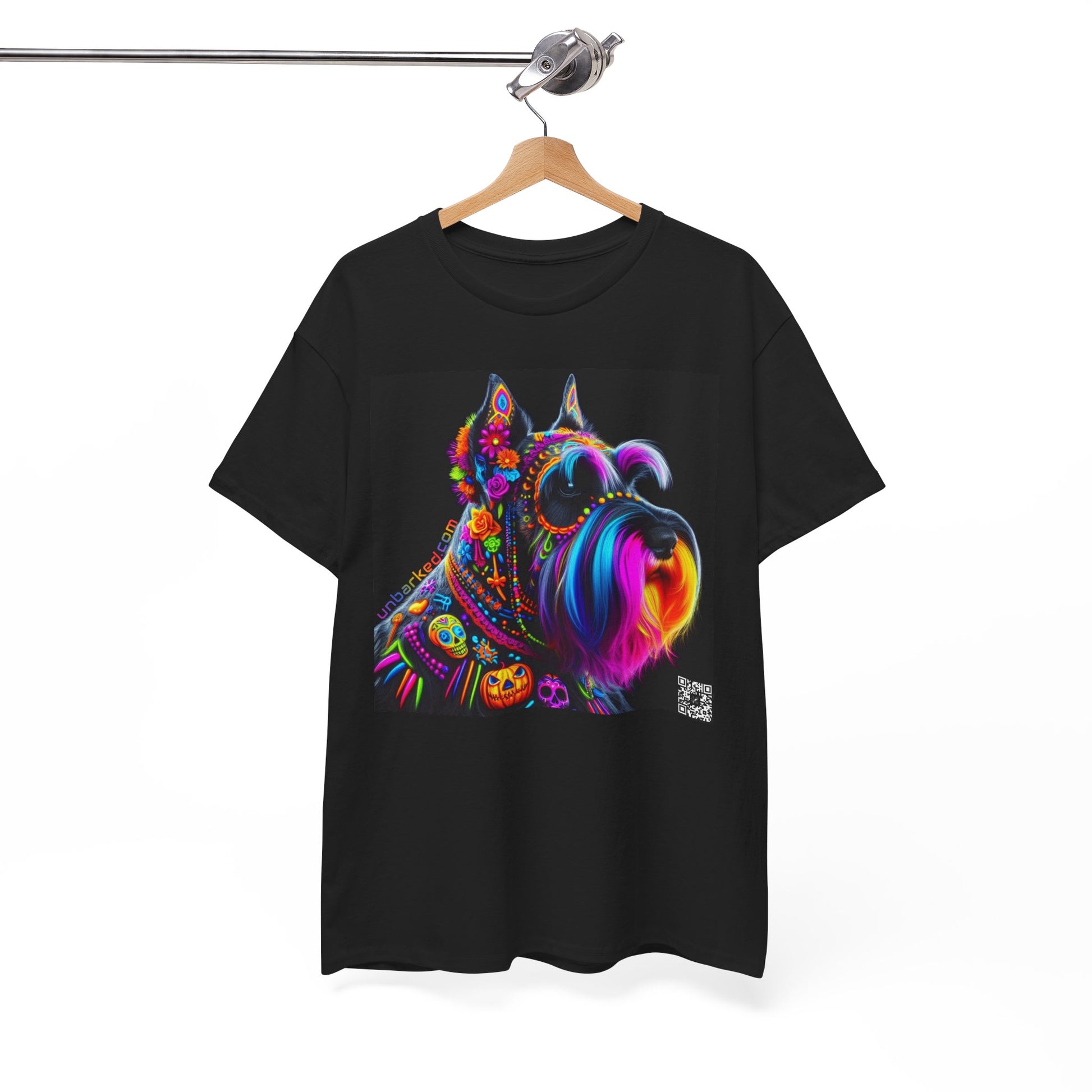 UNBARKED! Halloween Collection - Schnauzer Dog Vibrant Día de Muertos Tattoo Unisex Heavy Cotton Tee