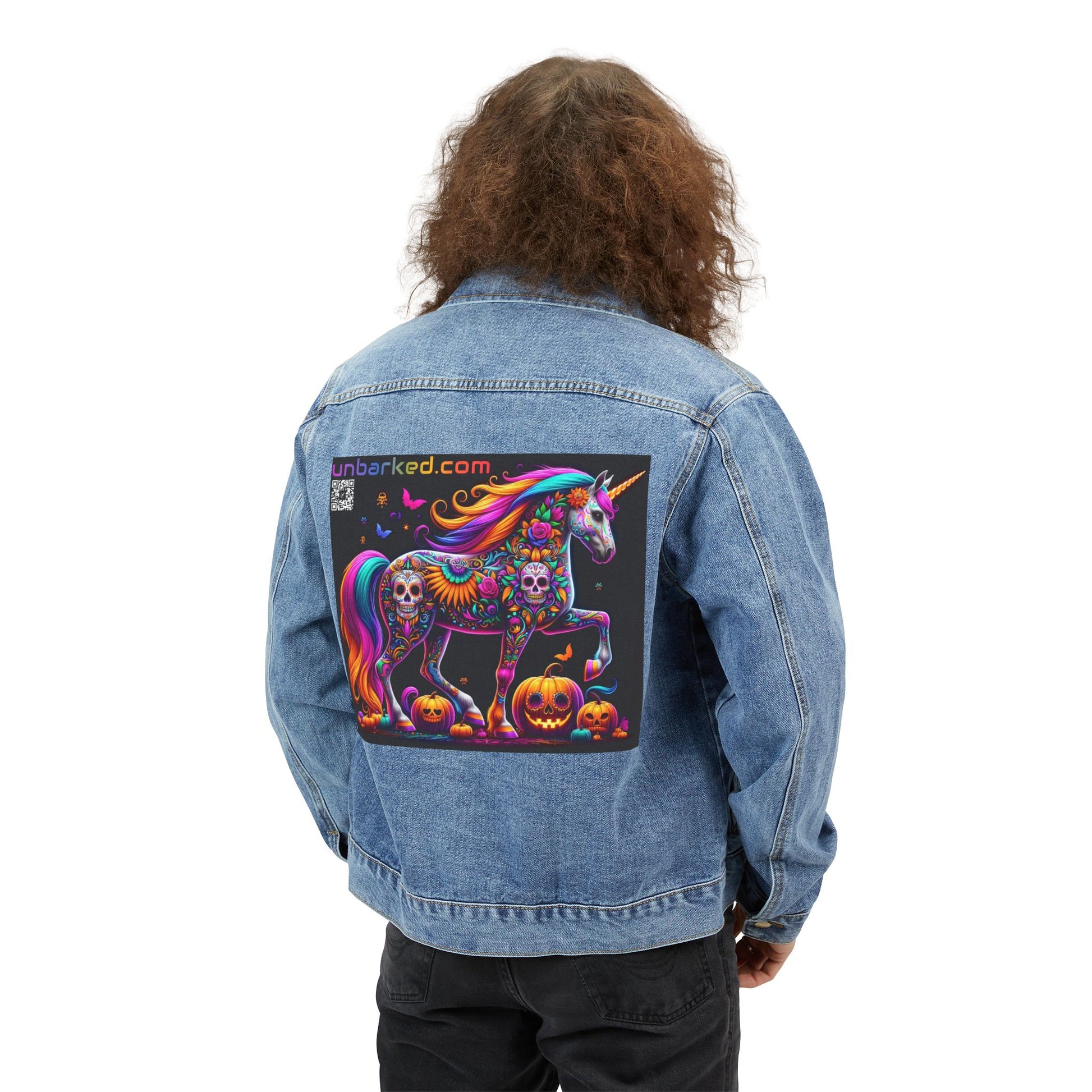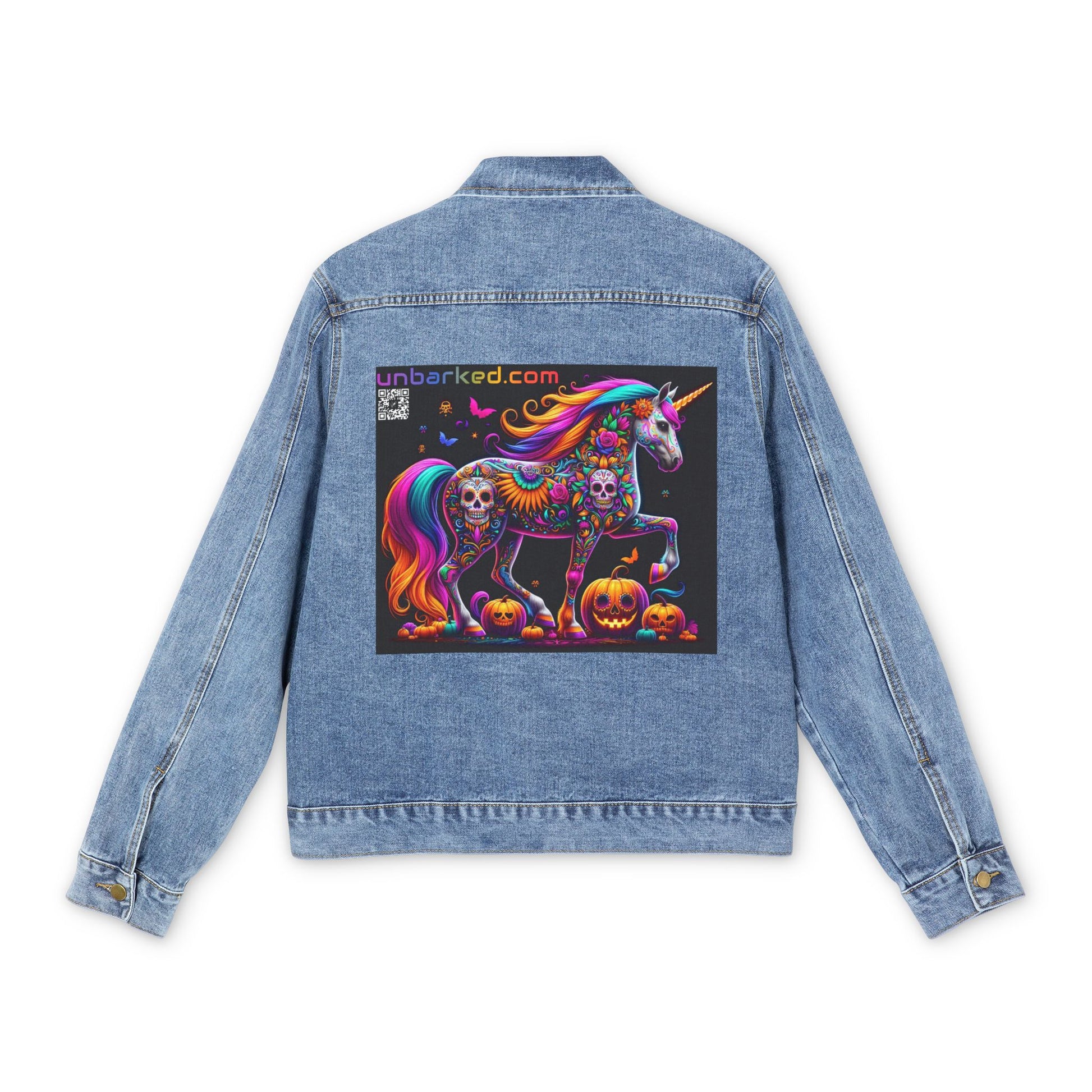 UNBARKED! Halloween Collection Unicorn Denim Jacket Throw Bak