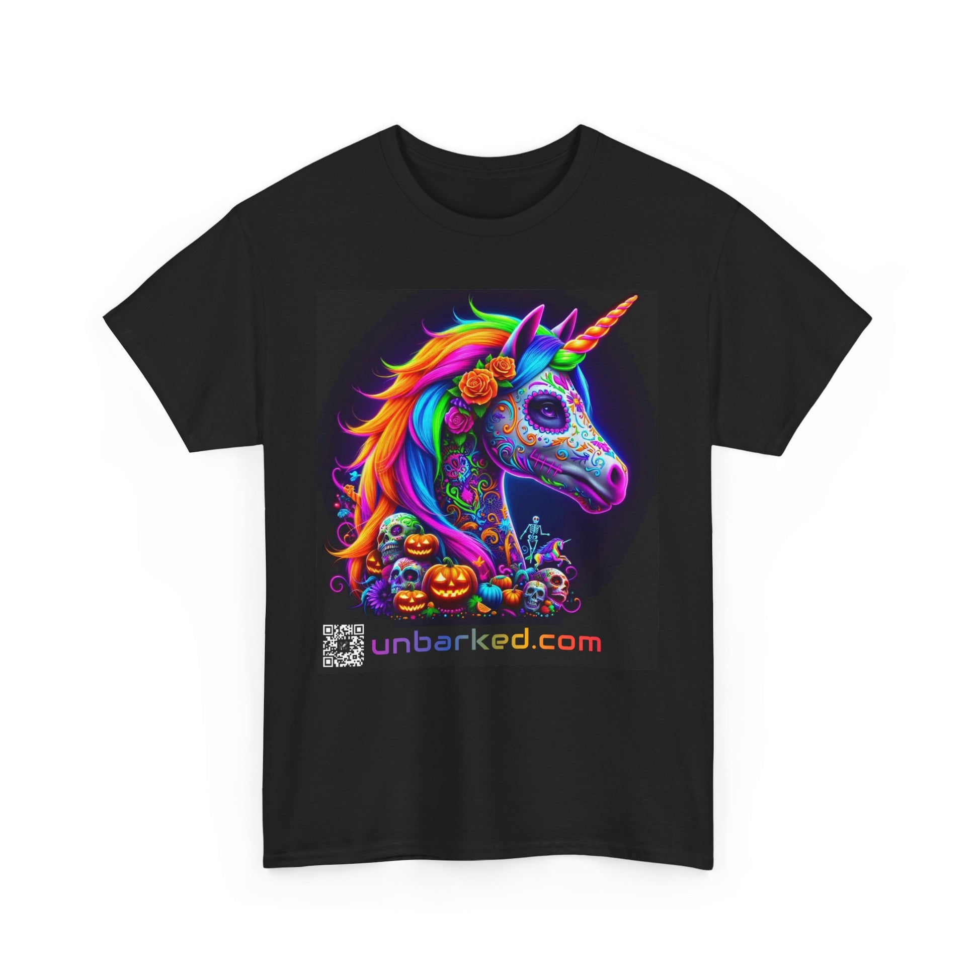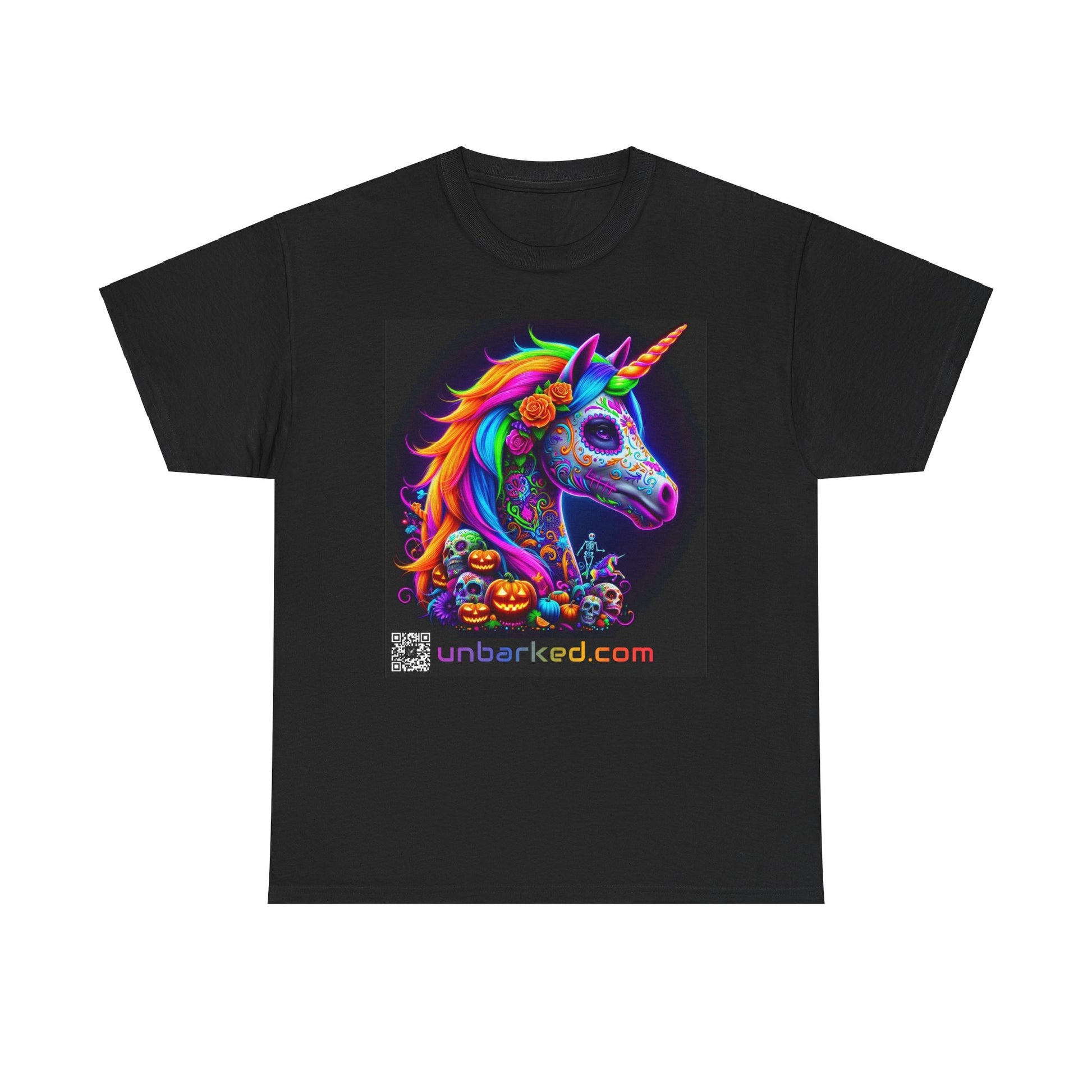 UNBARKED! Halloween Collection - Unicorn Vibrant Día de Muertos Tattoo Unisex Heavy Cotton Tee