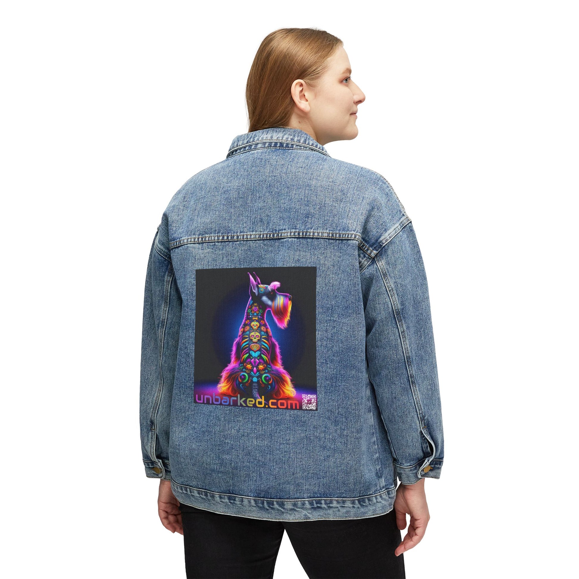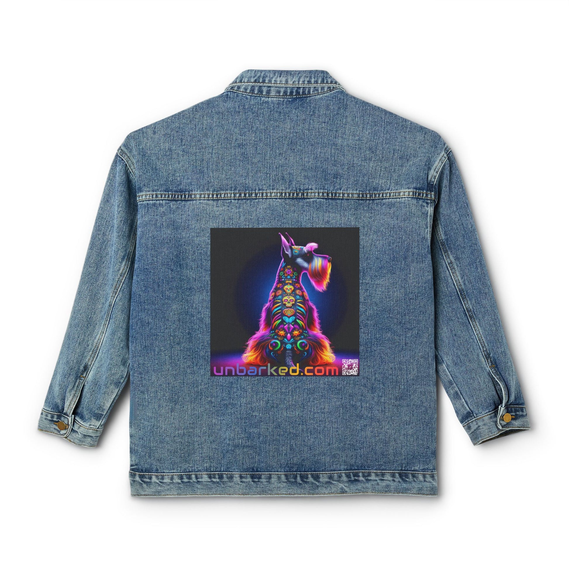 UNBARKED Halloween Collection Schnauzer Dog Denim Jacket Throw Bak