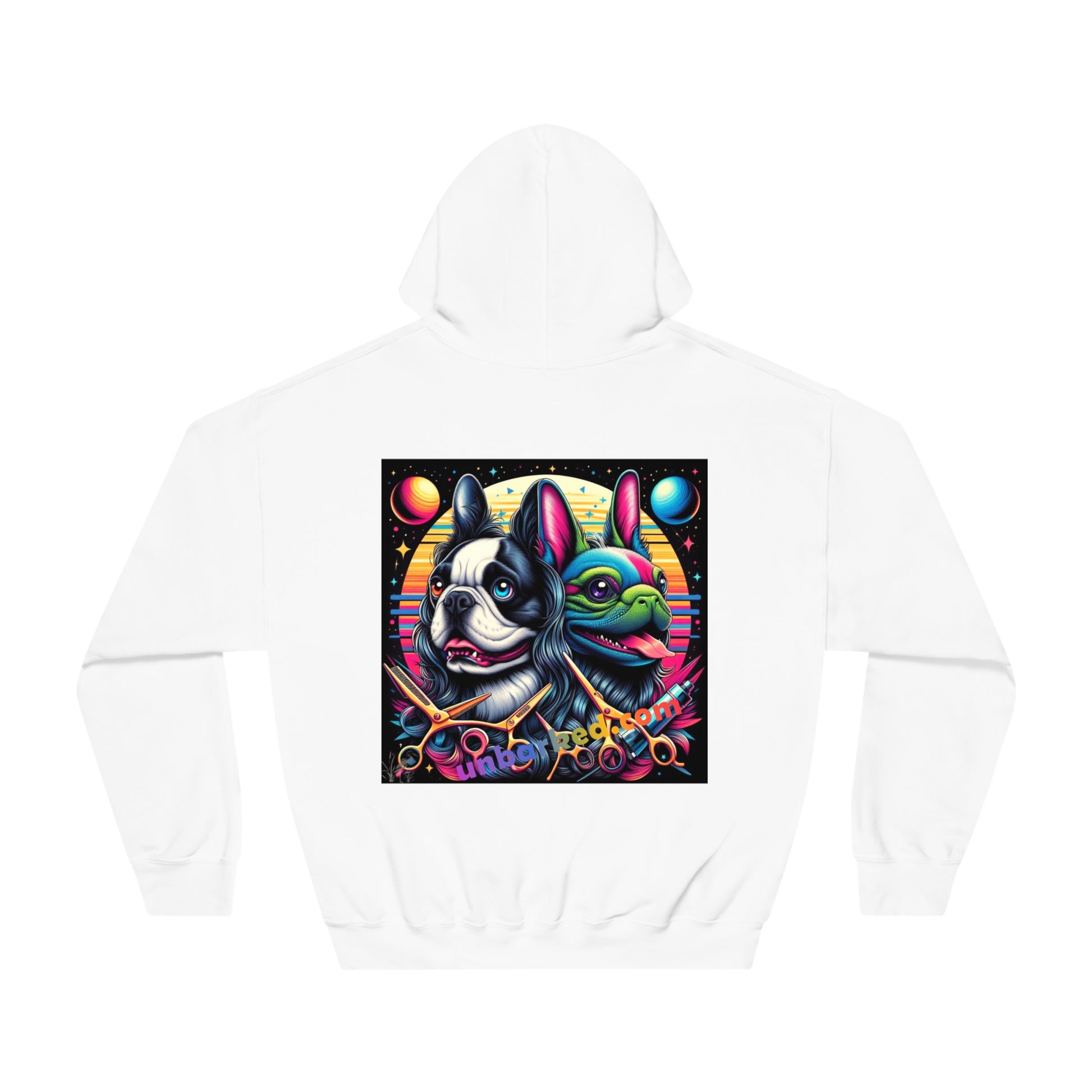 Unisex DryBlend® Hooded Sweatshirt Black Schnauzer Front, IguannaFrenchie Reverse Hoodie