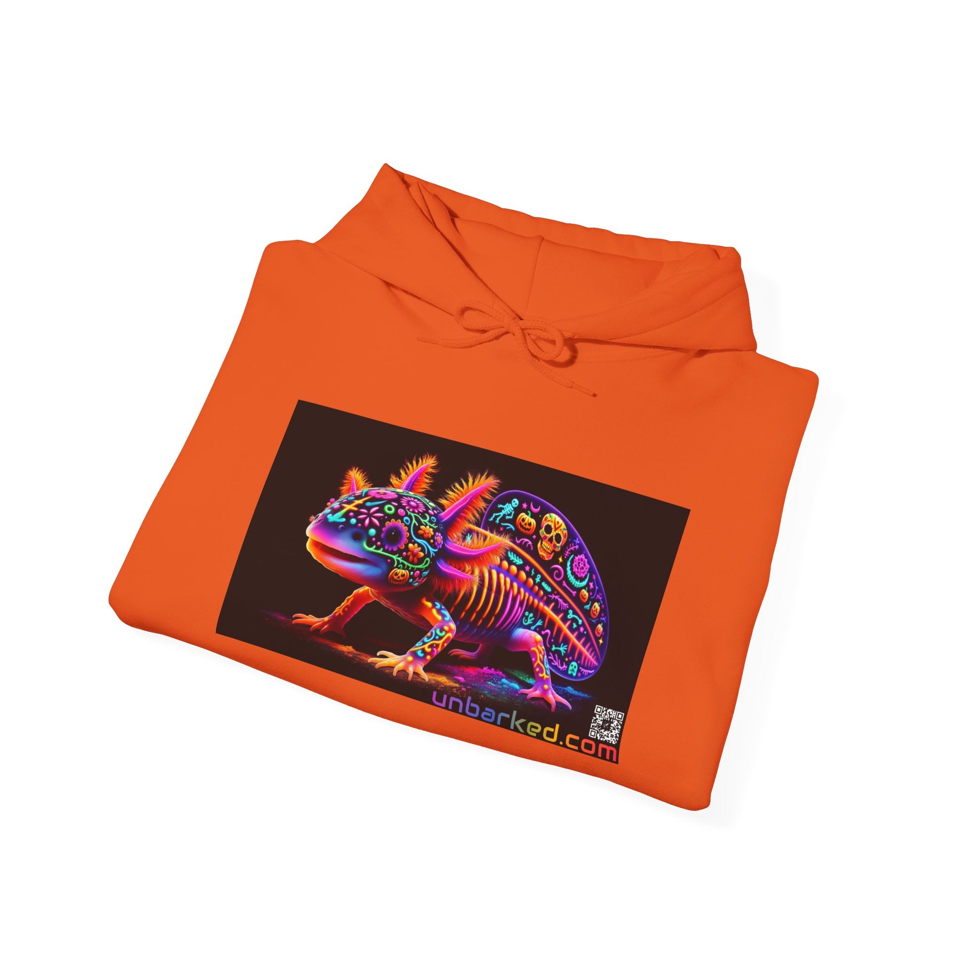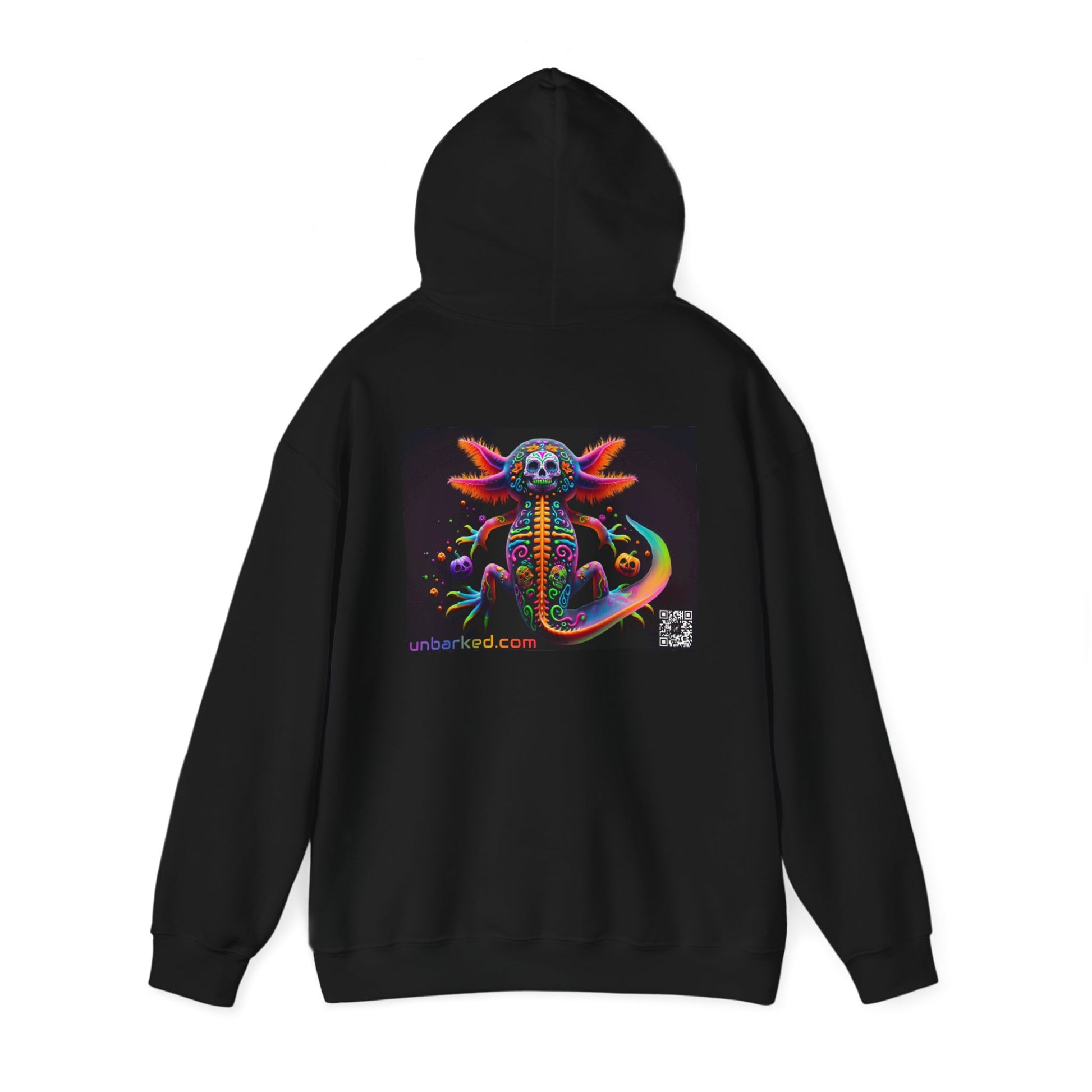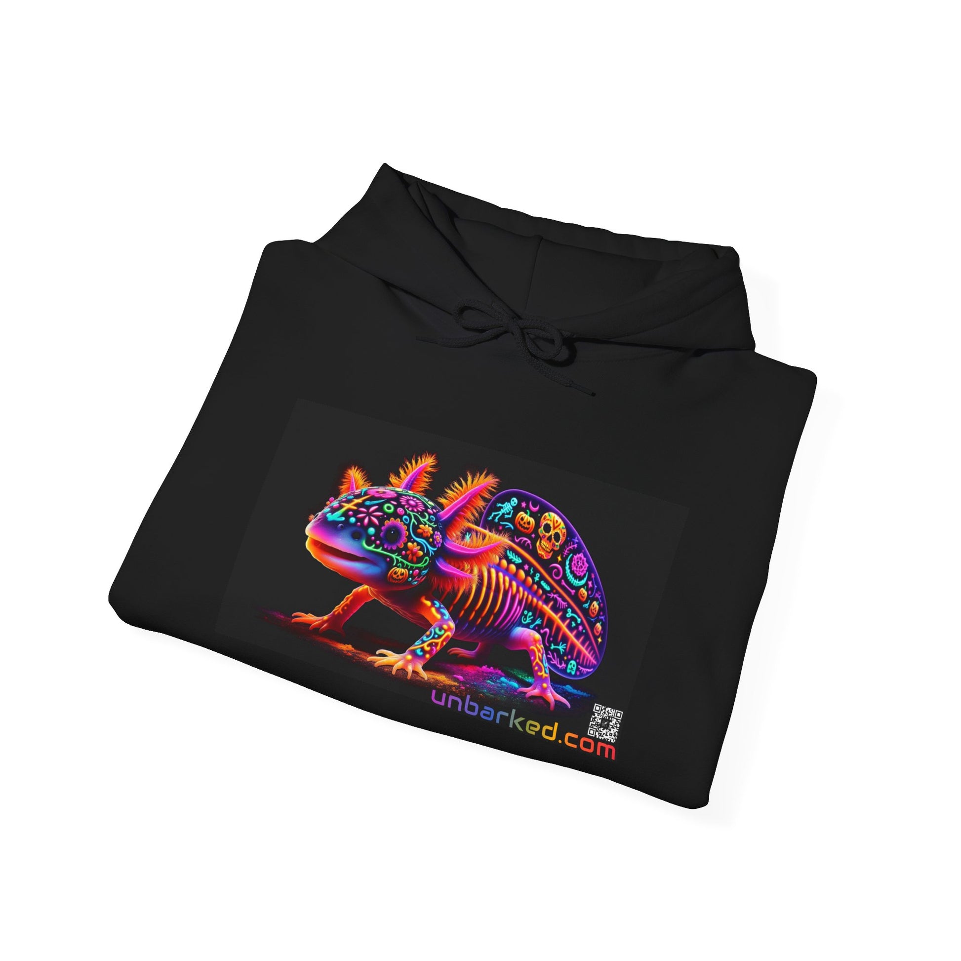 Unisex Heavy Blend™ Hooded Sweatshirt UNBARKED! Halloween Collection - Axolotl Vibrant Día de Muertos Tattoo