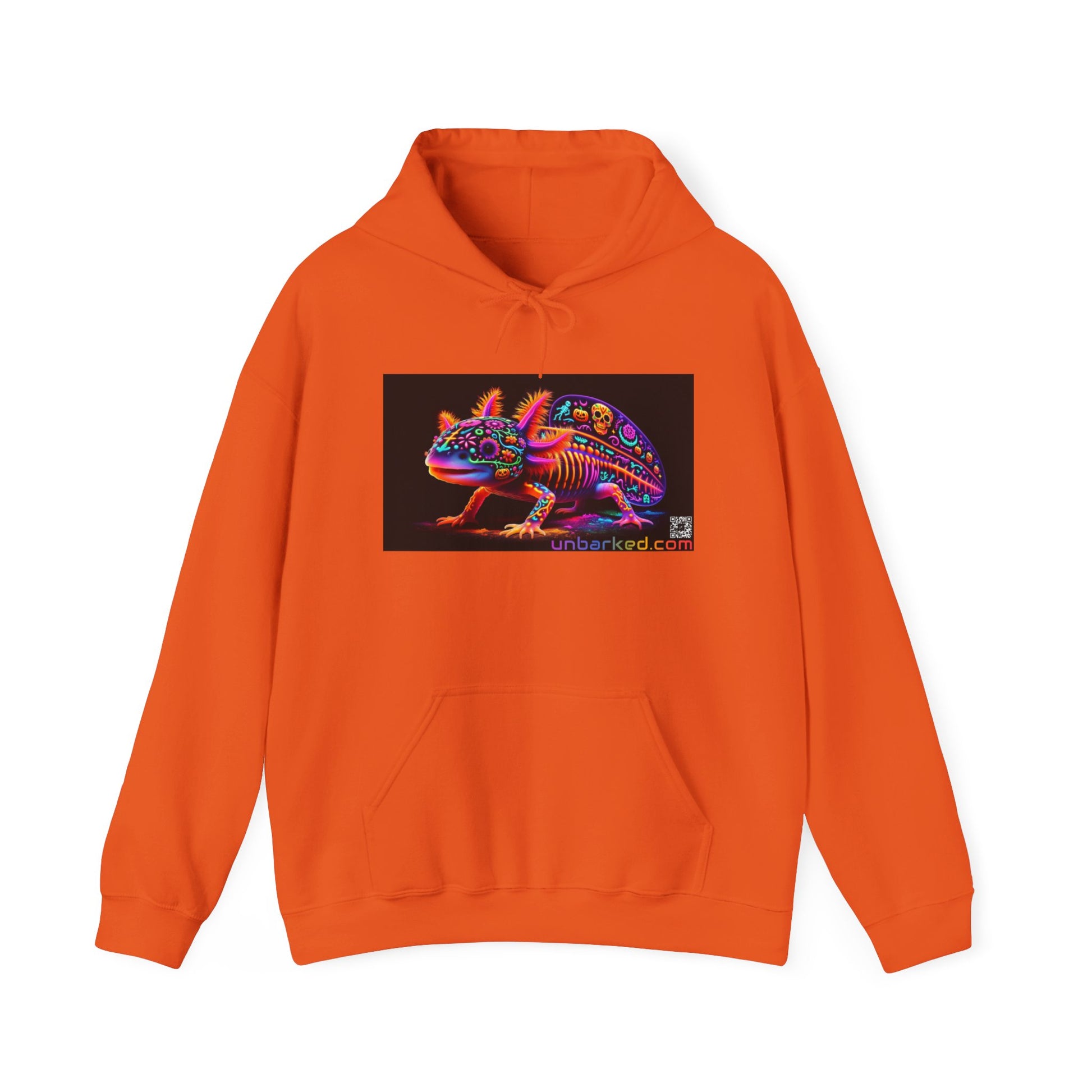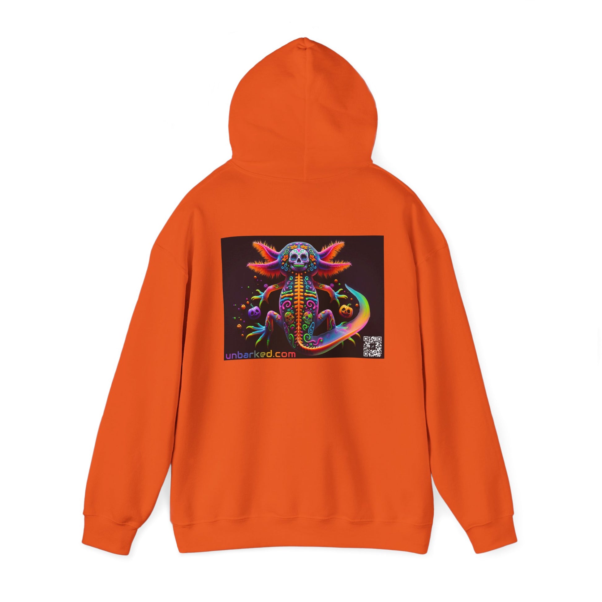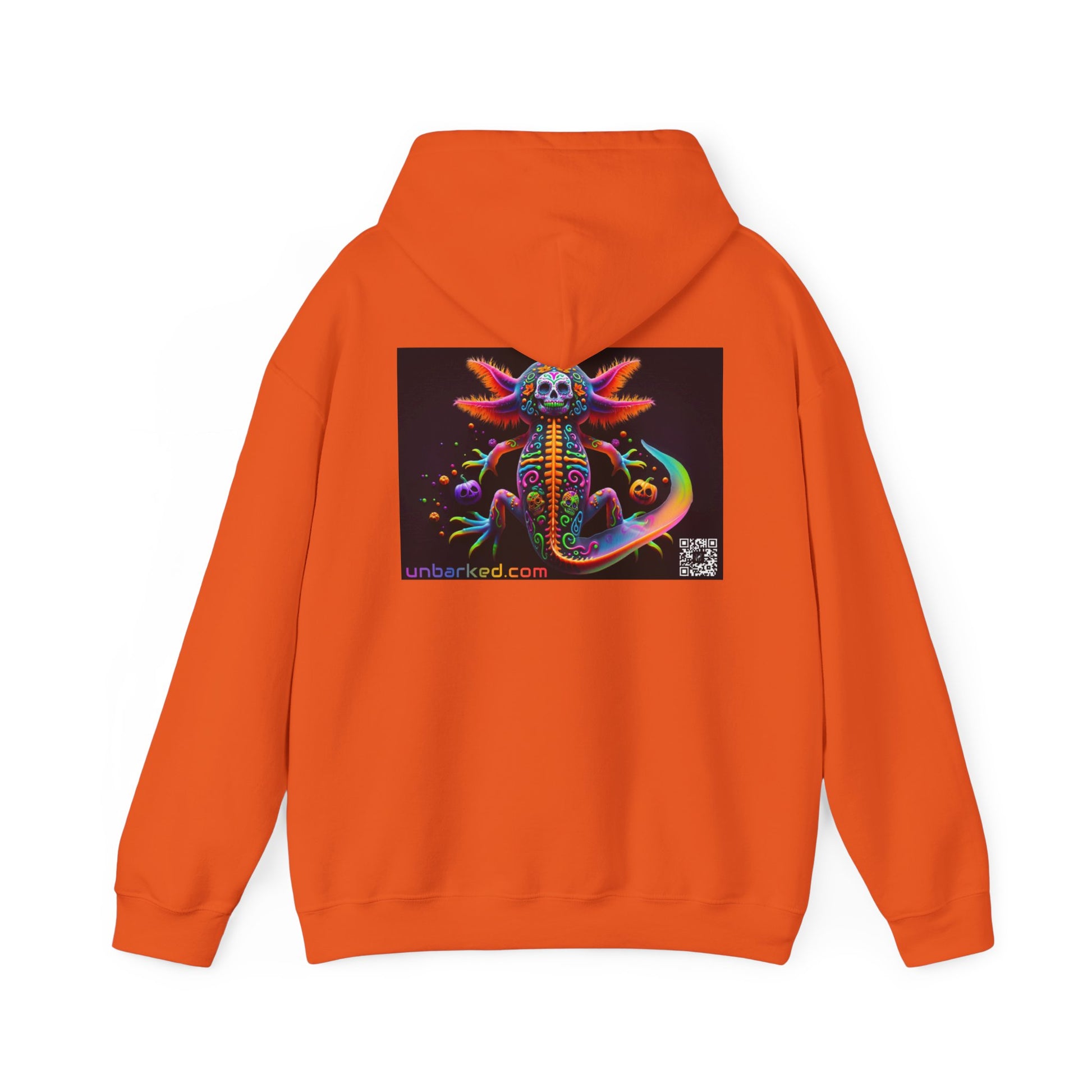 Unisex Heavy Blend™ Hooded Sweatshirt UNBARKED! Halloween Collection - Axolotl Vibrant Día de Muertos Tattoo