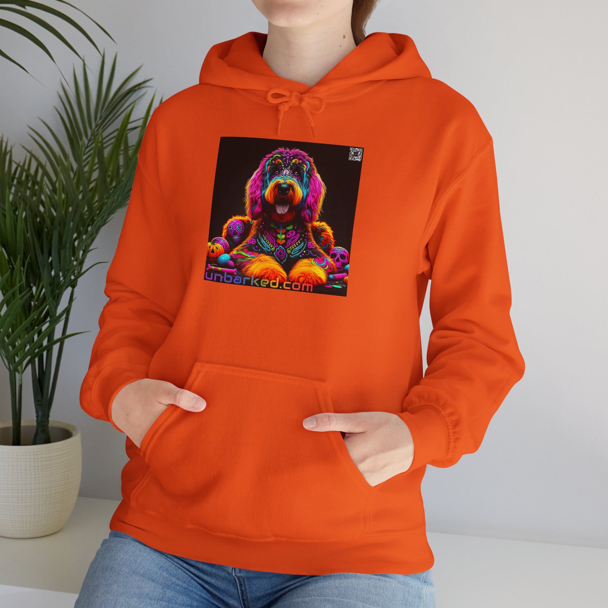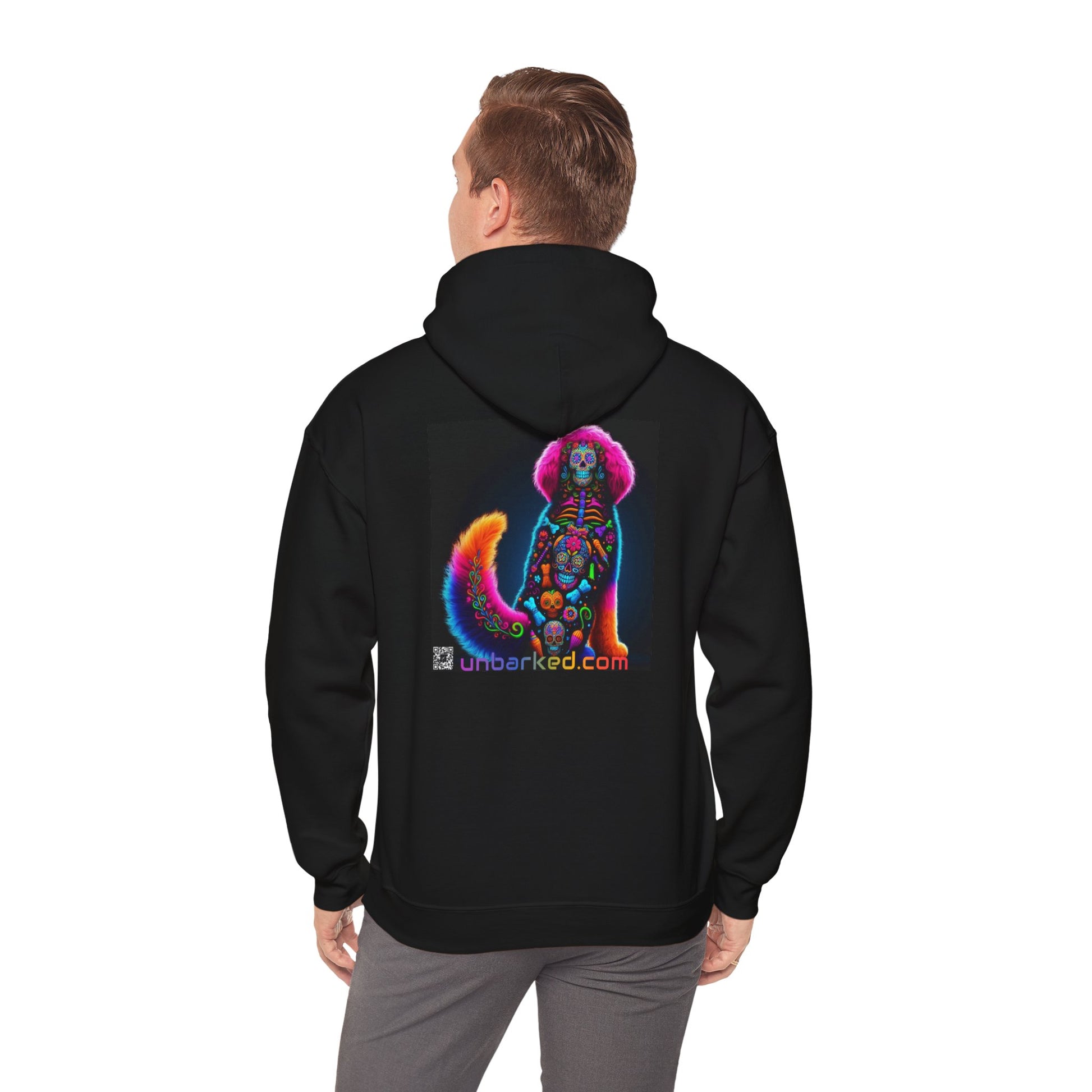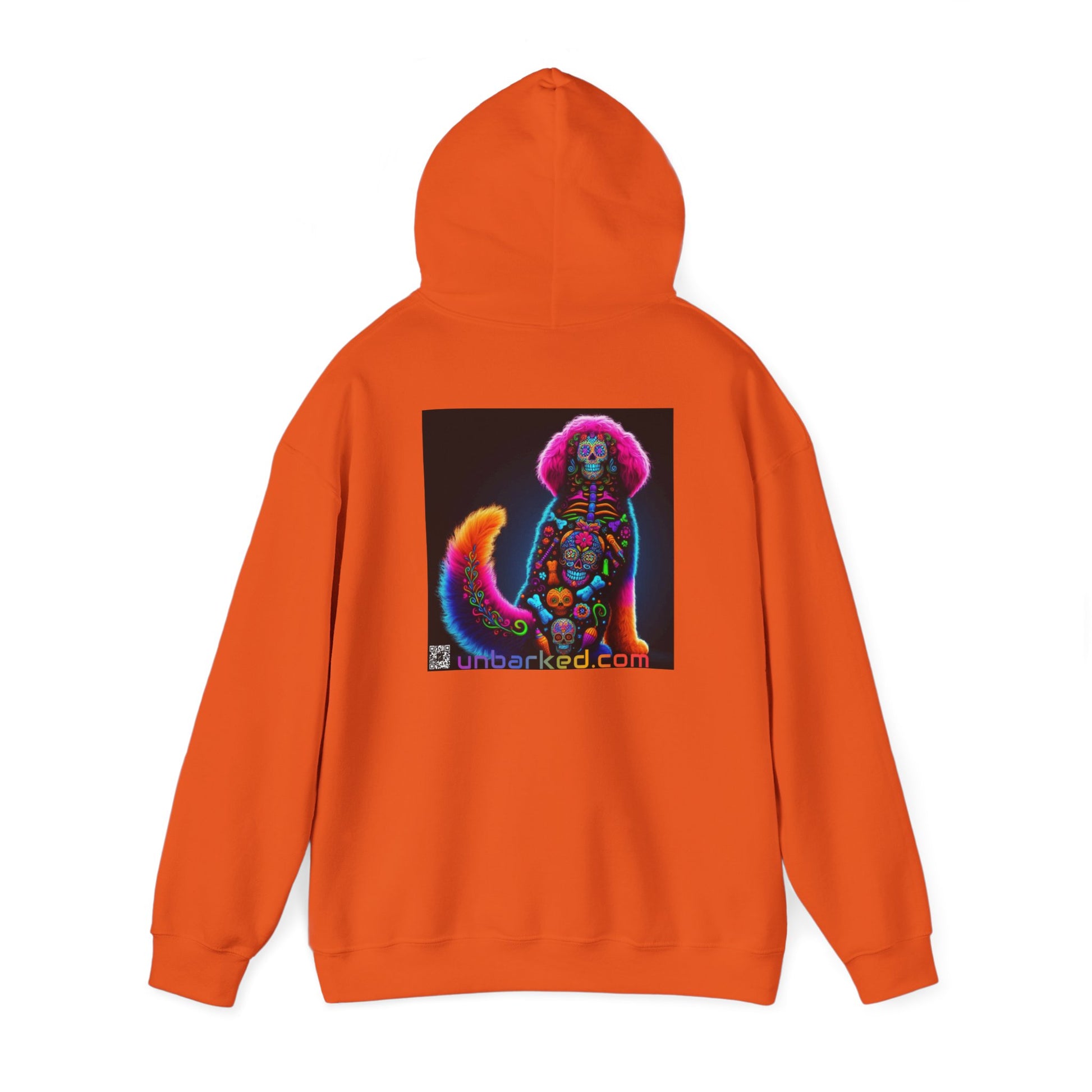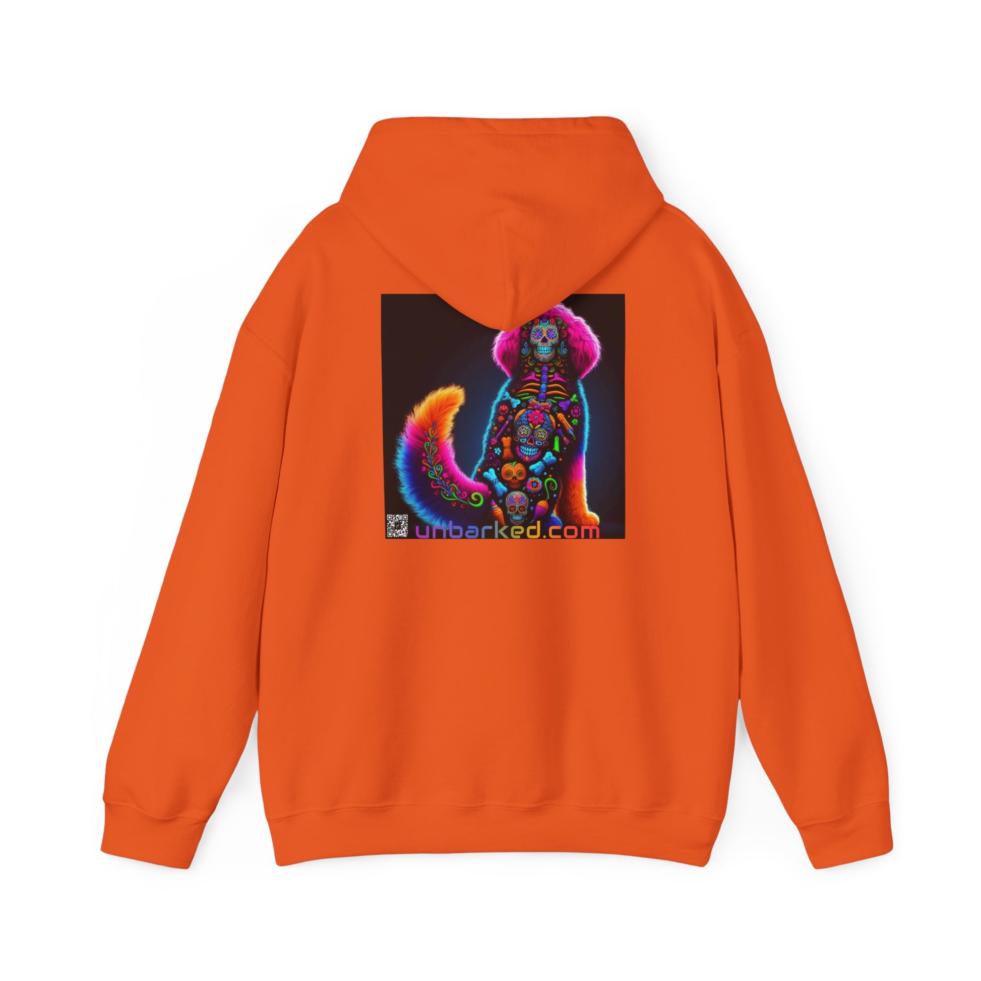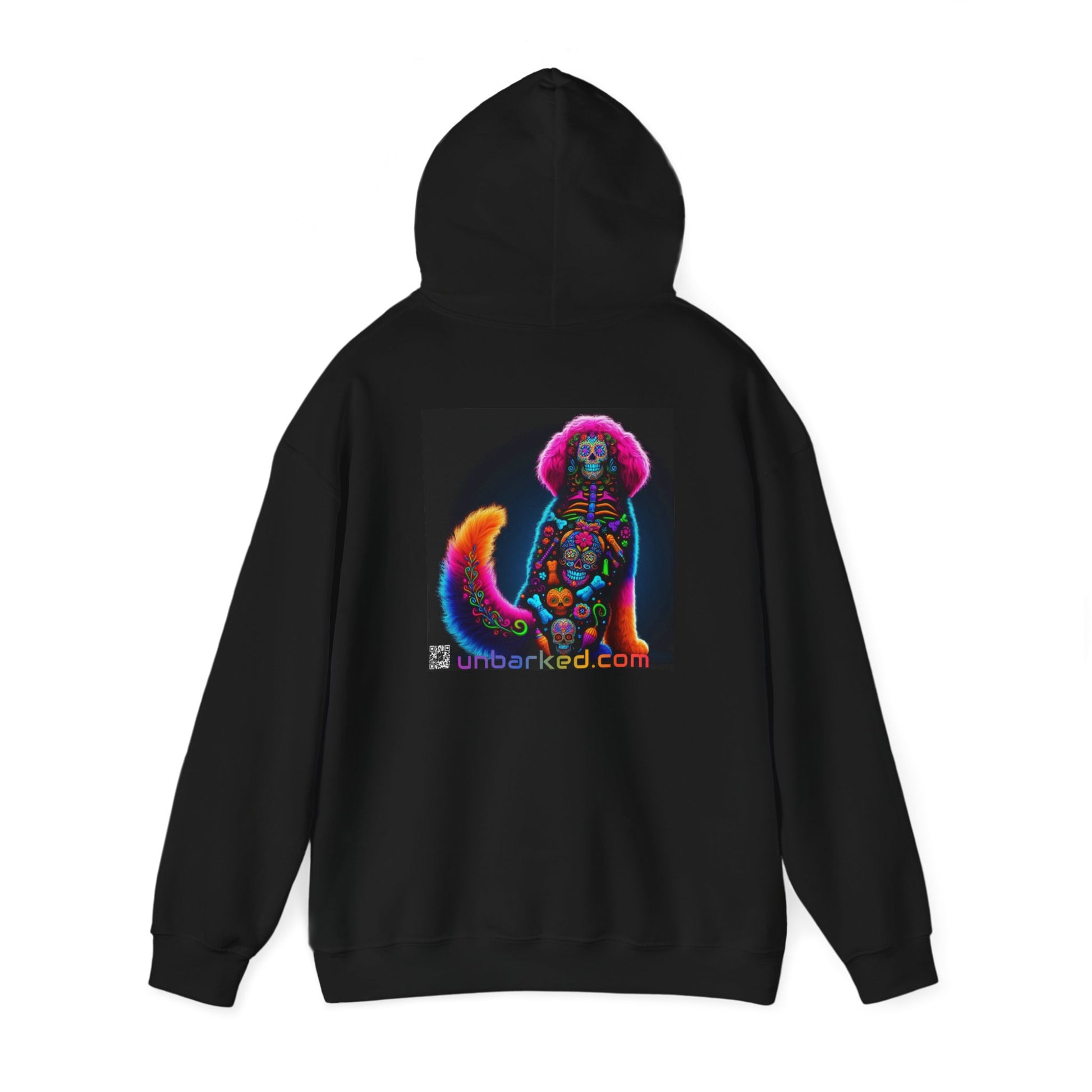 Unisex Heavy Blend™ Hooded Sweatshirt UNBARKED! Halloween Collection - Bernedoodle Vibrant Día de Muertos Tattoo