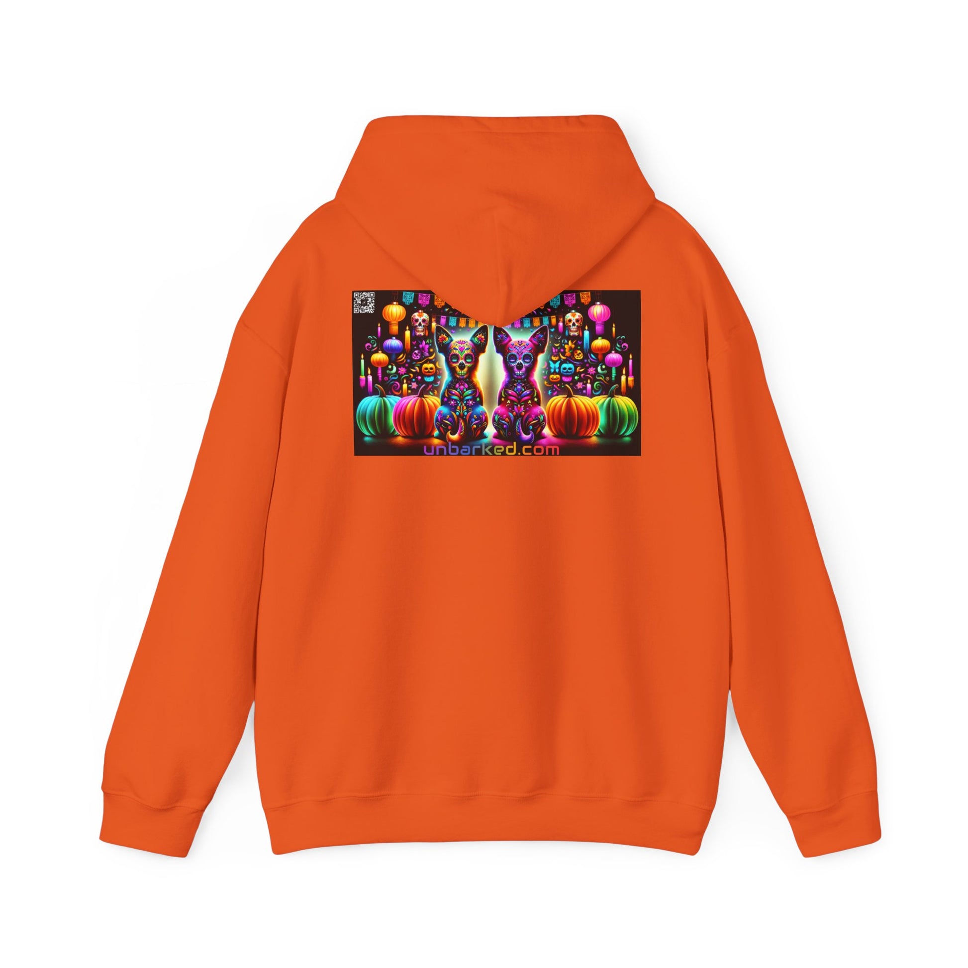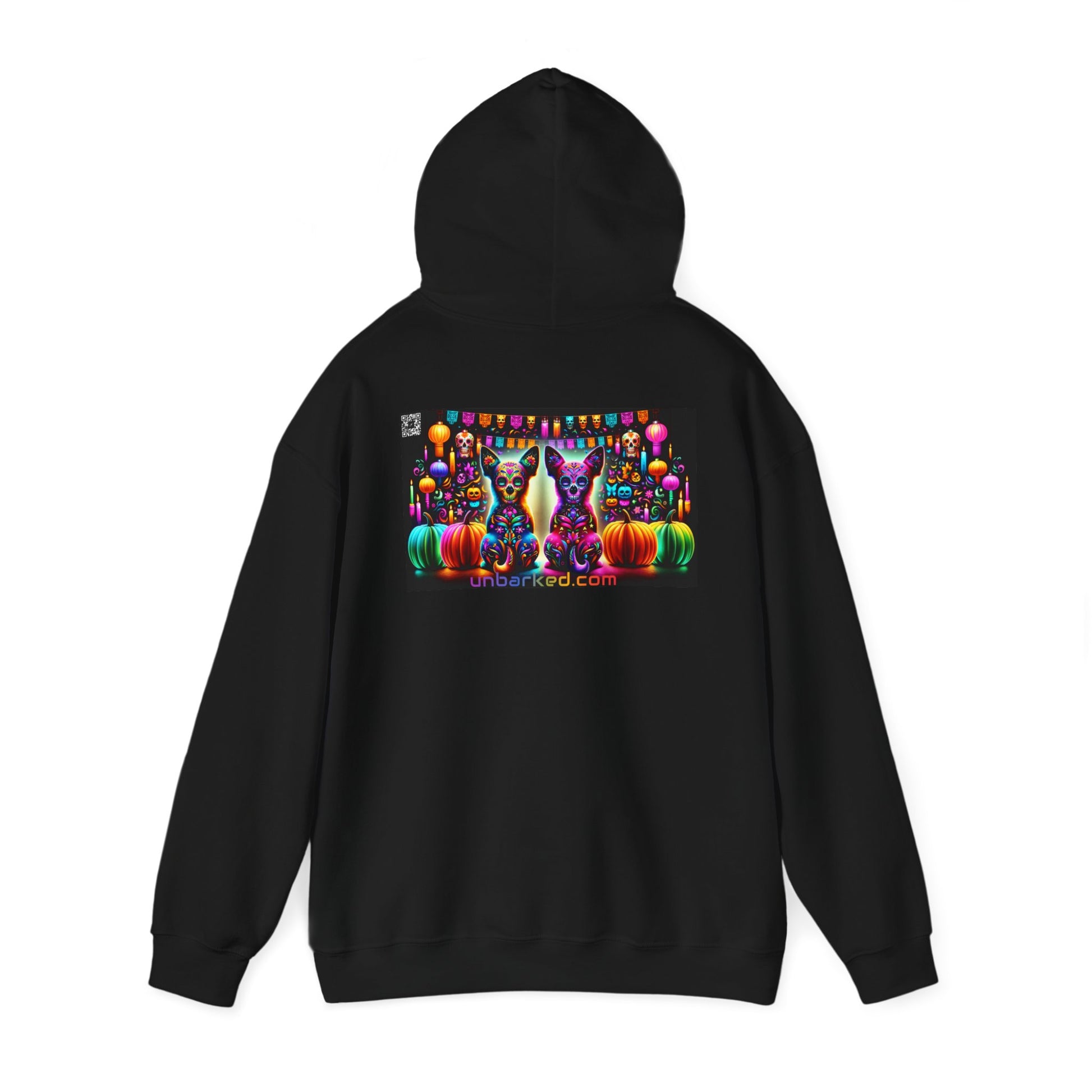 Unisex Heavy Blend™ Hooded Sweatshirt UNBARKED! Halloween Collection - Chihuahua Vibrant Día de Muertos Tattoo
