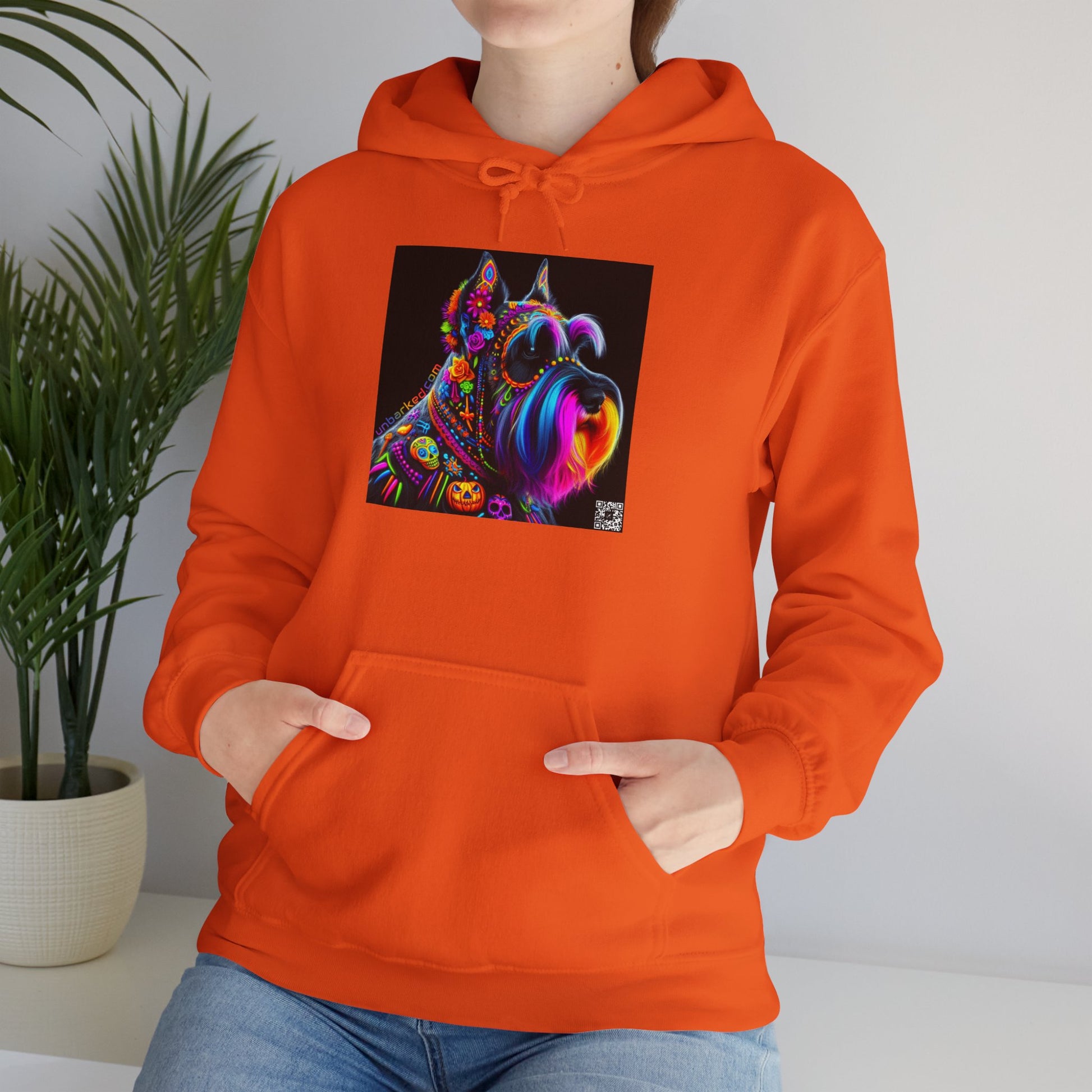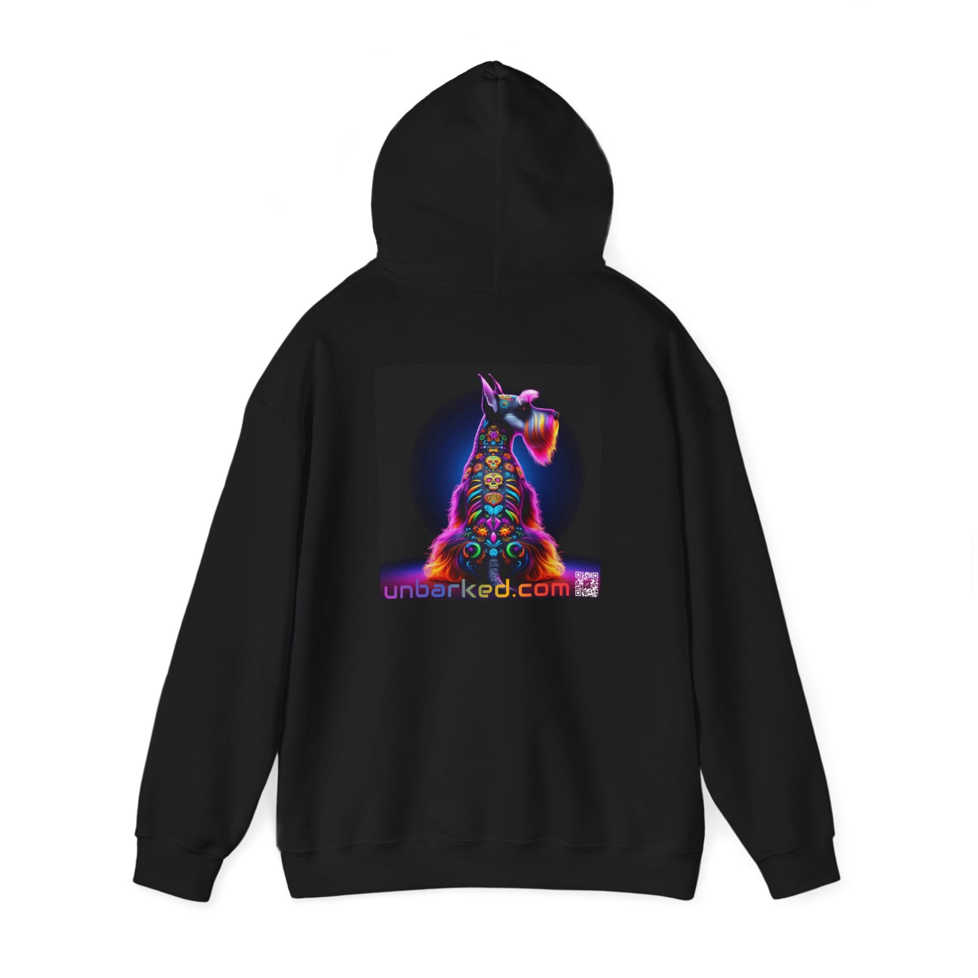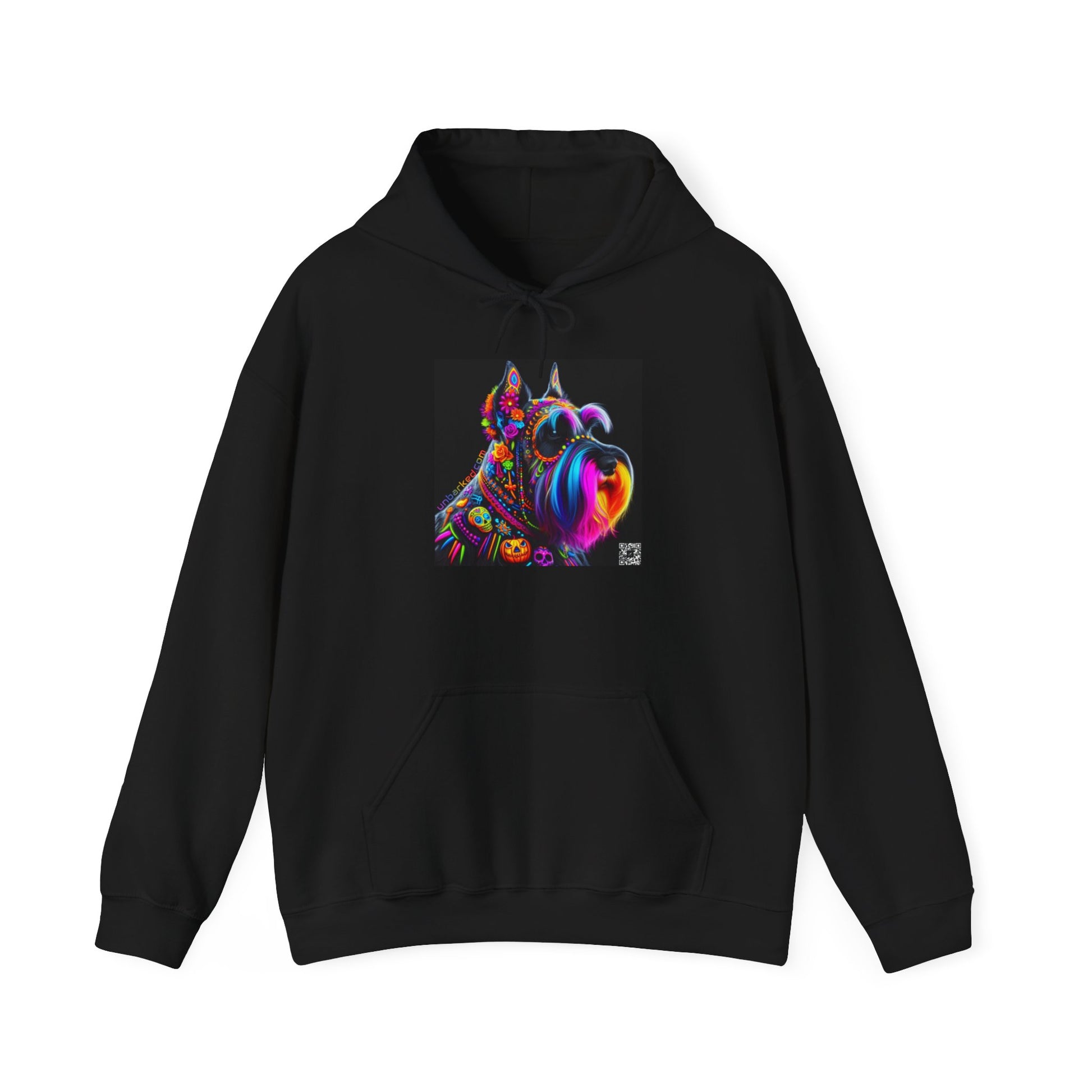Unisex Heavy Blend™ Hooded Sweatshirt UNBARKED! Halloween Collection - Schnauzer Dog Vibrant Día de Muertos Tattoo