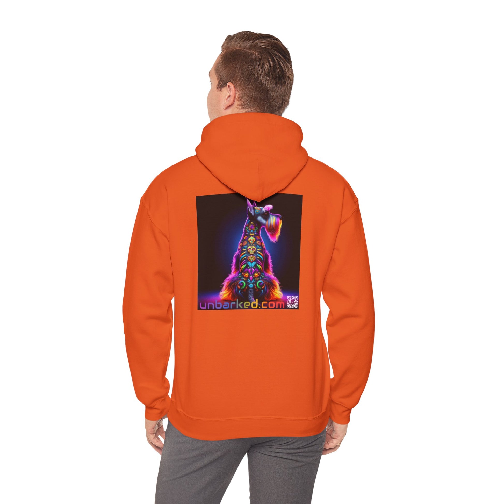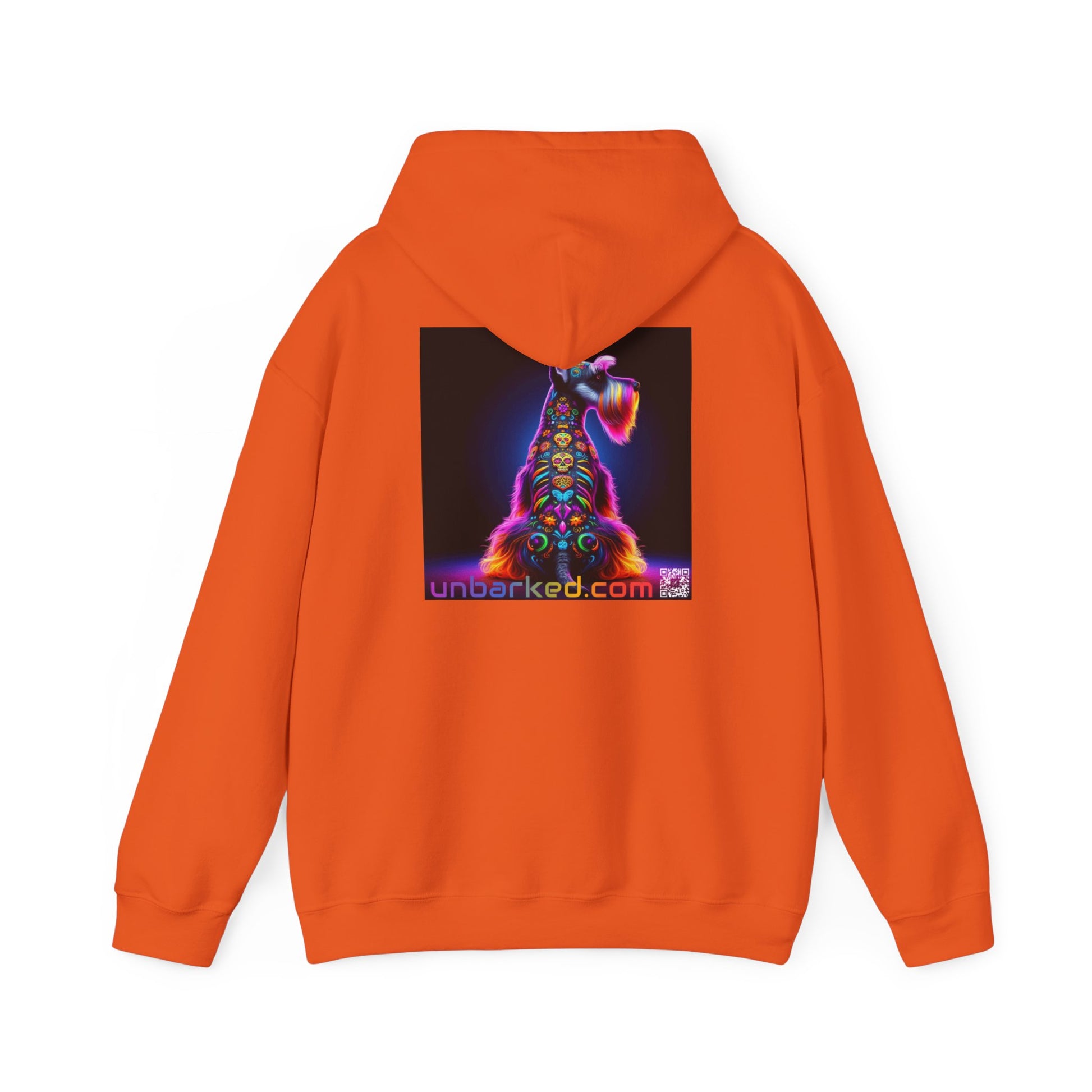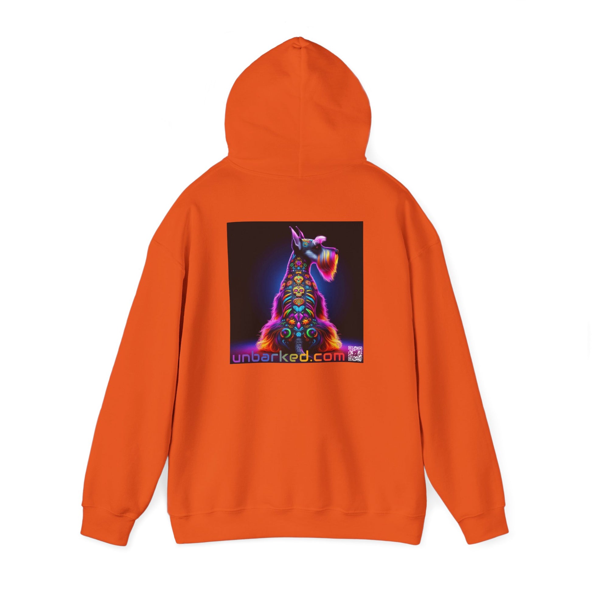 Unisex Heavy Blend™ Hooded Sweatshirt UNBARKED! Halloween Collection - Schnauzer Dog Vibrant Día de Muertos Tattoo