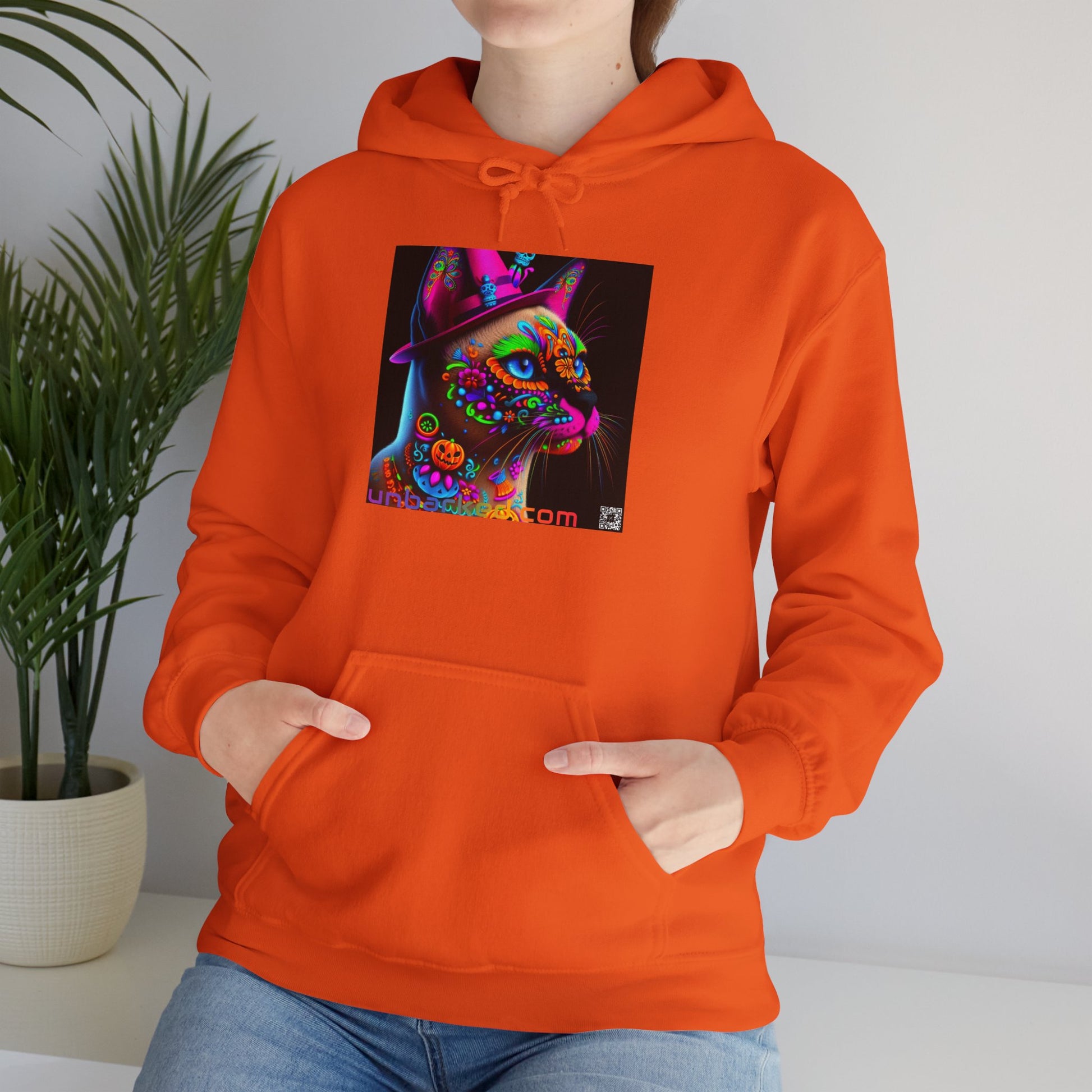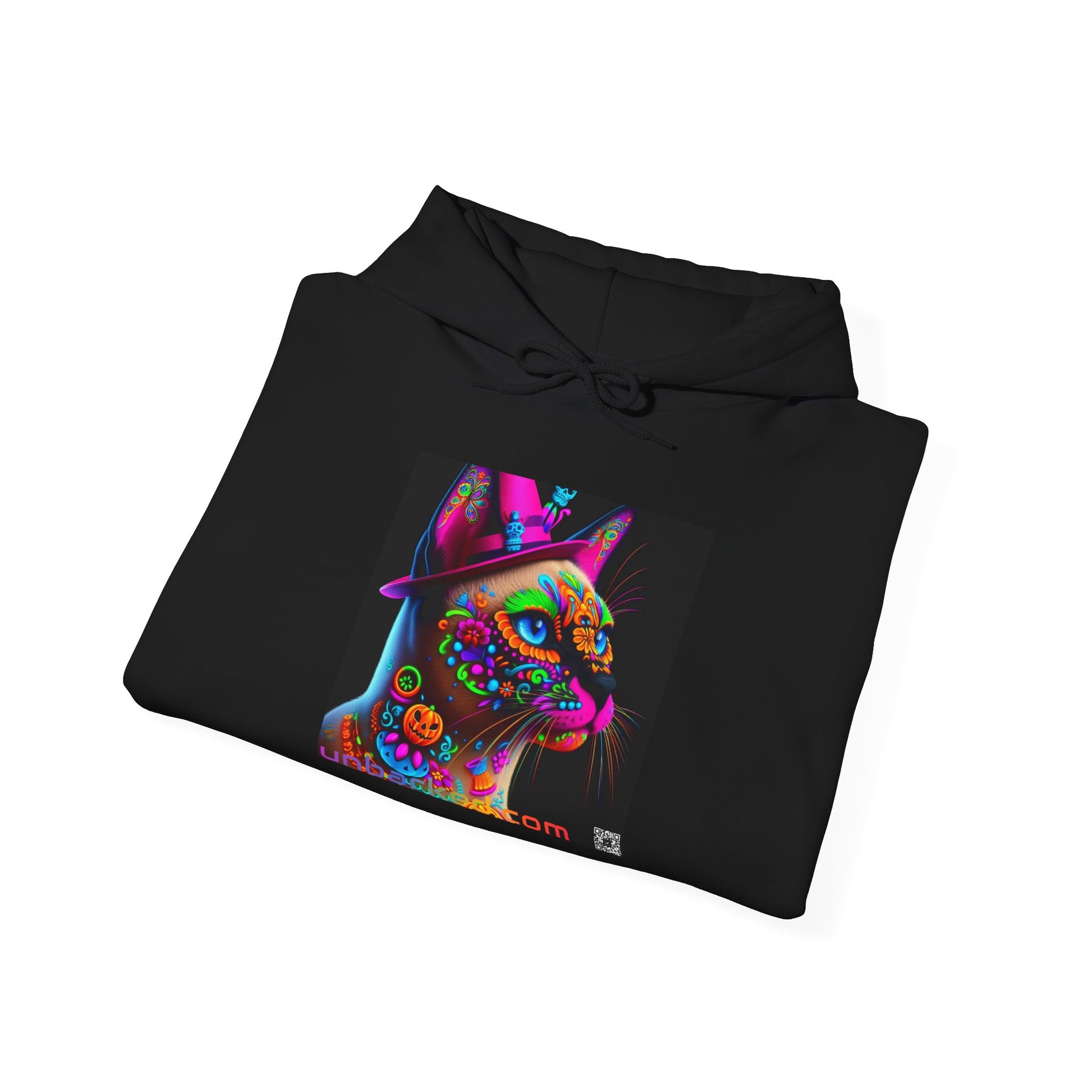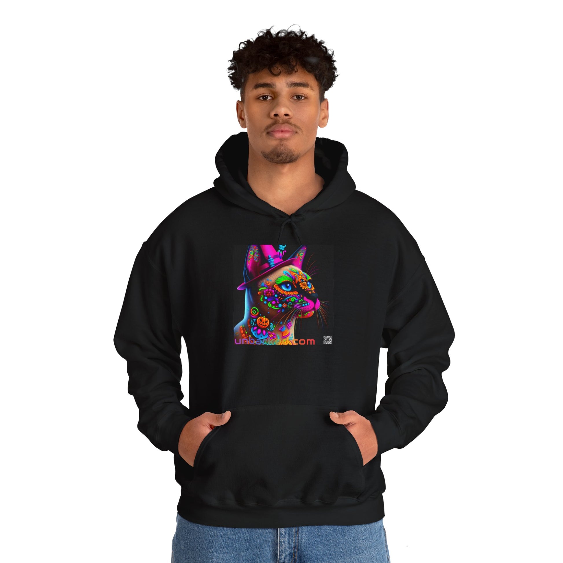 Unisex Heavy Blend™ Hooded Sweatshirt UNBARKED! Halloween Collection - Siamese Cat Vibrant Día de Muertos Tattoo