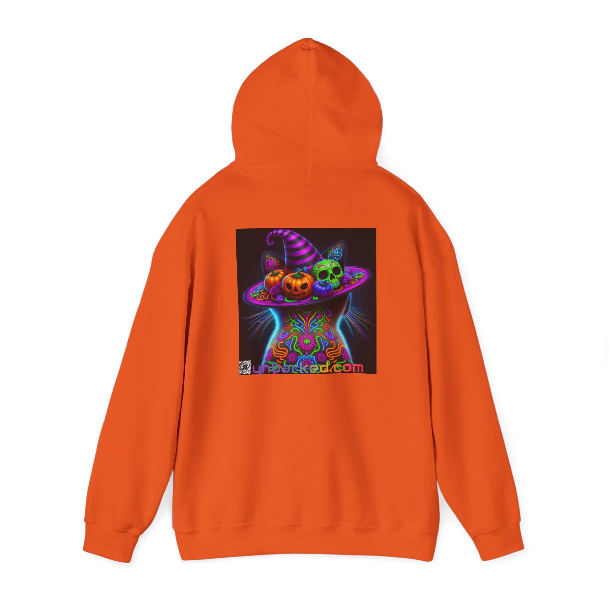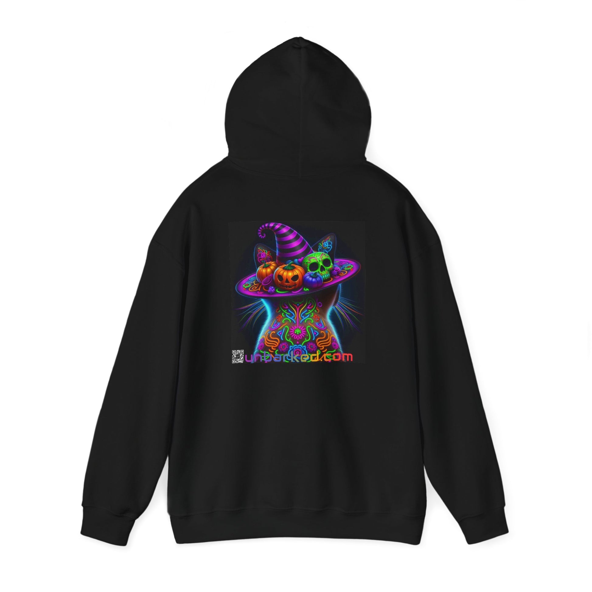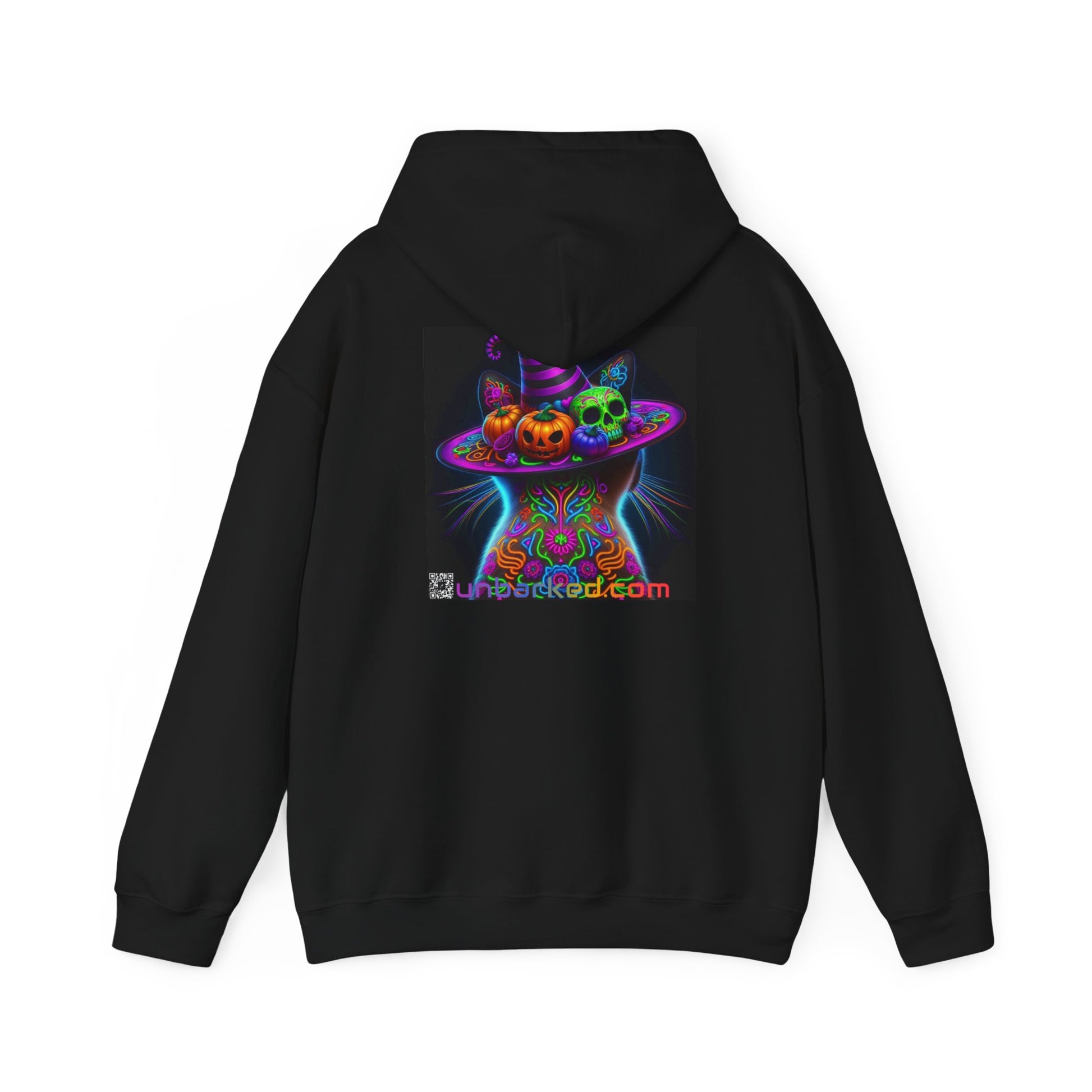 Unisex Heavy Blend™ Hooded Sweatshirt UNBARKED! Halloween Collection - Siamese Cat Vibrant Día de Muertos Tattoo