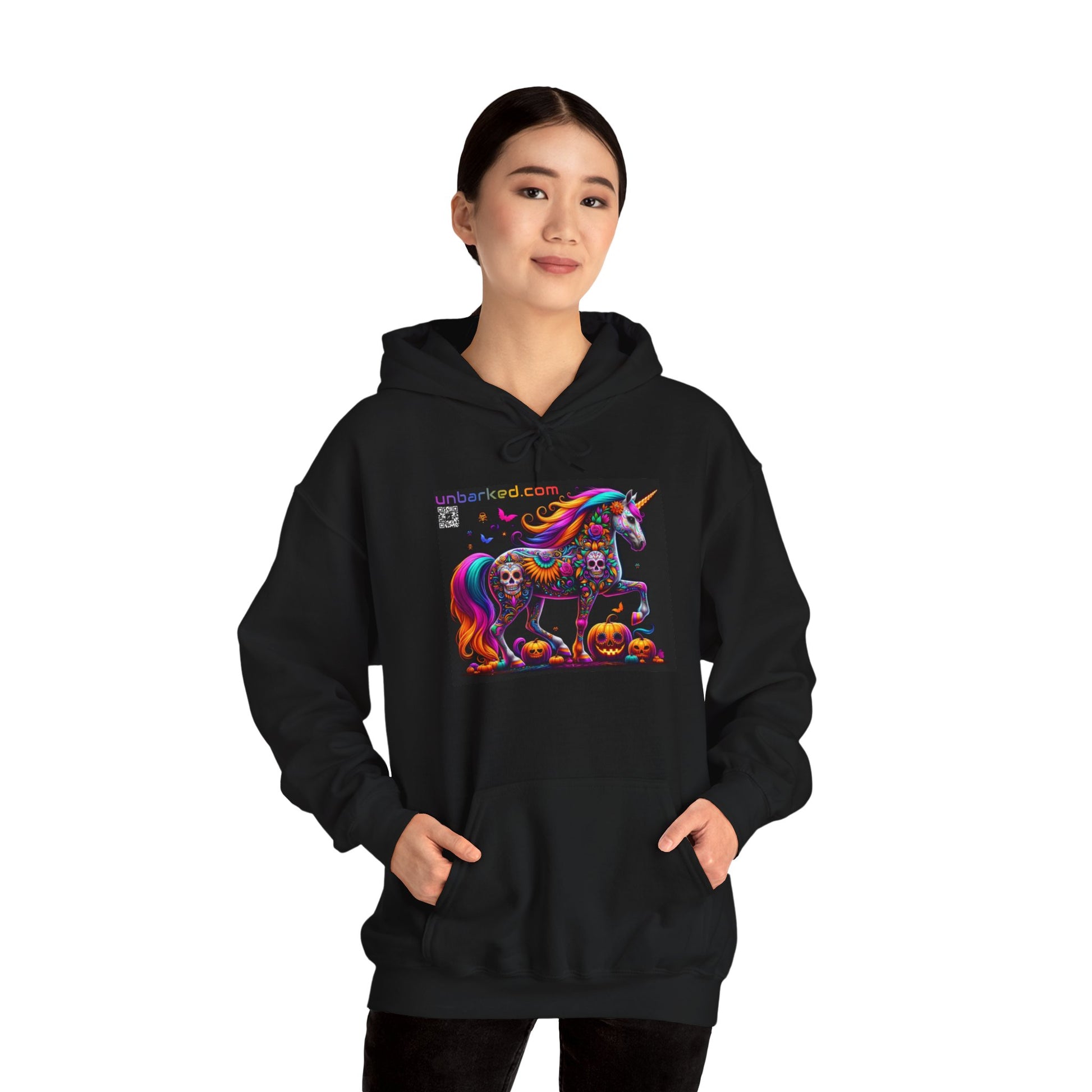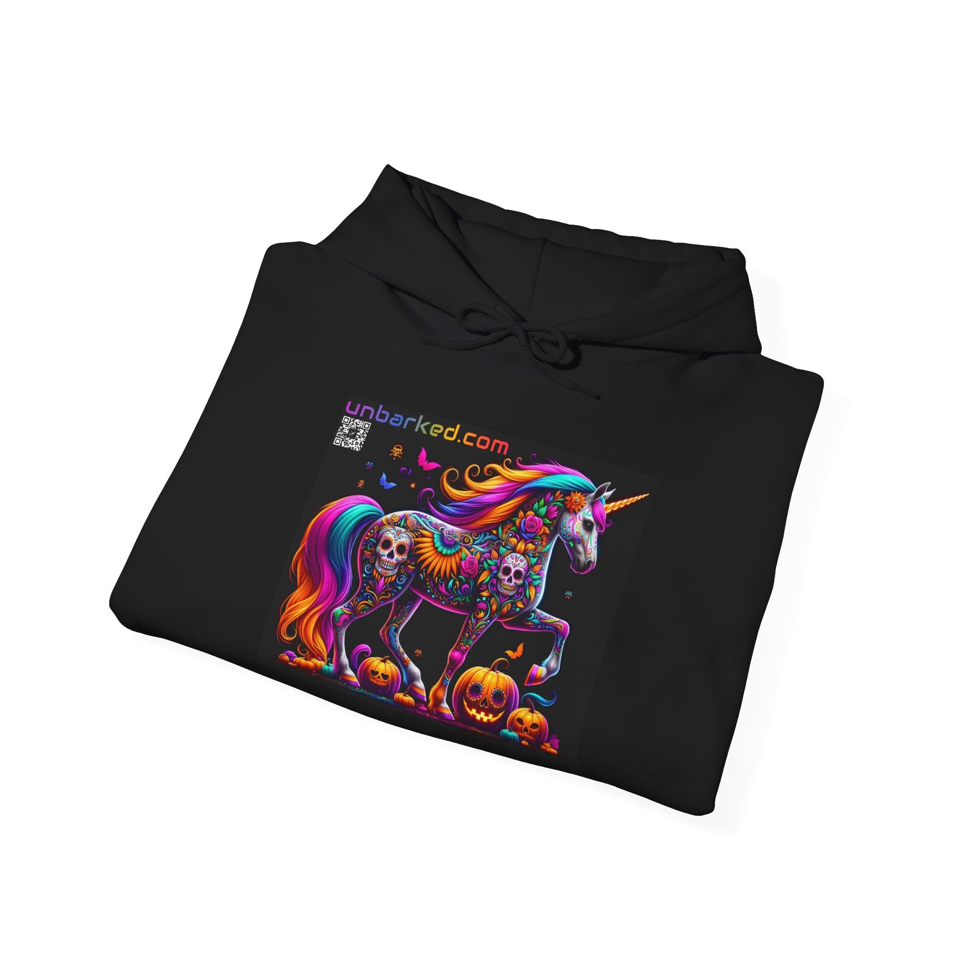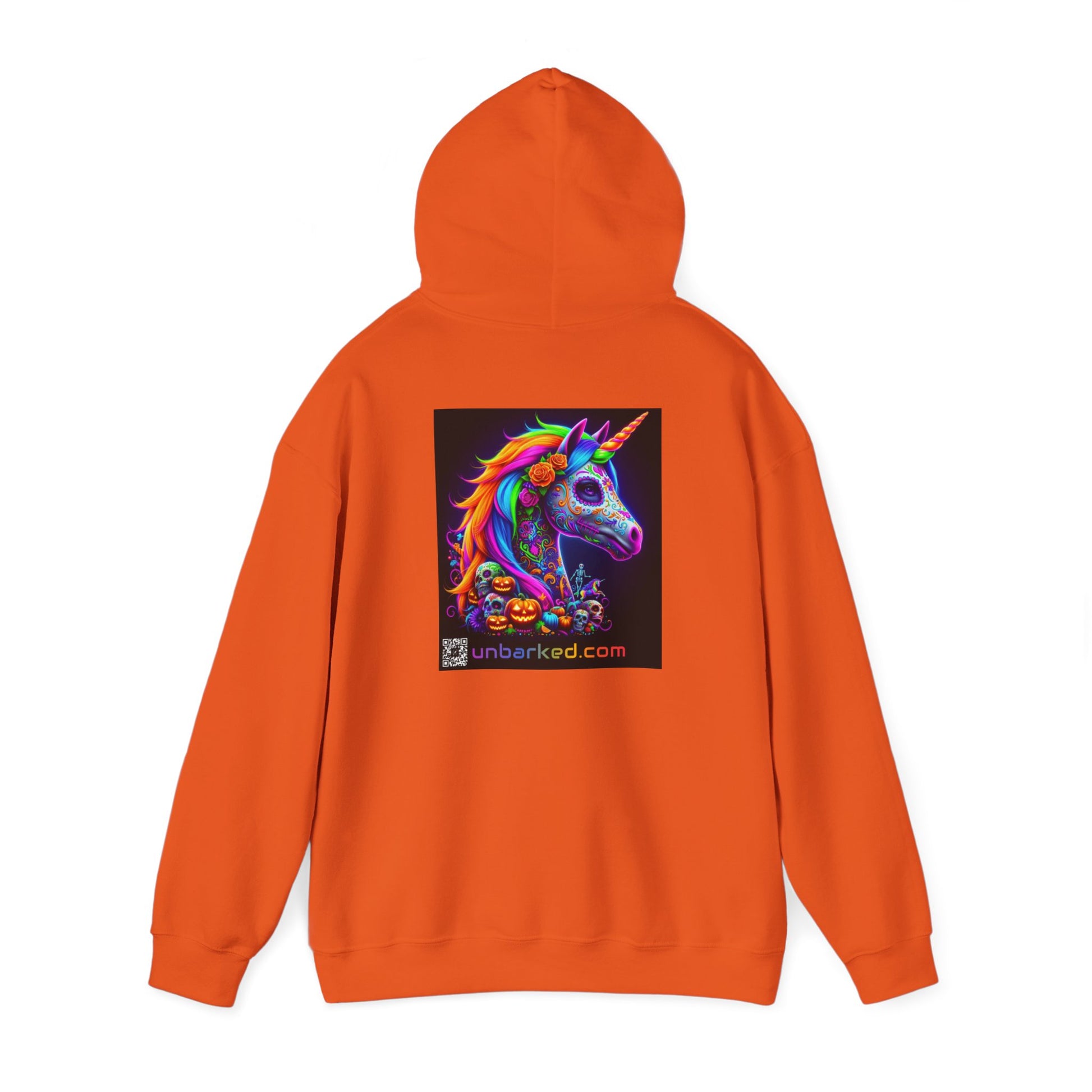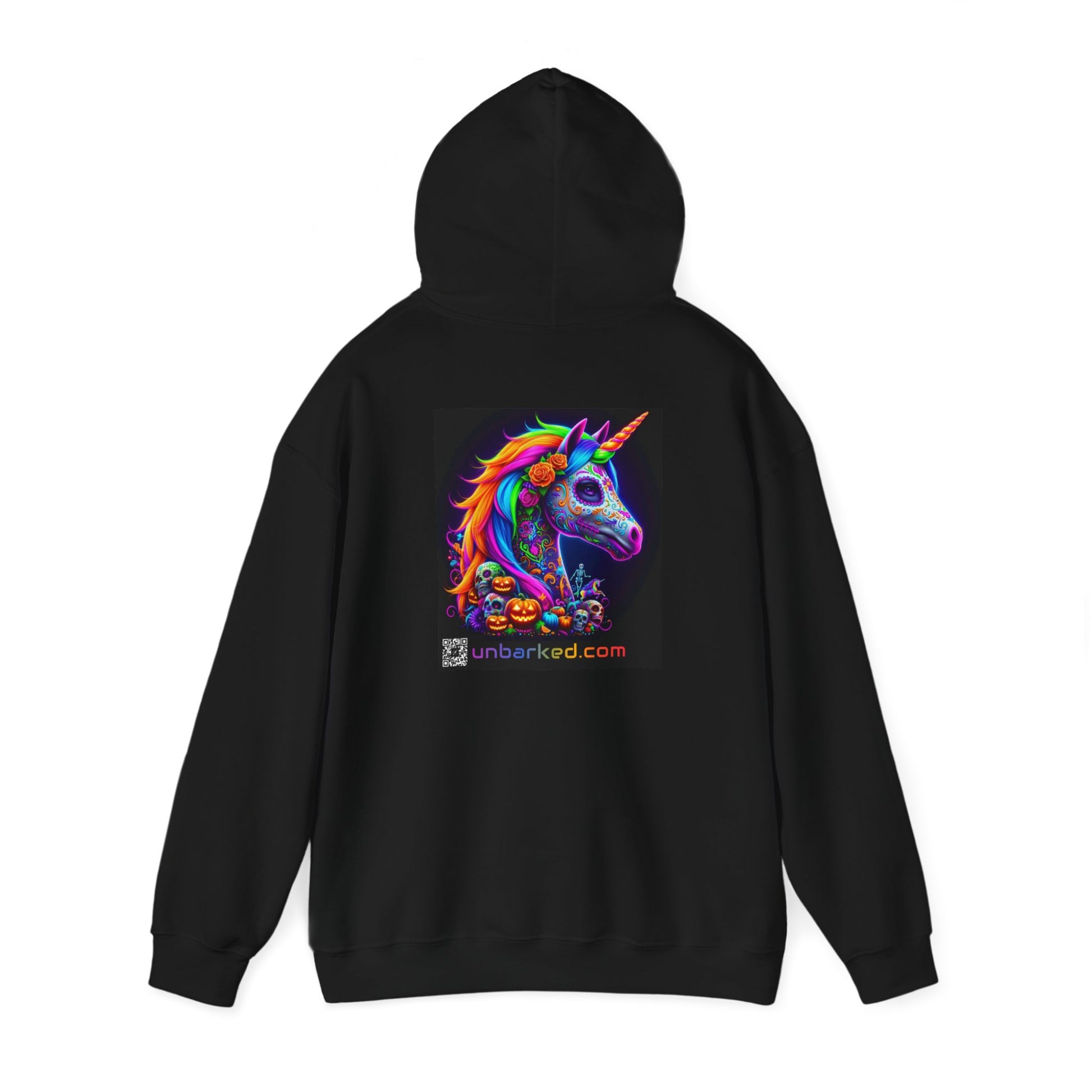 Unisex Heavy Blend™ Hooded Sweatshirt UNBARKED! Halloween Collection - Unicorn Vibrant Día de Muertos Tattoo