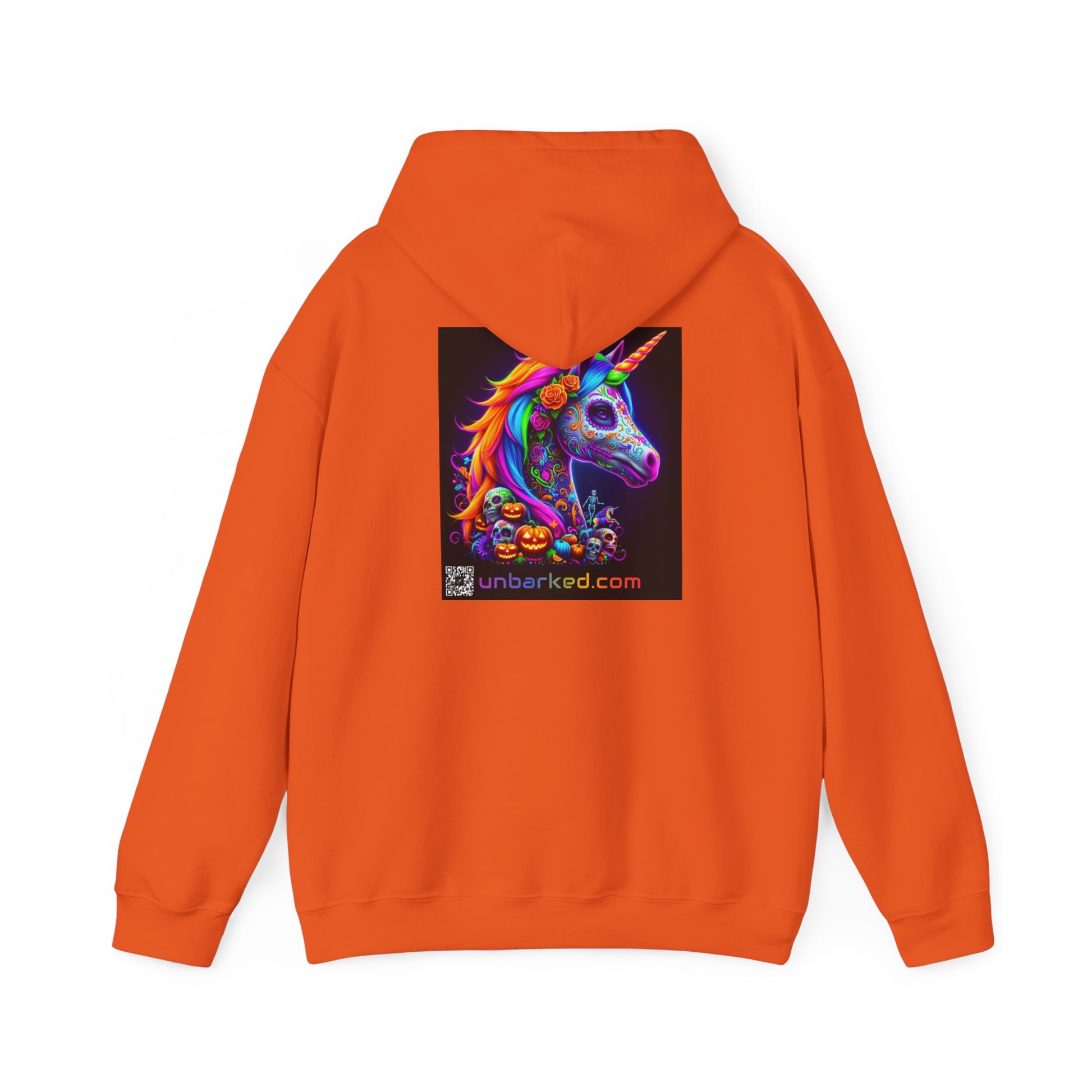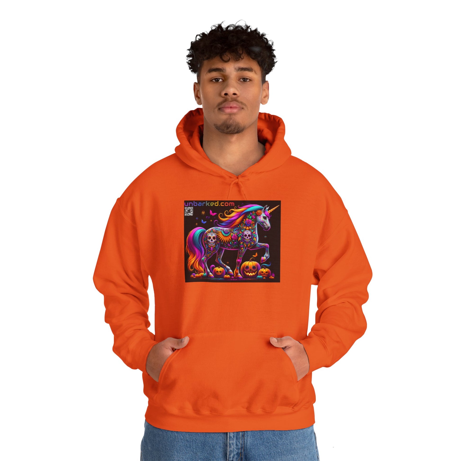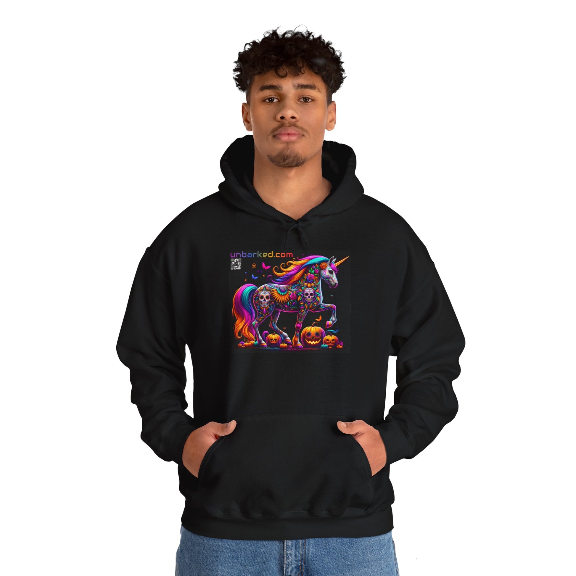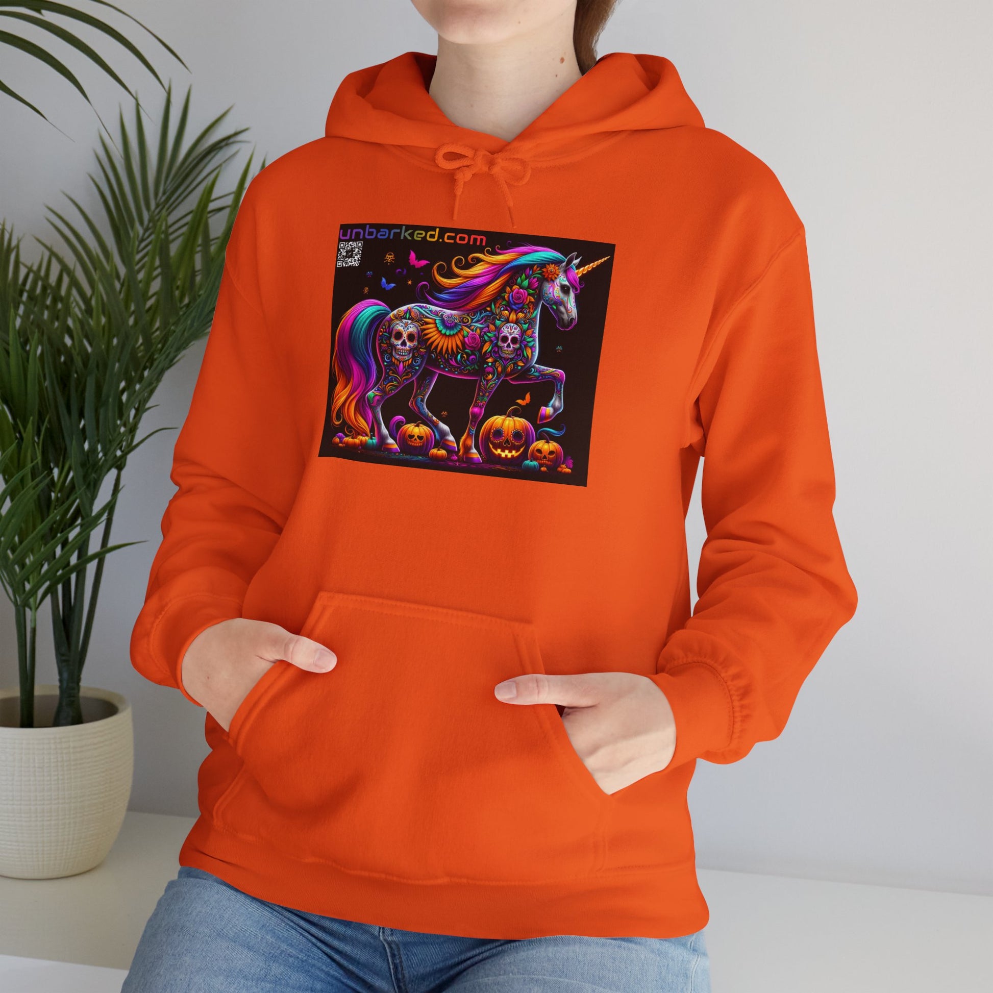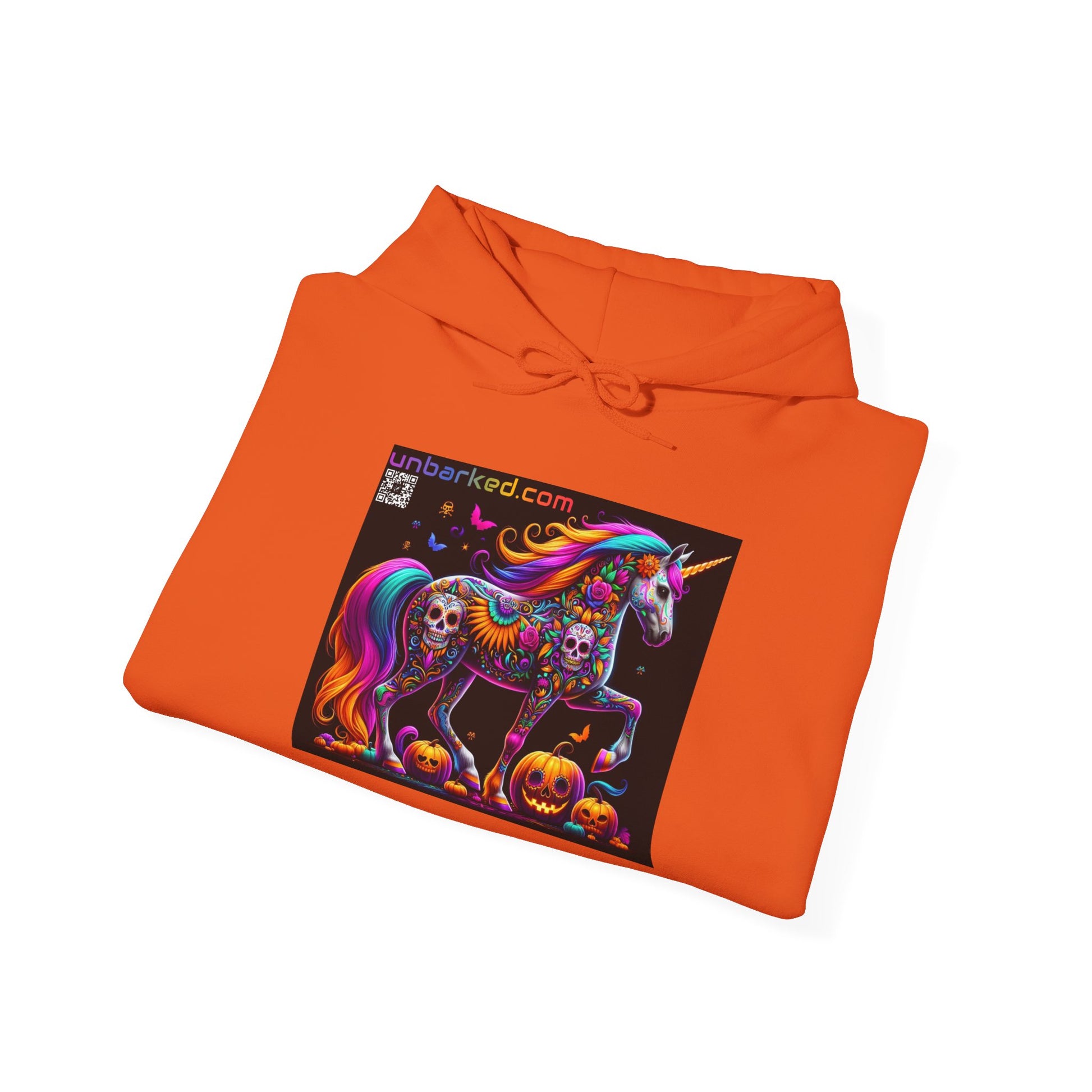Unisex Heavy Blend™ Hooded Sweatshirt UNBARKED! Halloween Collection - Unicorn Vibrant Día de Muertos Tattoo