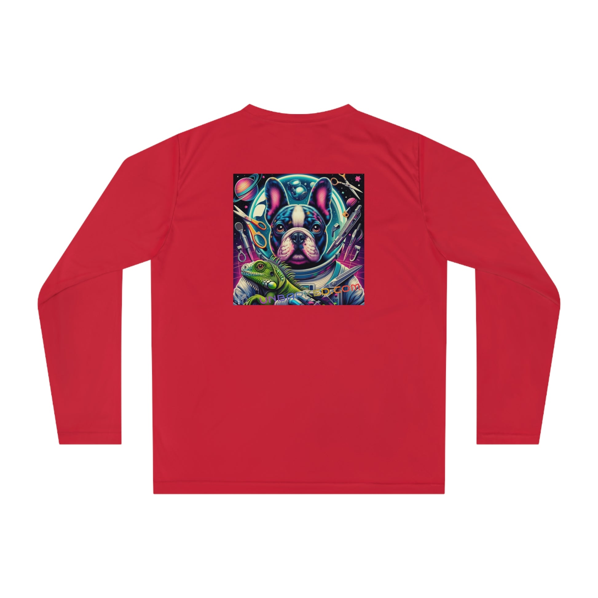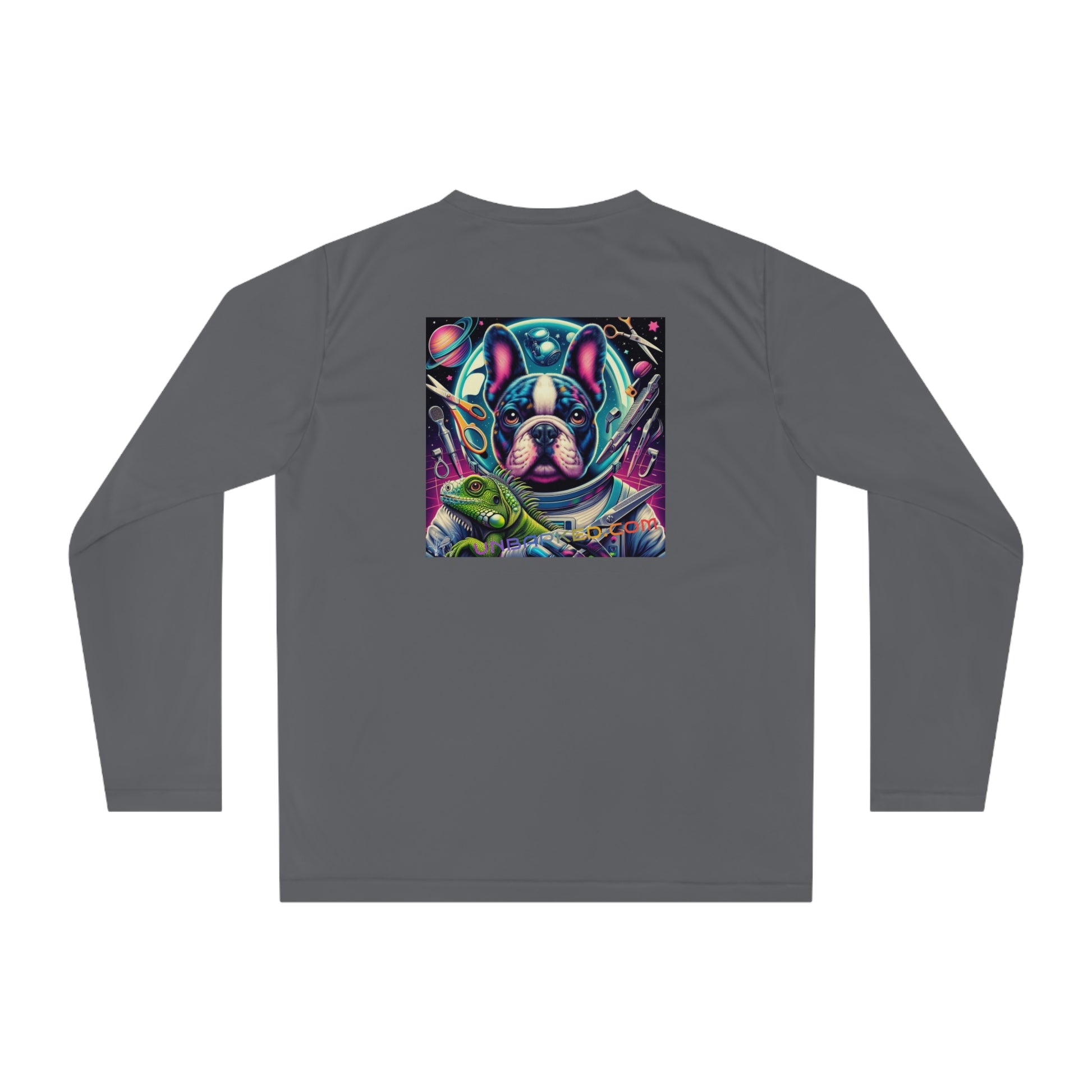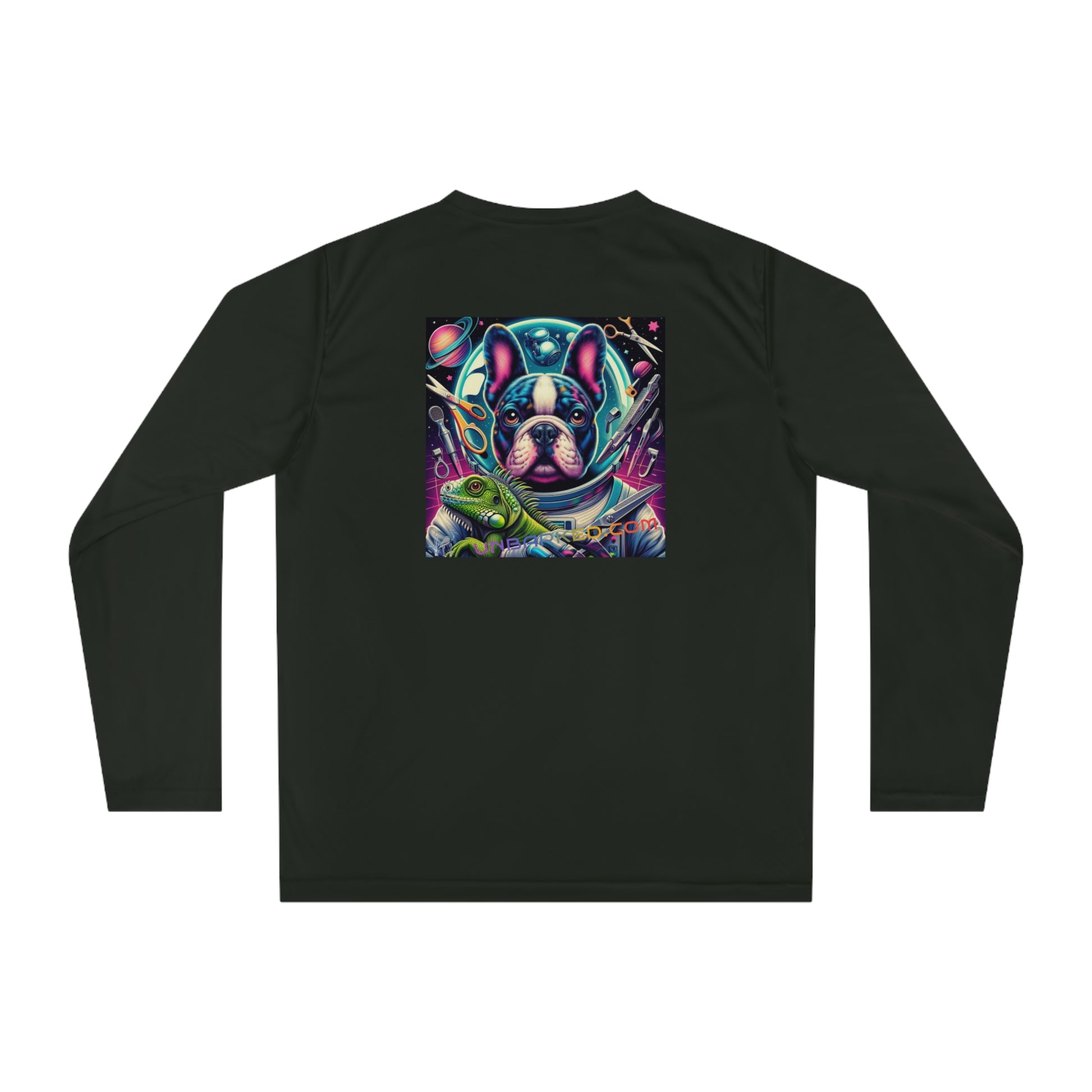Long Sleeve Shirt Unisex Performance Polyester - Space Chihuahua Grooming, Boston Frenchie Terrier Reverse