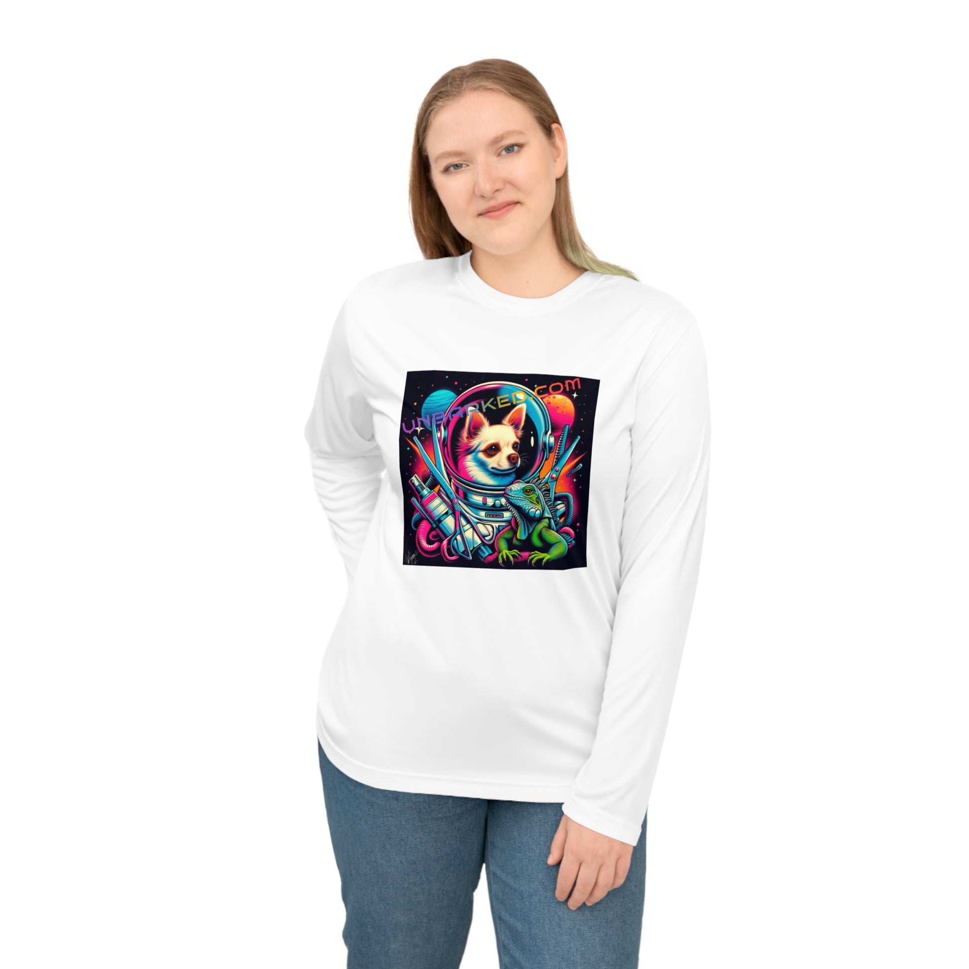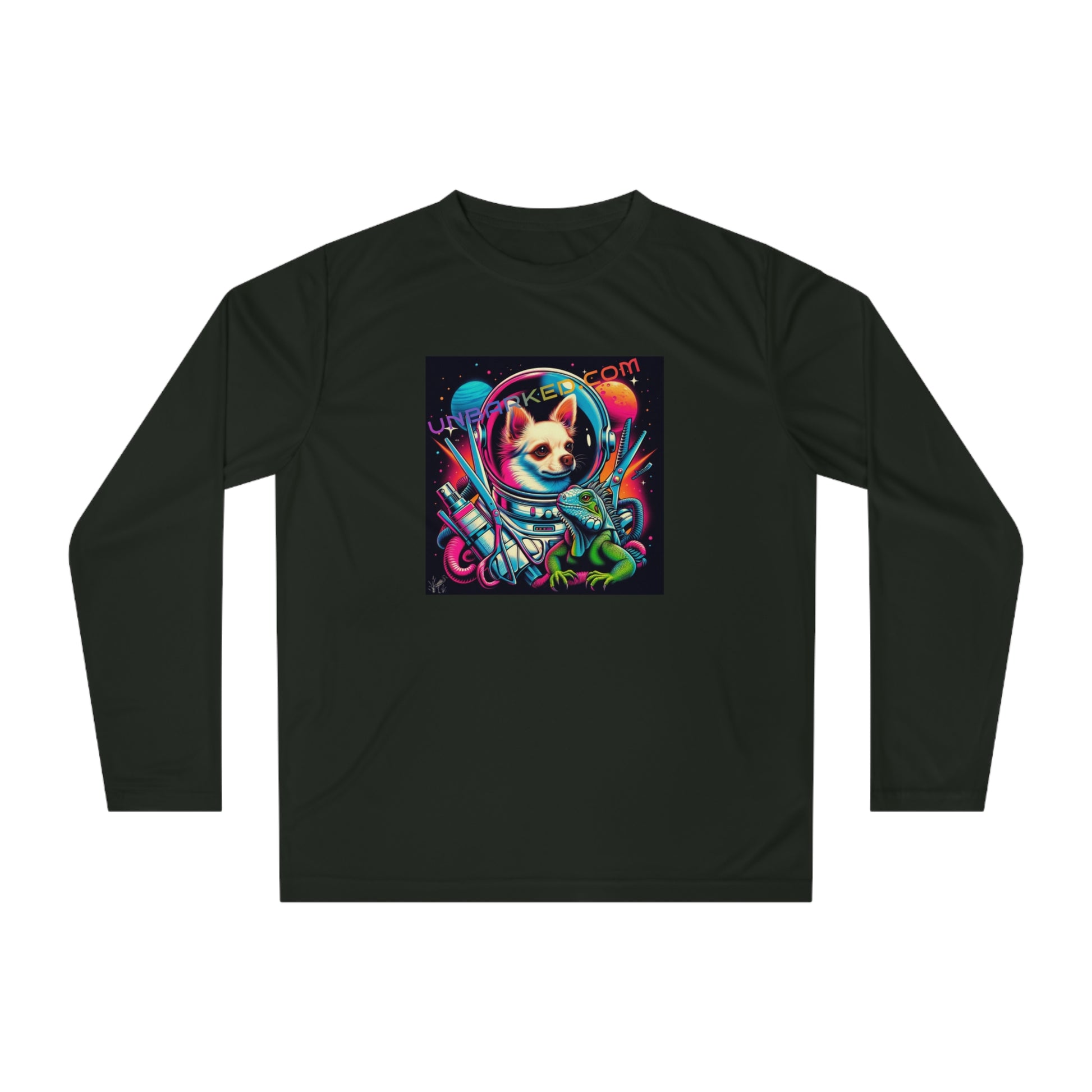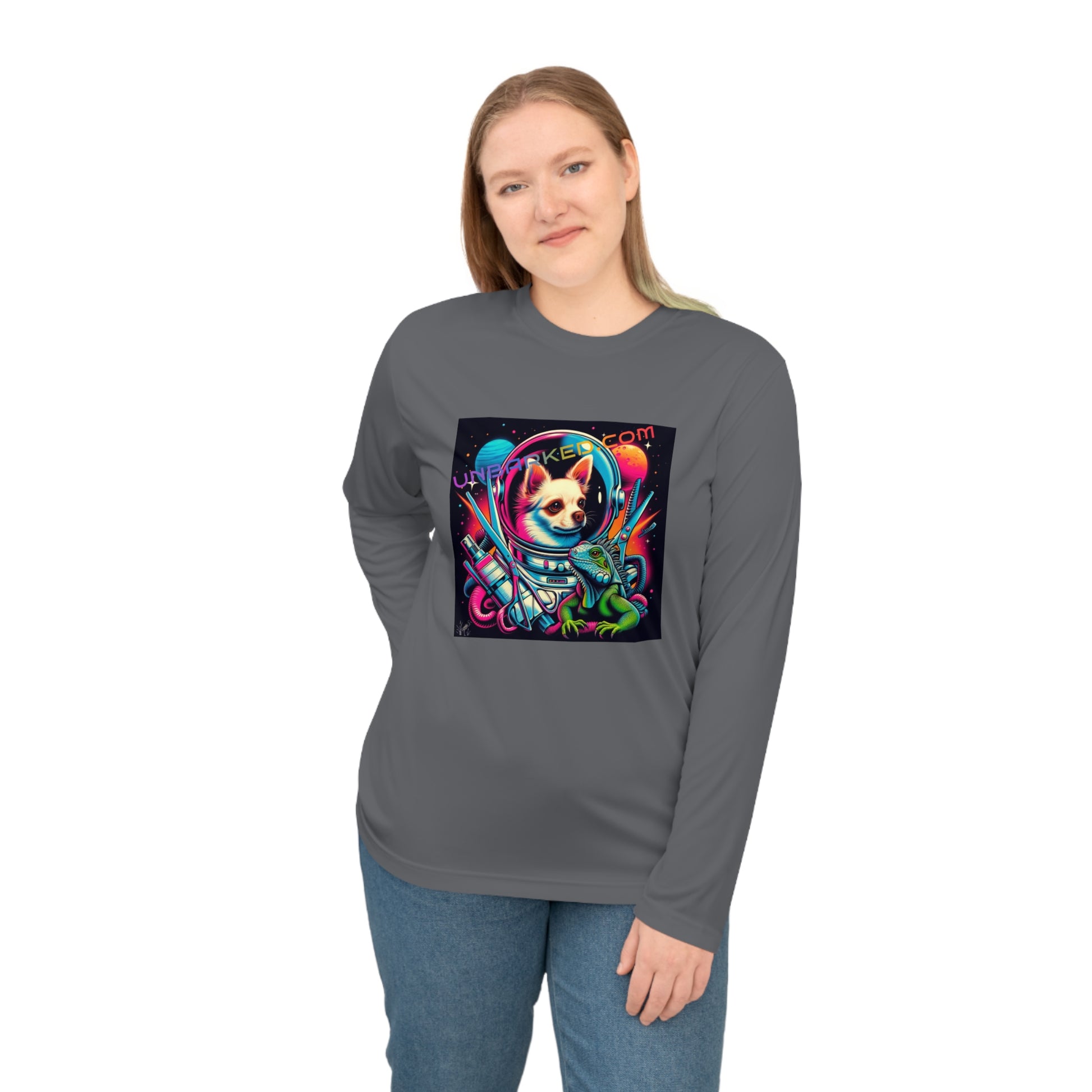 Long Sleeve Shirt Unisex Performance Polyester - Space Chihuahua Grooming, Boston Frenchie Terrier Reverse